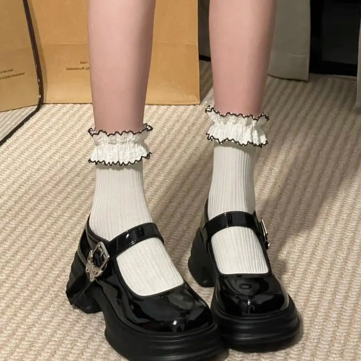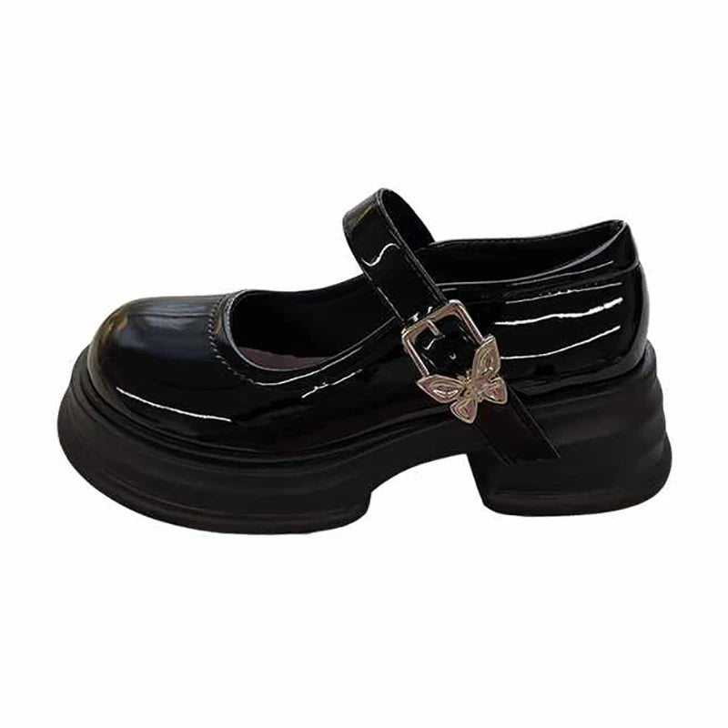 ADVBRIDGE - Lolita Style Girls Mary Janes,Young Women Students Mid Heels Sweet Butterfly Buckle Strap Elevator Shoes
