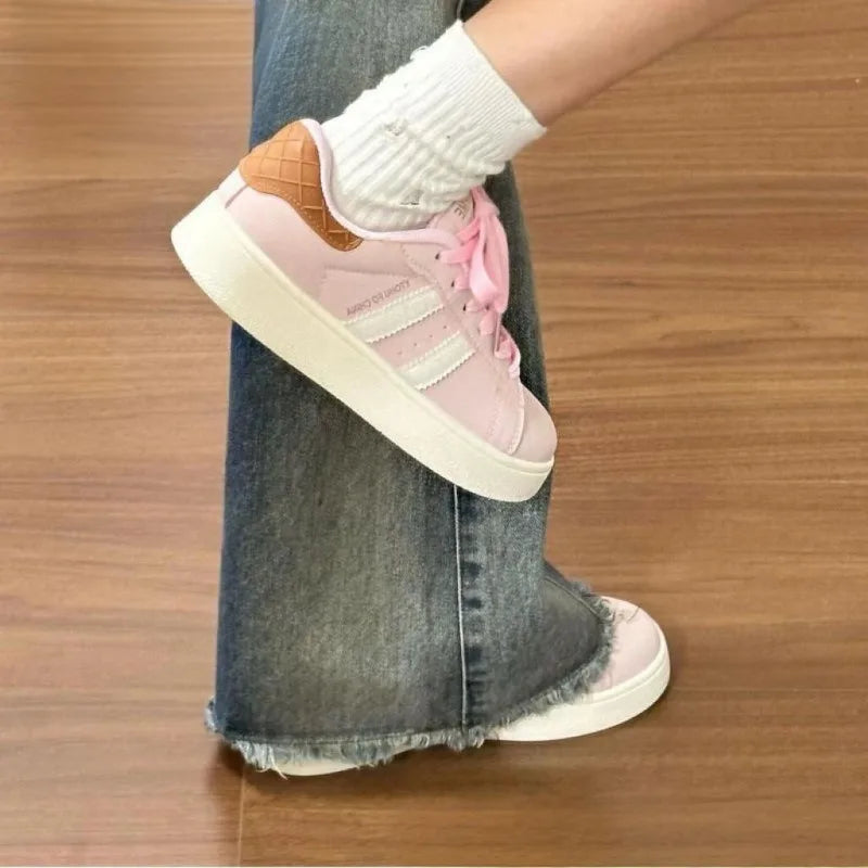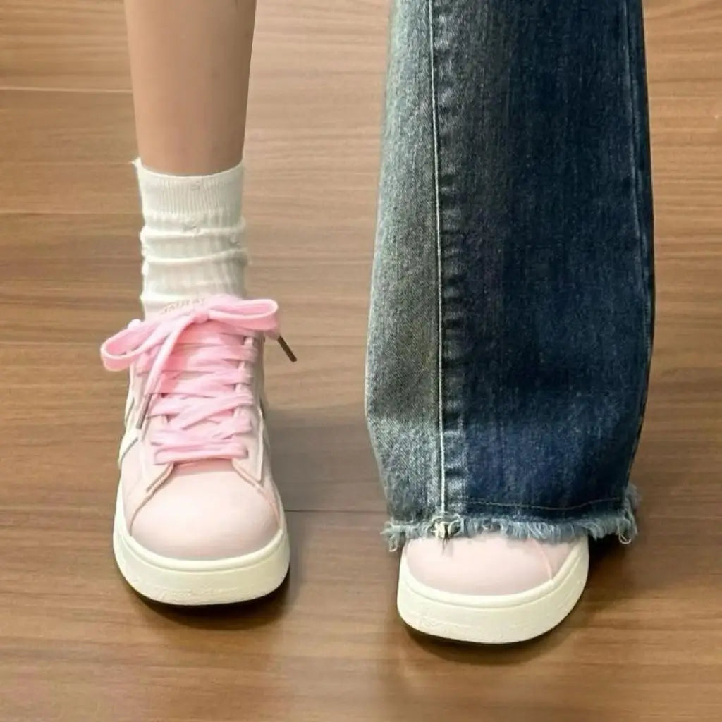 ADVBRIDGE - Minimalist Style Skateboard Shoes Pink Round Toe Versatile Womens Casual Shoes Lace Up Thick Sole Chic Ladies Shoes