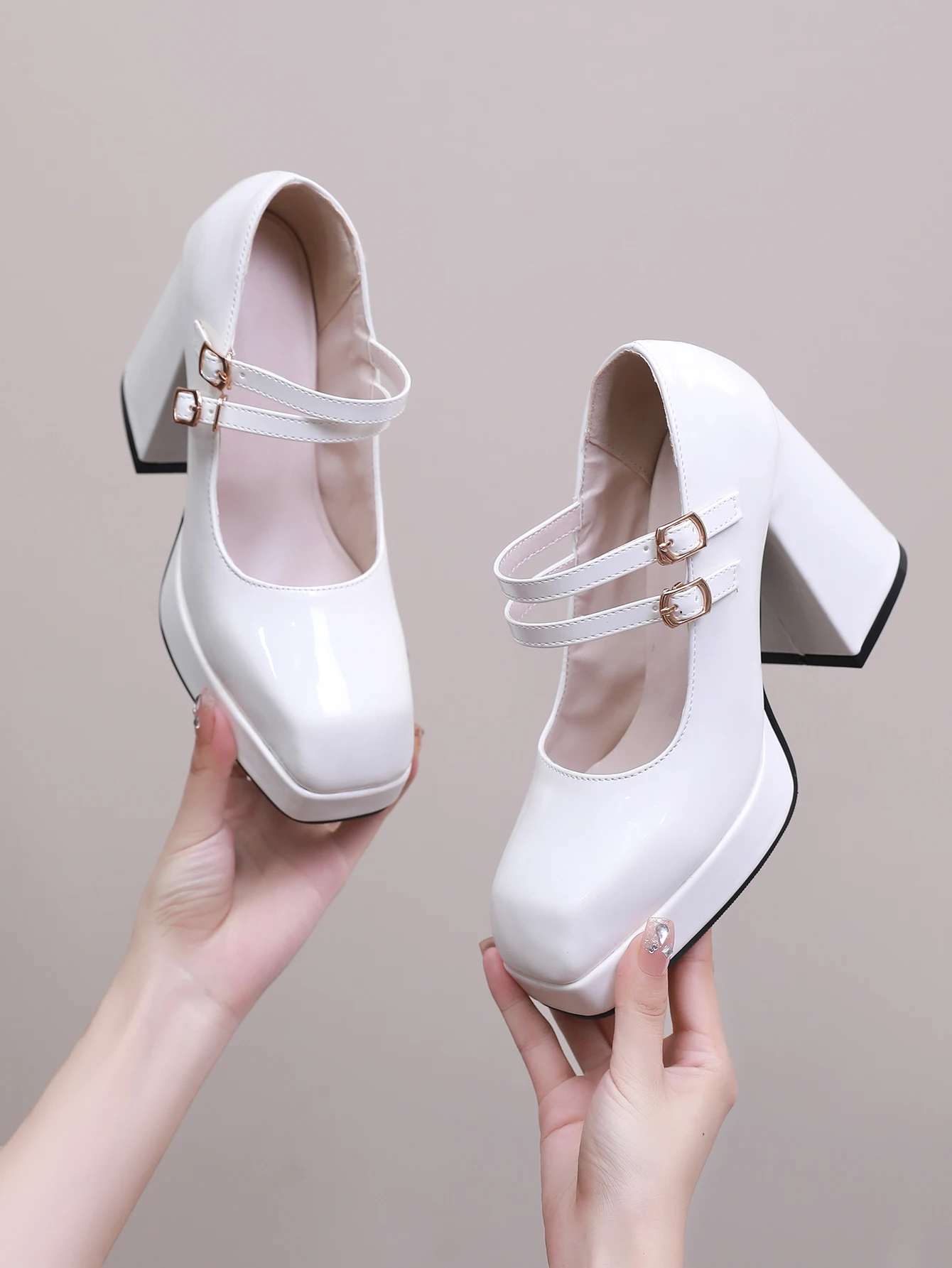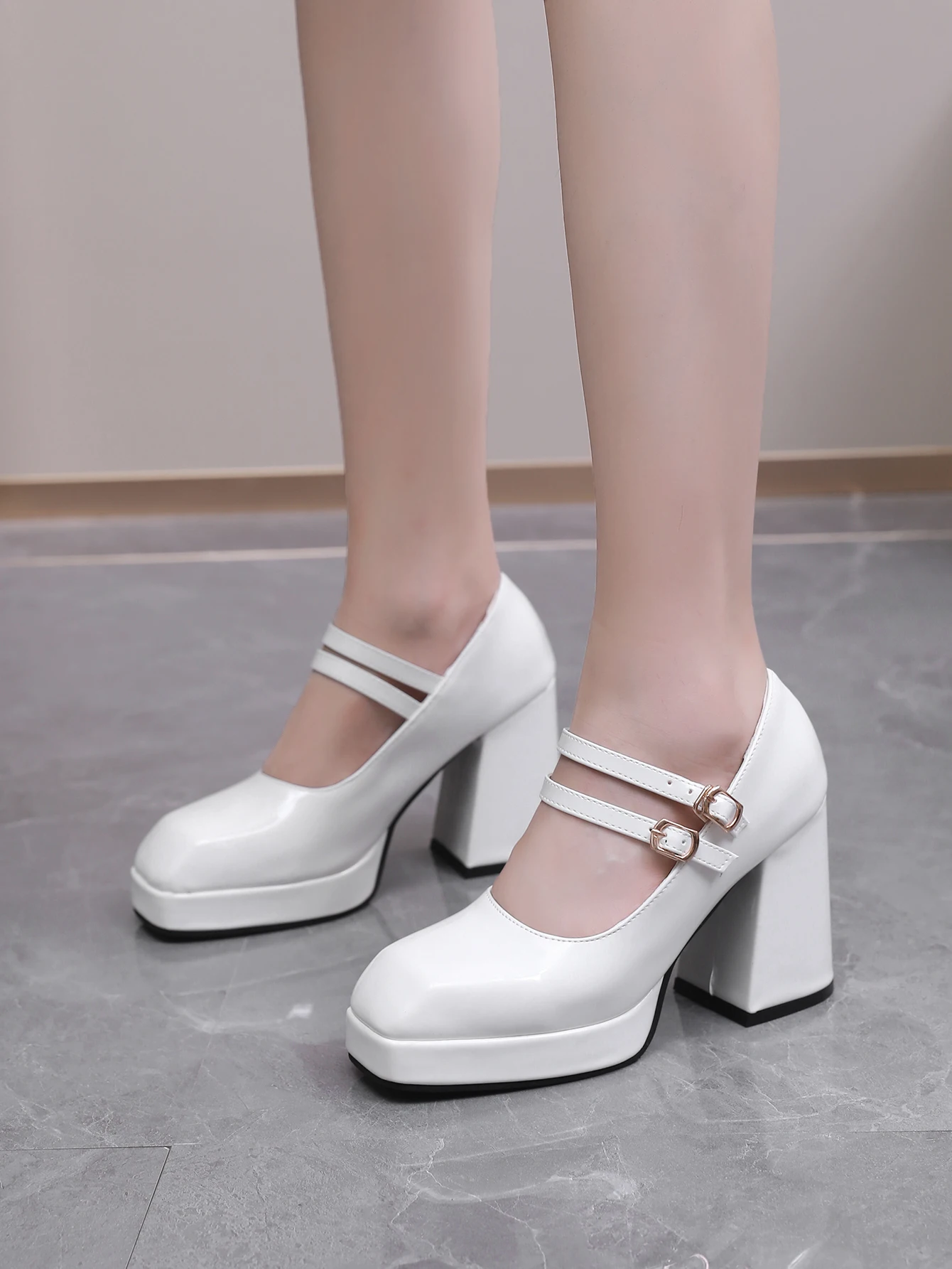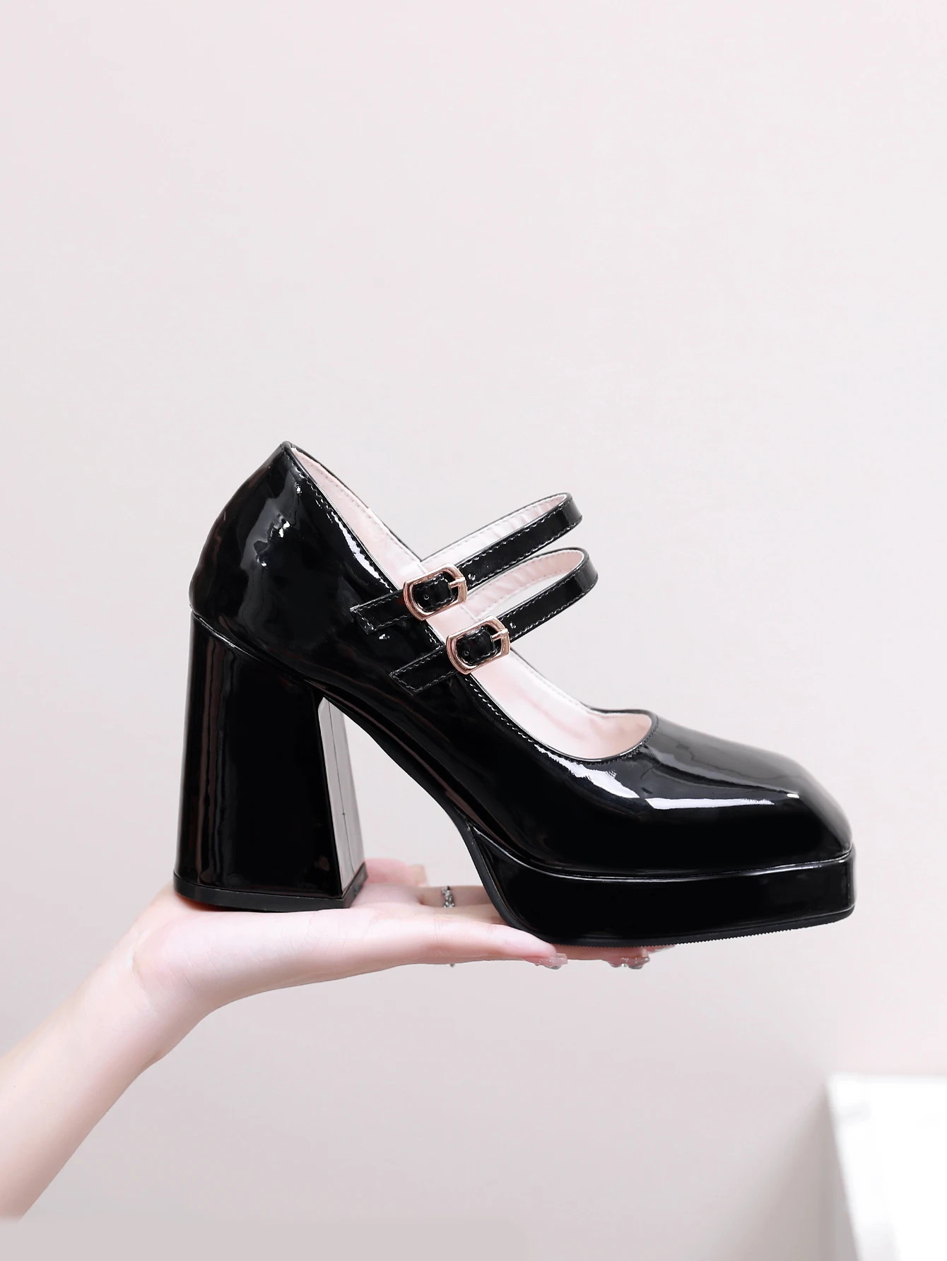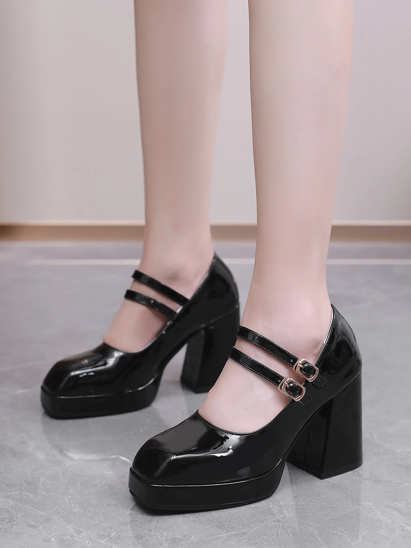 Advbridge new Spring women pumps plus size 23-28cm length patent leather upper double buckle Sexy shoes thick heel womens shoes