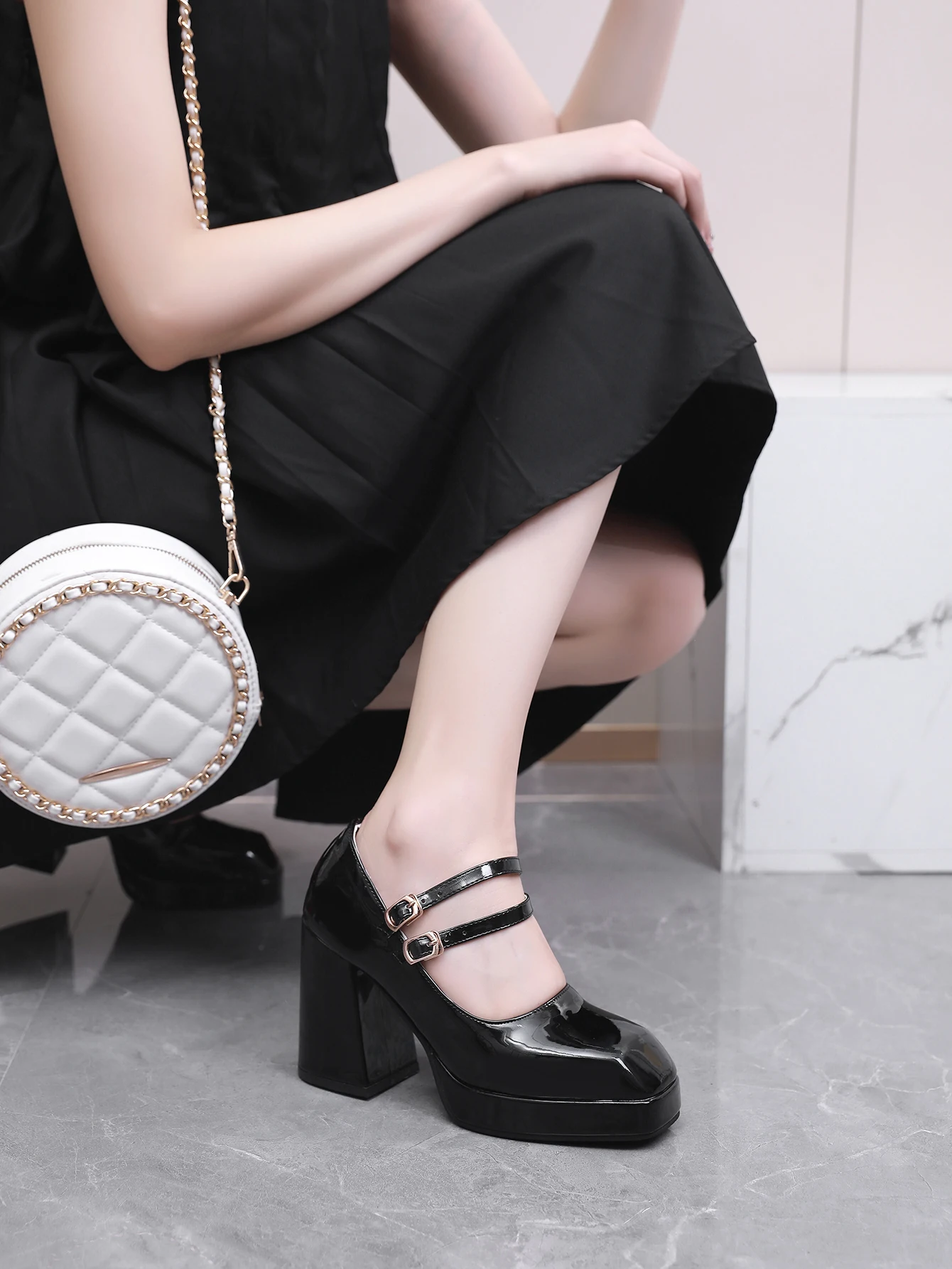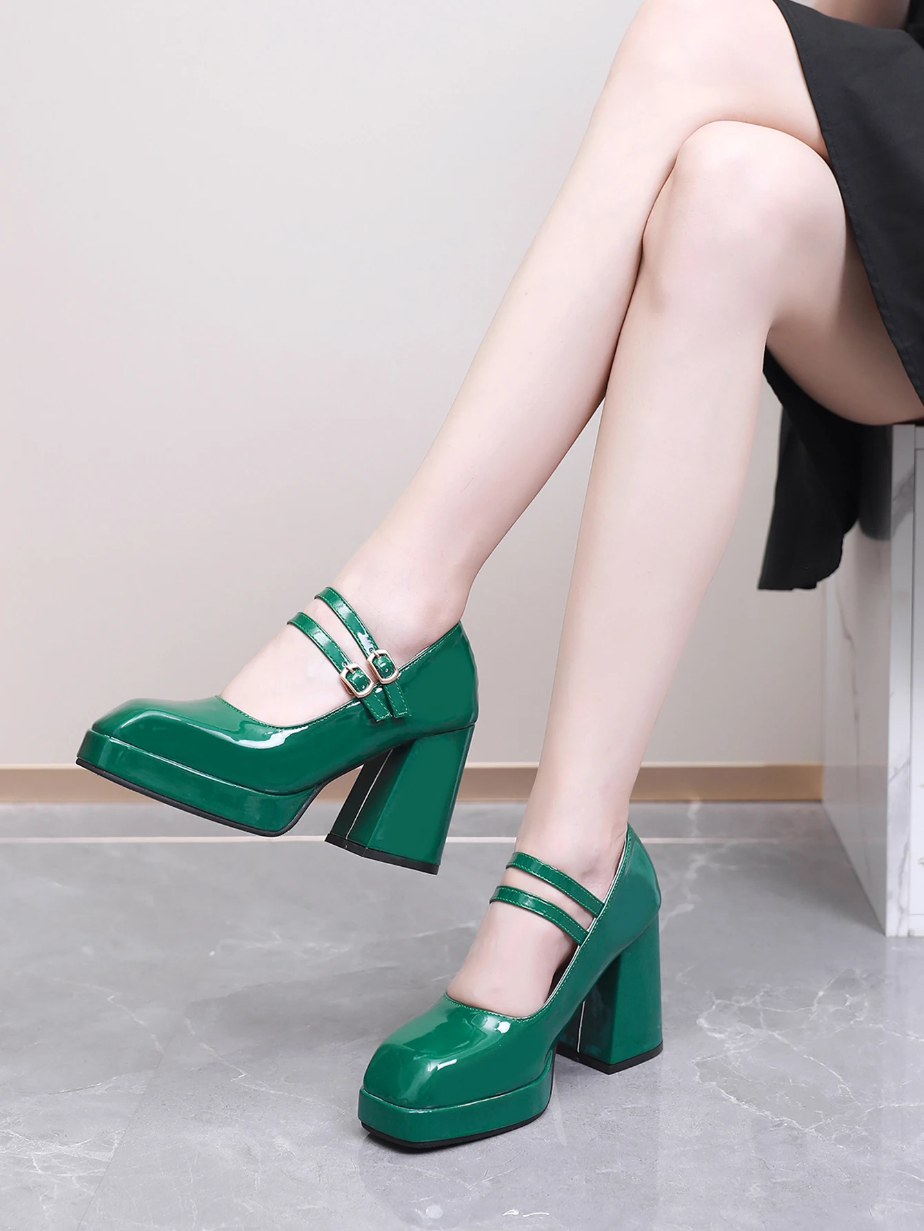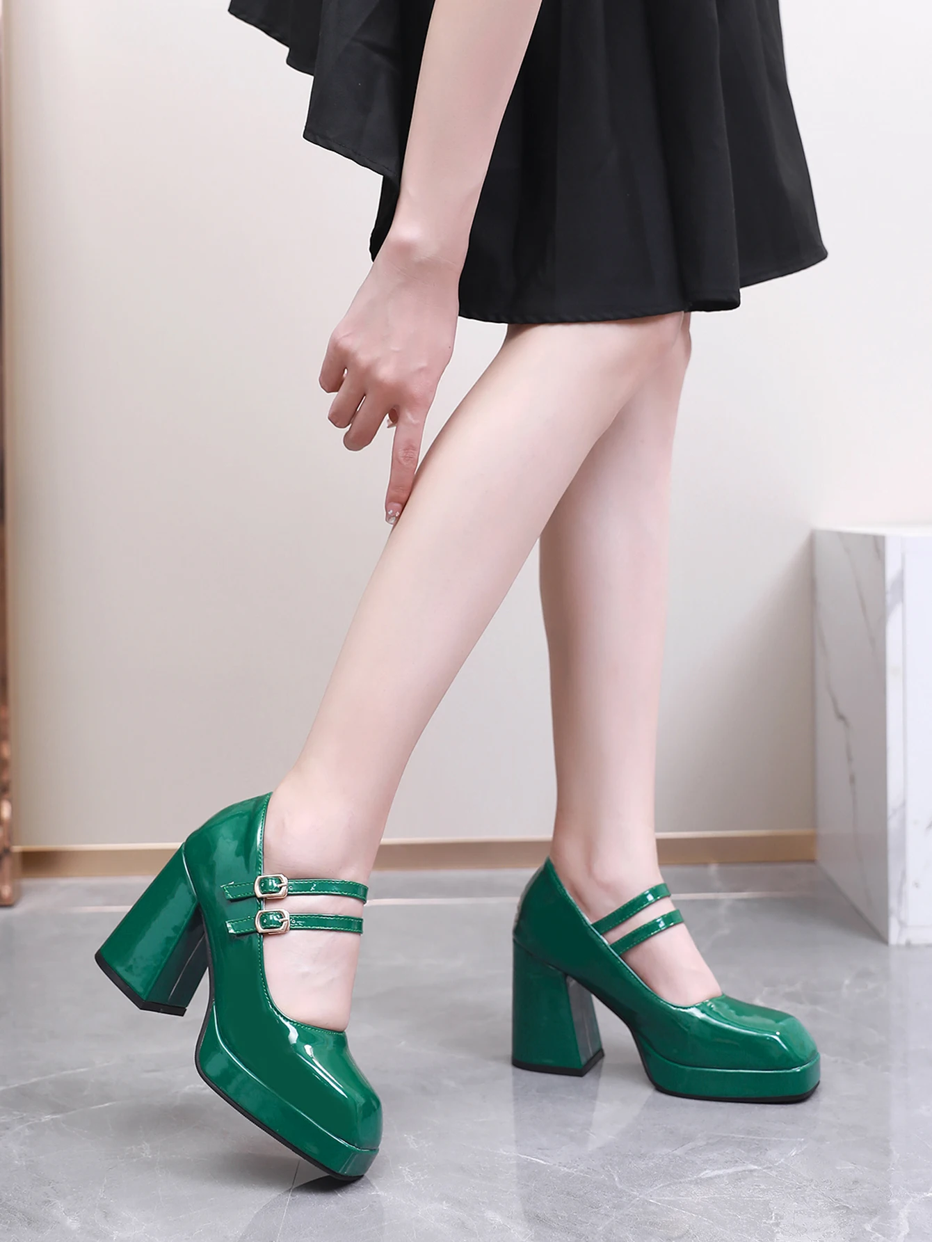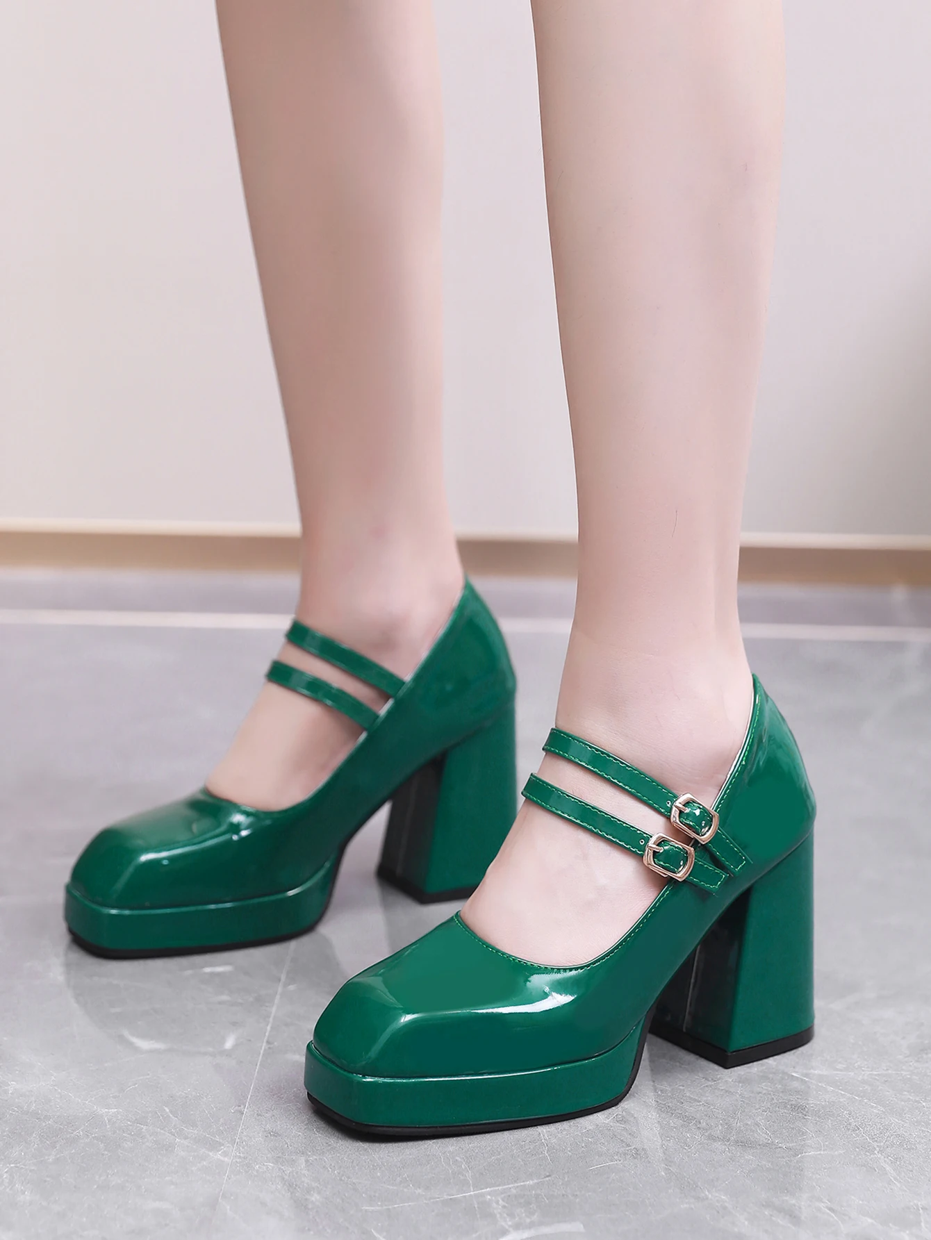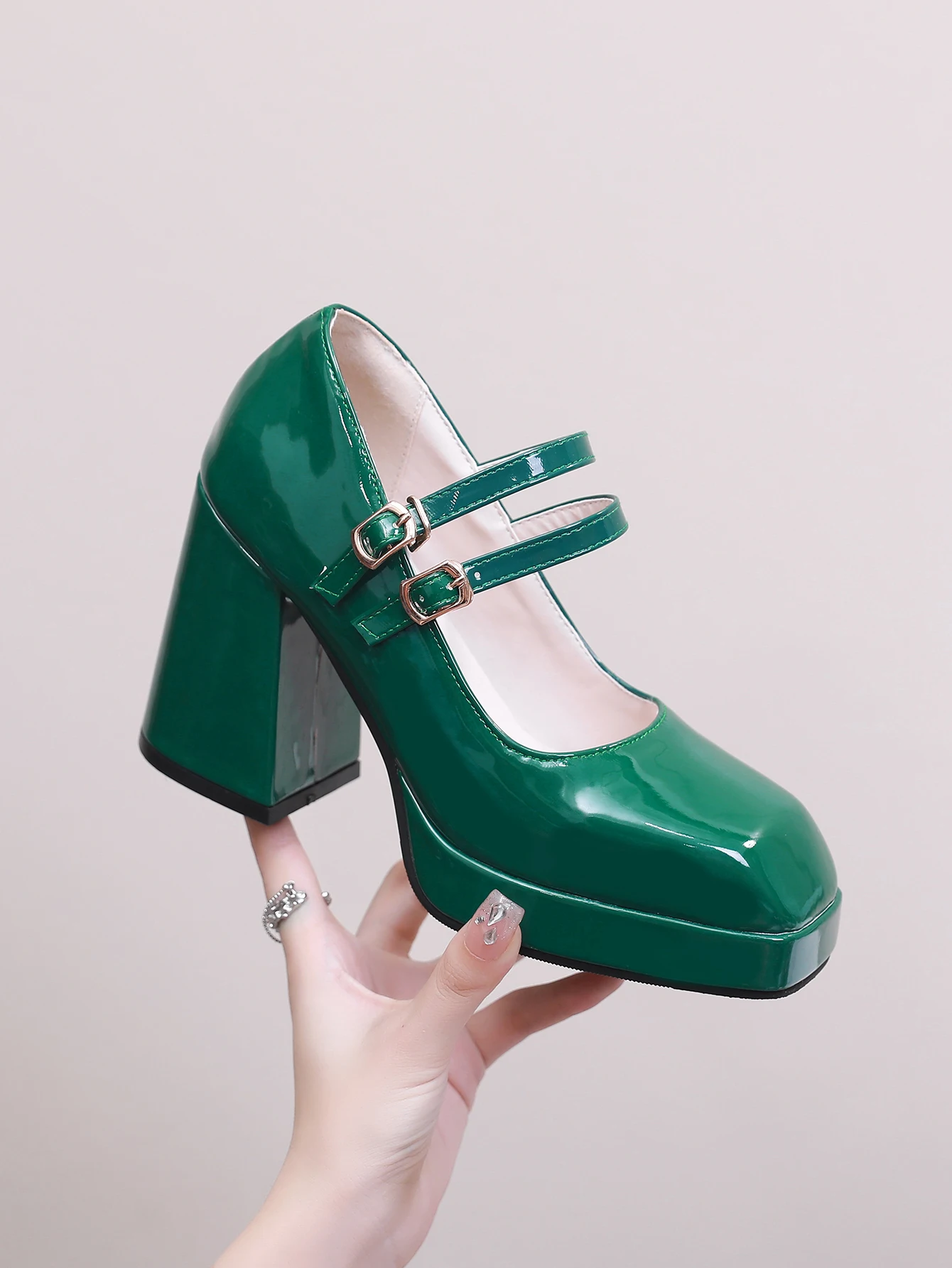 Advbridge new Spring women pumps plus size 23-28cm length patent leather upper double buckle Sexy shoes thick heel womens shoes