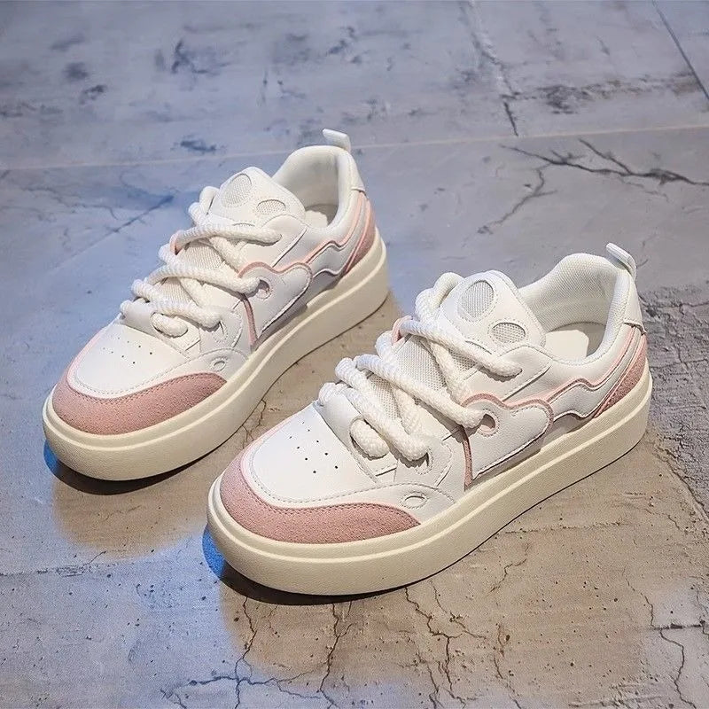 ADVBRIDGE - Pink Heart Womens Volcanise Shoes Mixed Colors Fashion Skateboard Shoes Non Slip and Breathable Lace Up Casual Shoes