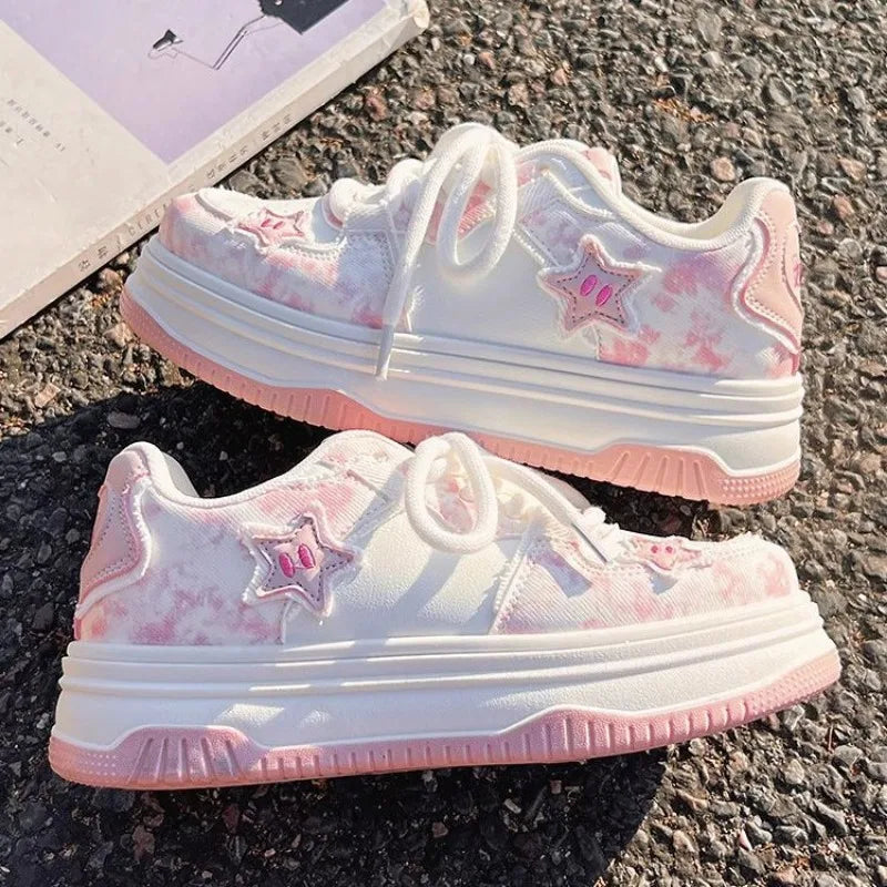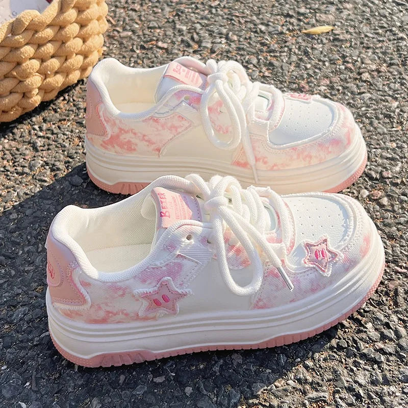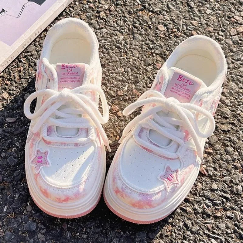ADVBRIDGE - Sakura Pink Skateboard Shoes Cute Stars Versatile Womens Casual Shoes Artificial Leather Niche Leisure Shoes for Ladies