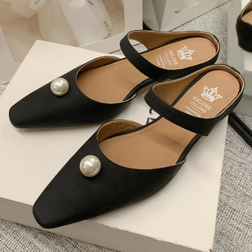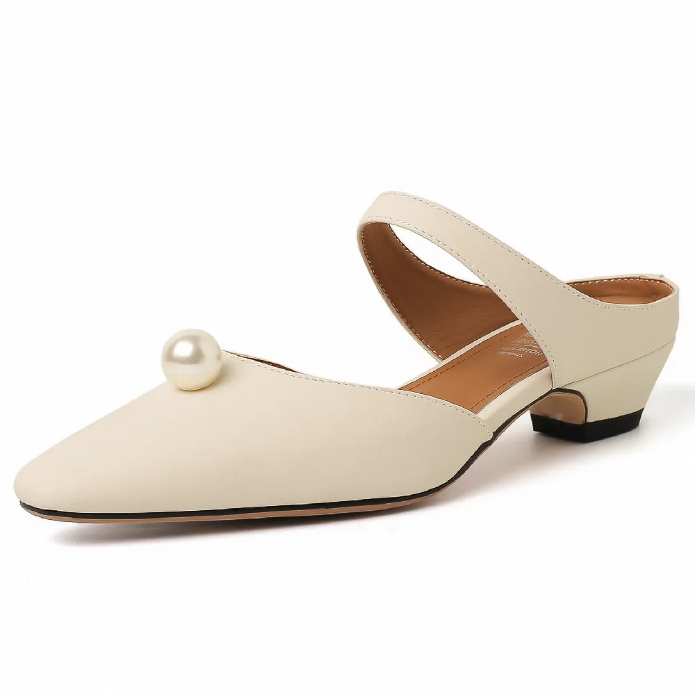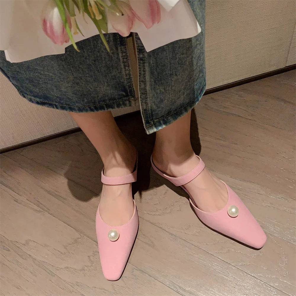 Advbridge Slippers shoes for women korean style genuine leather slip-on summer mules elegant ladies low kitten heel sandals shoes hot