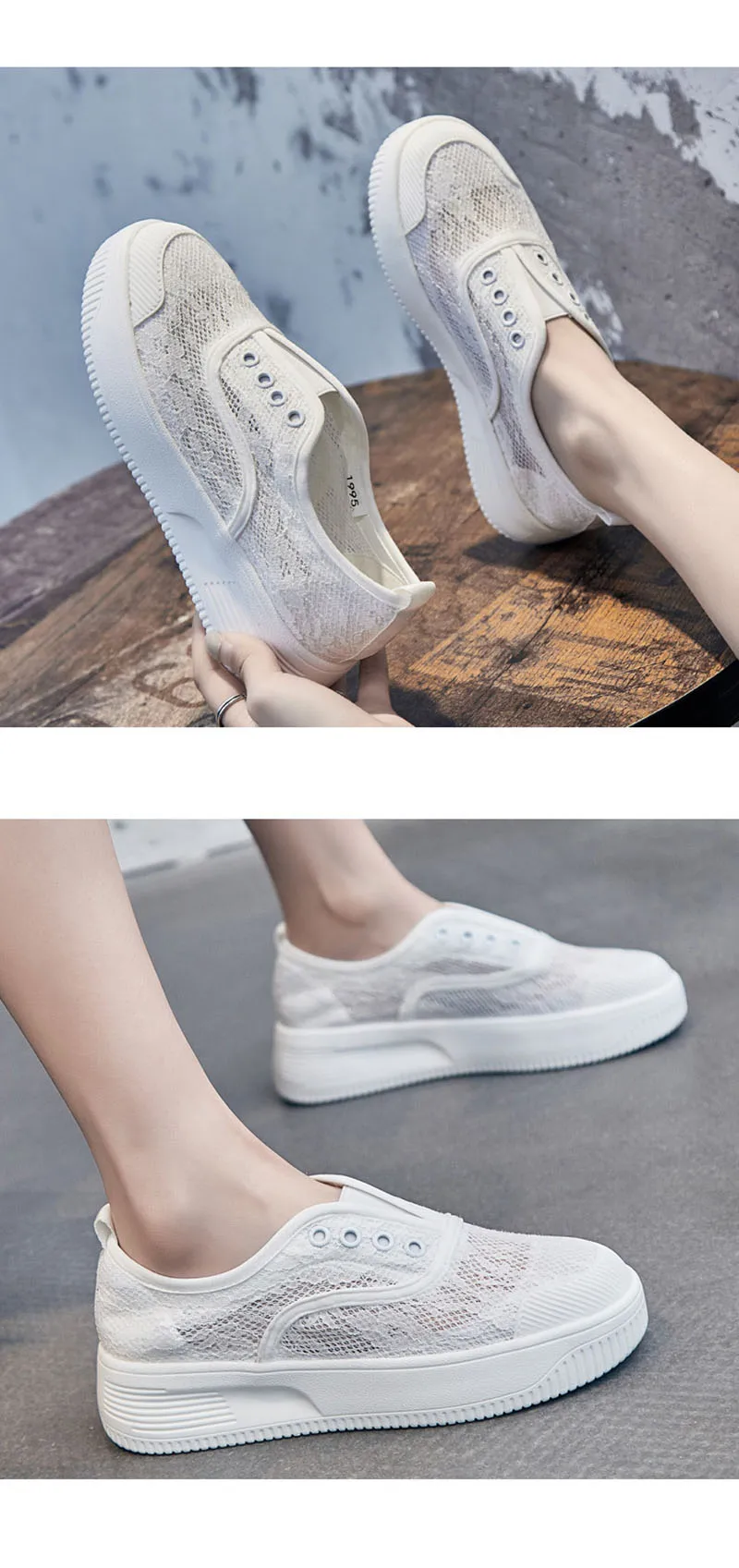 Advbridge Summer Shoes Women Flats Breathable Mesh Cloth Shoes Flat Casual Woman Shoes Sweet Ladies Thick Sole Black White A4527