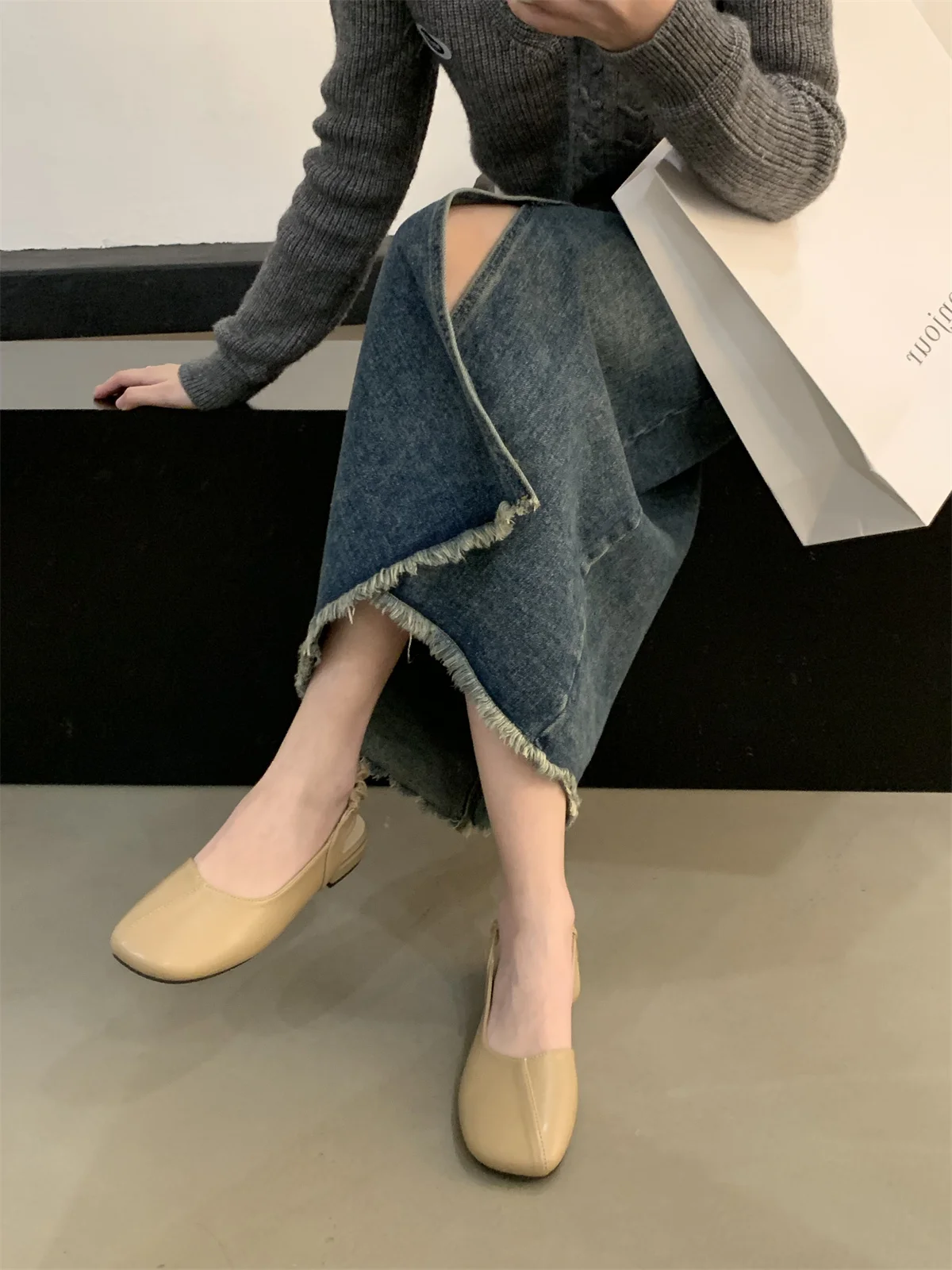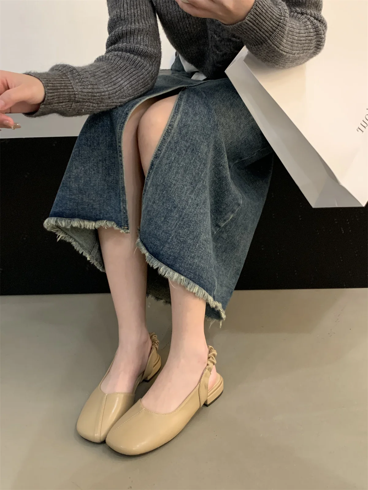 Advbridge Summer Women's Shoes Casual Heels Navy Blue Pumps 2025 Shallow Mouth Sweet Sandals Ladies Comfortable Low Orange Straps Branded