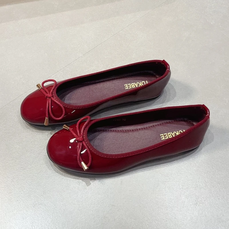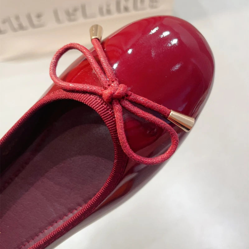 ADVBRIDGE - Sweet Bow Round Toe Red Mary Jane Shoes Woman Luxury High Quality Patent Leather Ballet Flats Comfort Soft Sole Wedding Shoes