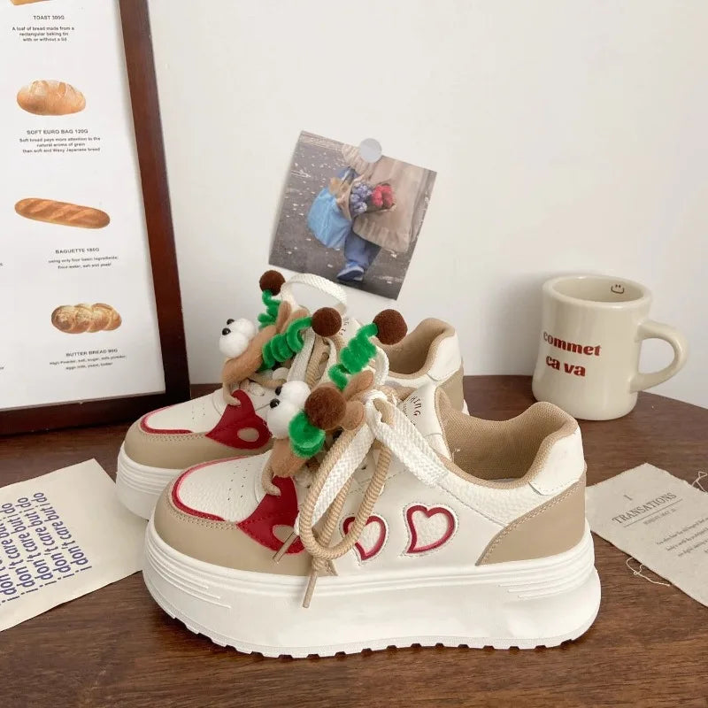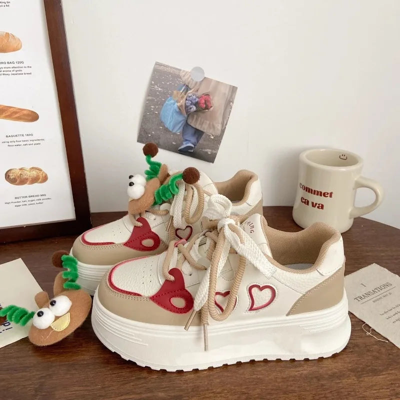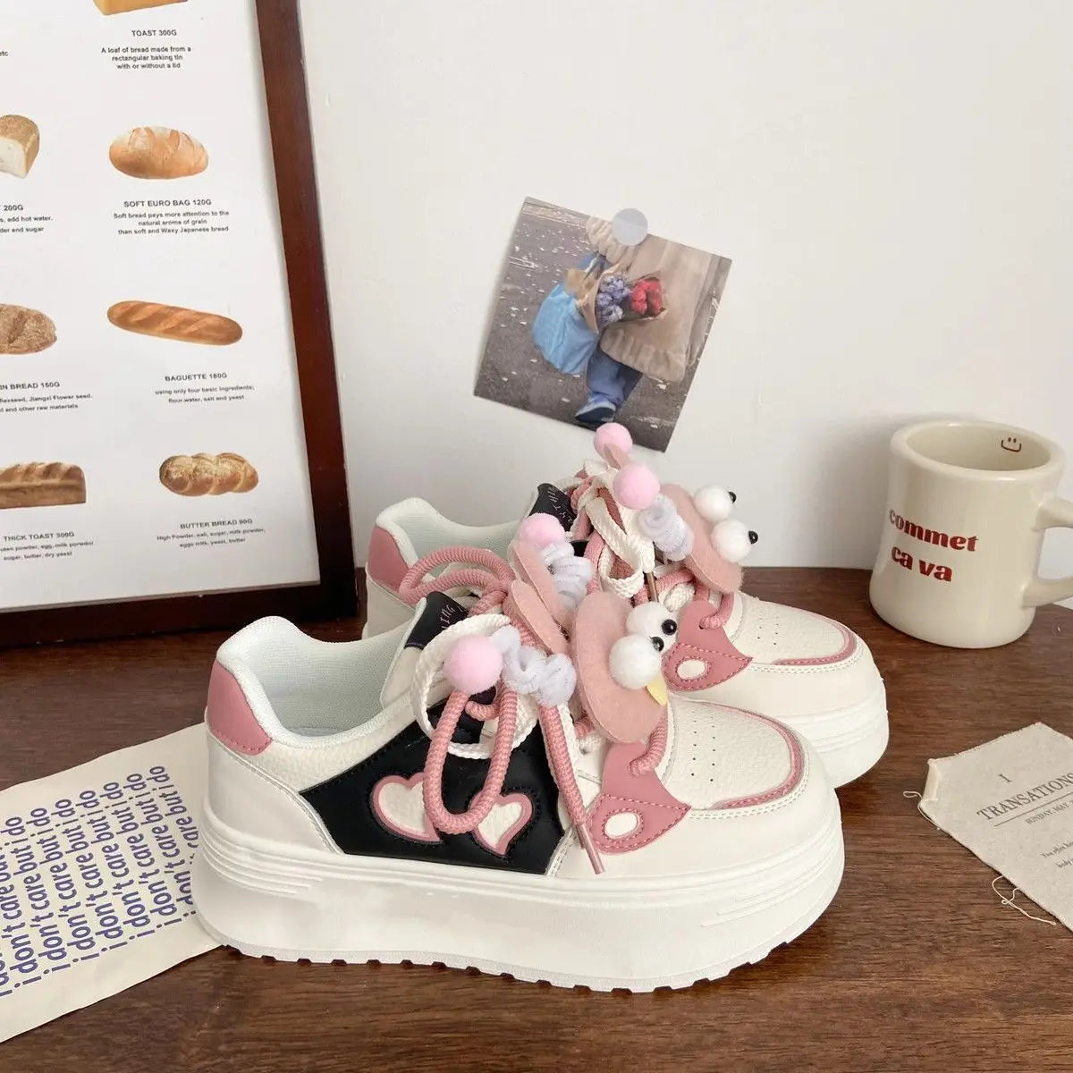 ADVBRIDGE  - Sweet Platform Sports Shoes Woman Korean Style Kawaii Pink Women Sneakers Autumn Casual Versatile Low-top Women Shoes