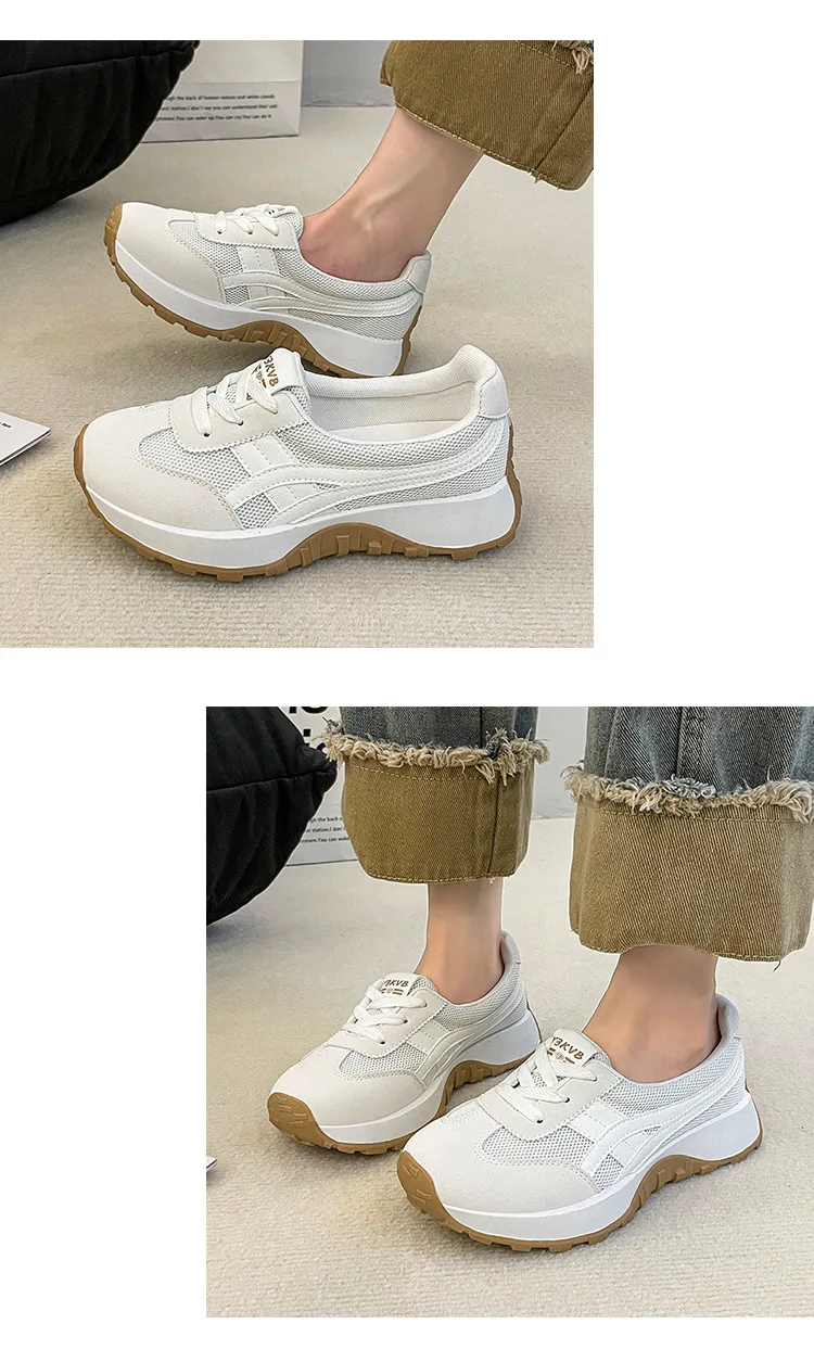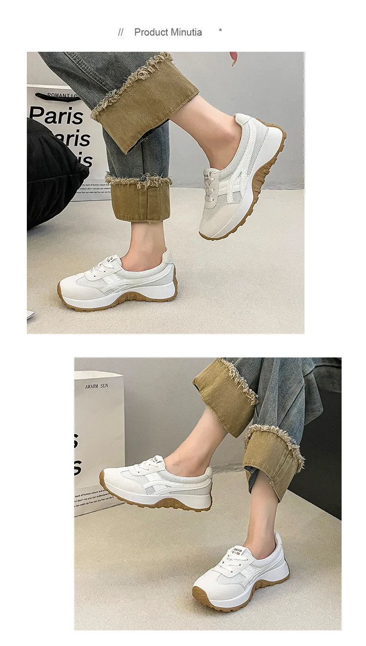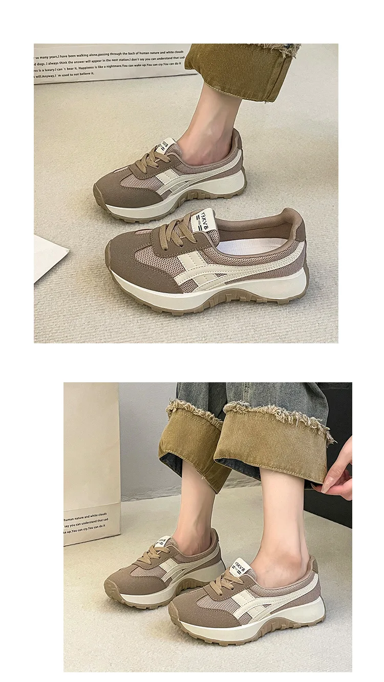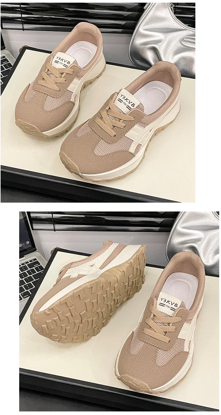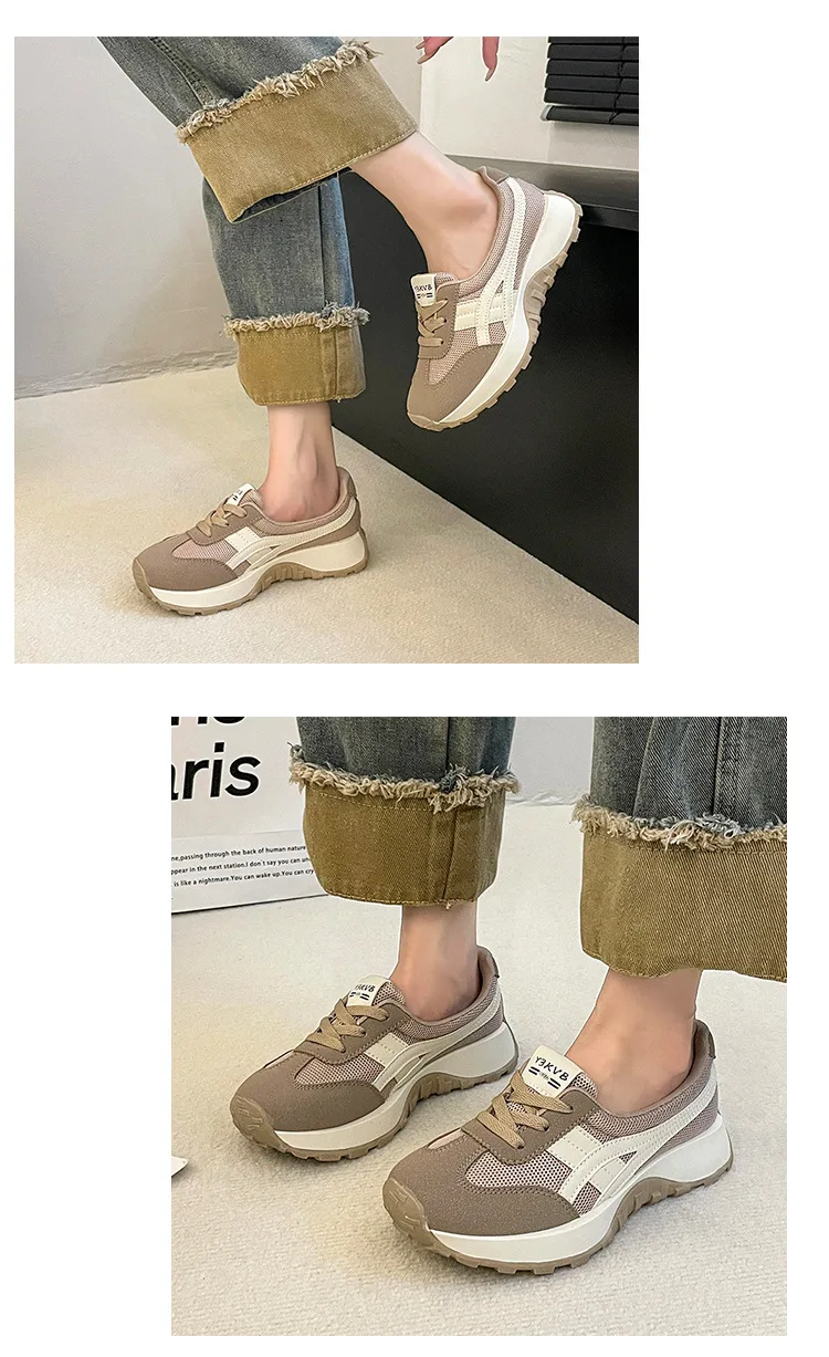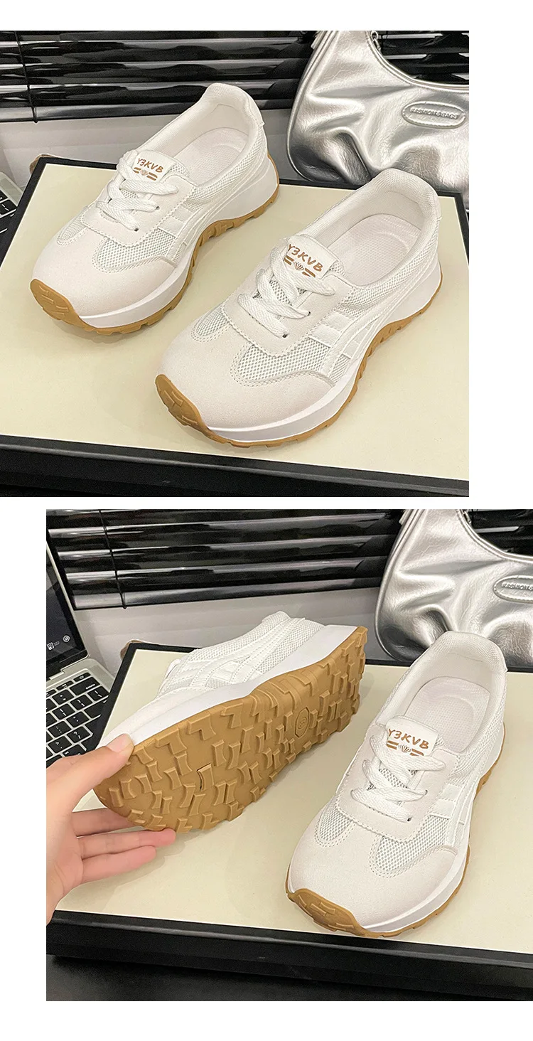 ADVBRIDGE - Tennis Shoes Women's Thick Soled Casual Sports Shoes Breathable Super Soft Cute Retro Crawling Shoes Fashionable Solid Color