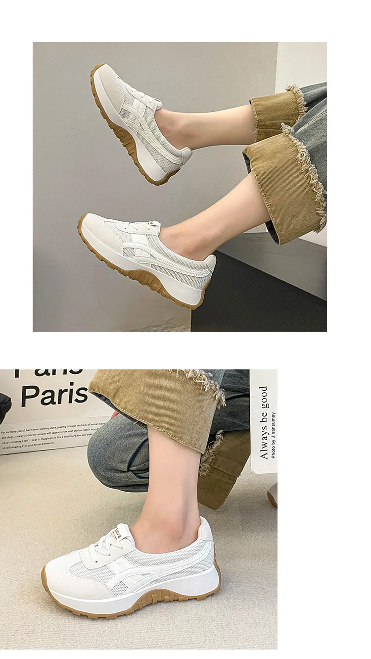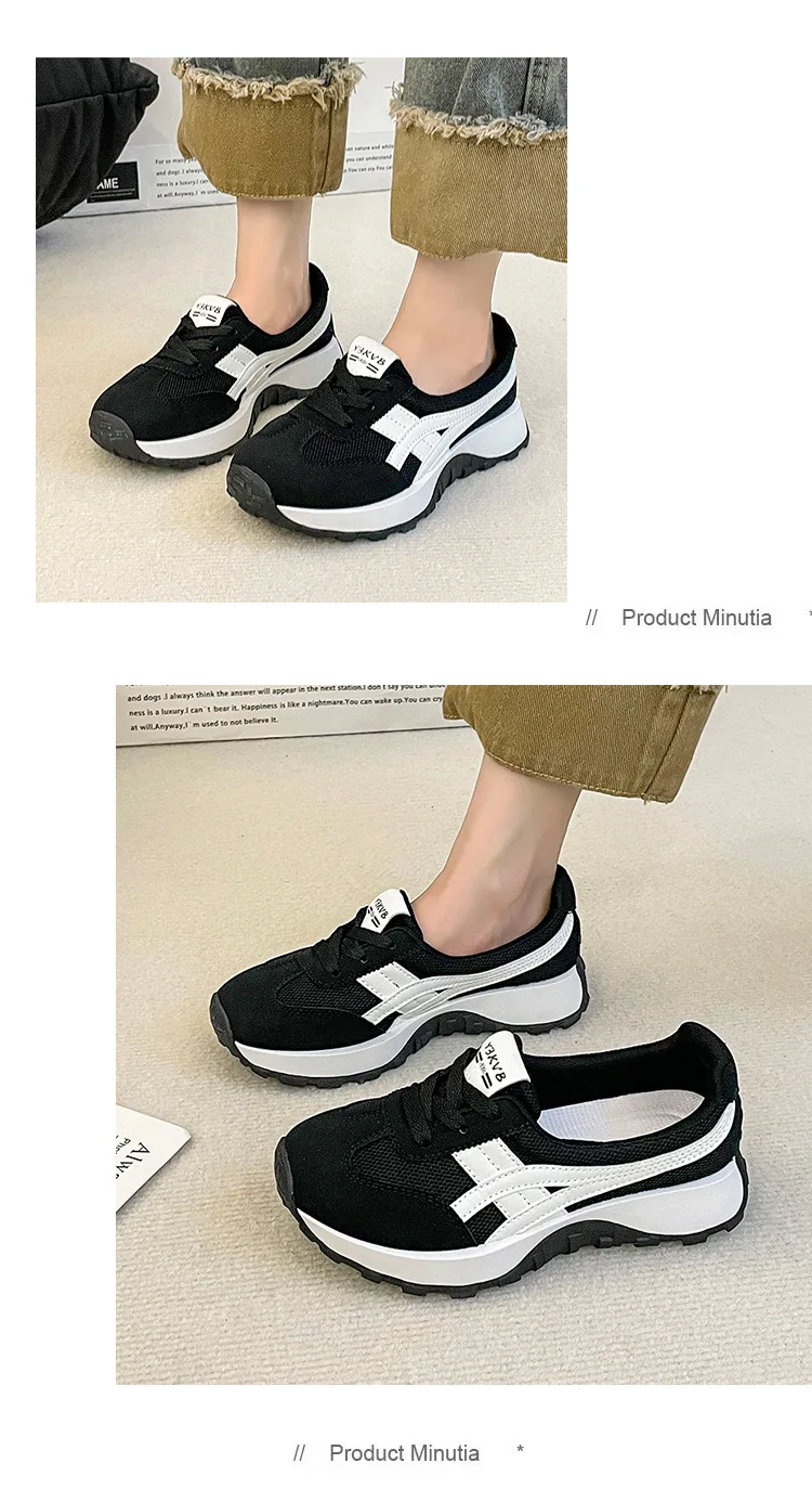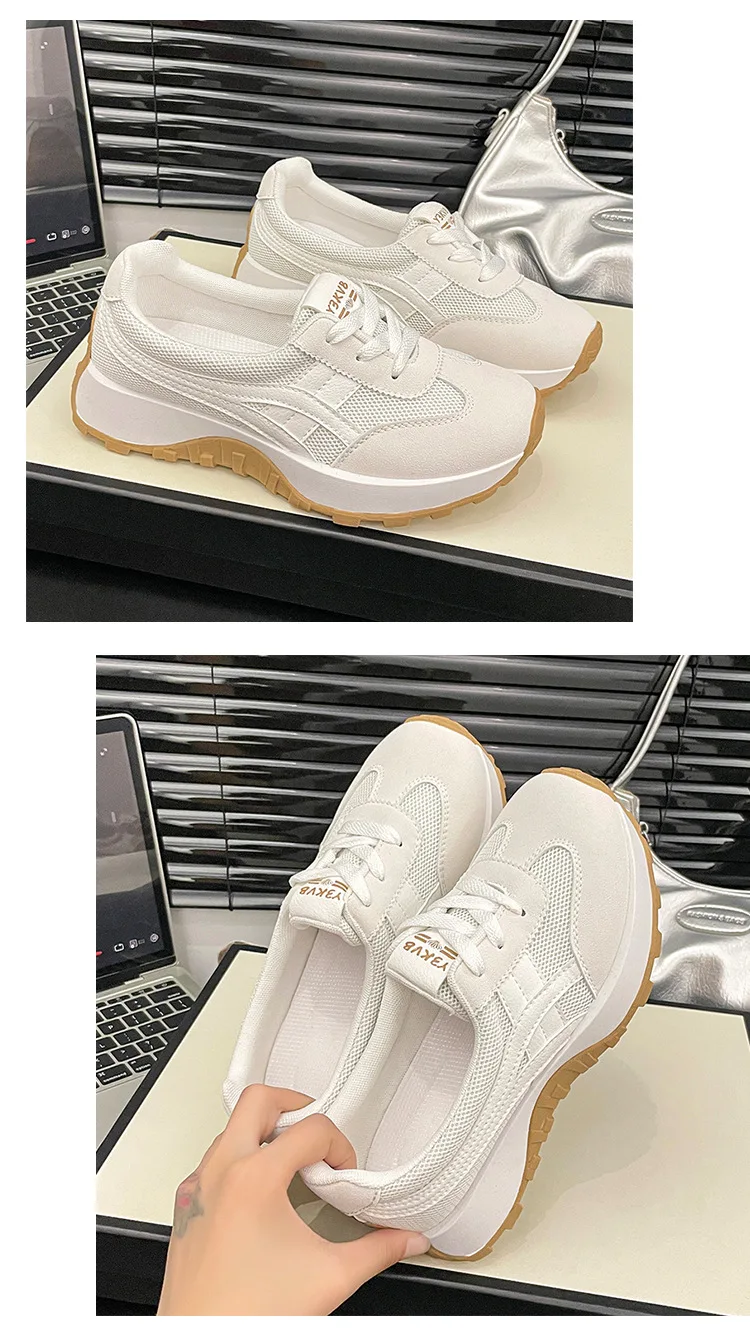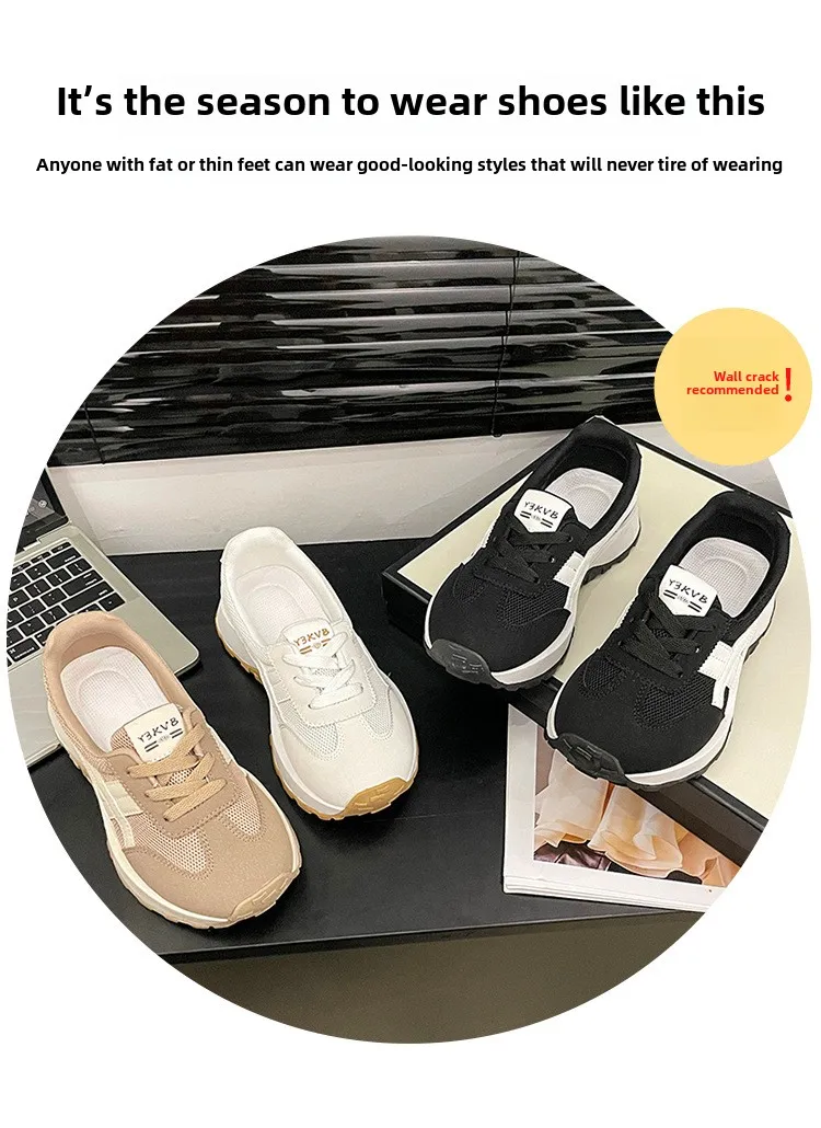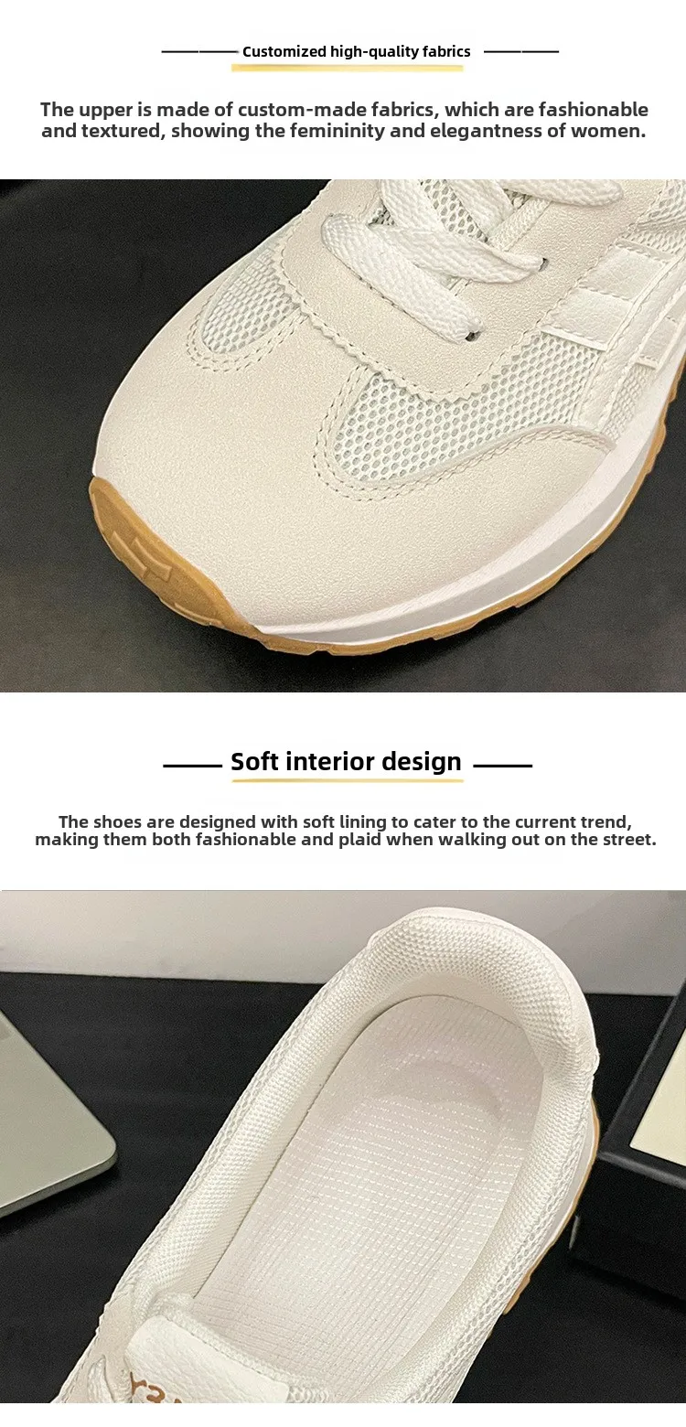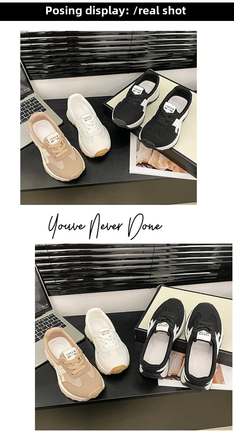ADVBRIDGE - Tennis Shoes Women's Thick Soled Casual Sports Shoes Breathable Super Soft Cute Retro Crawling Shoes Fashionable Solid Color