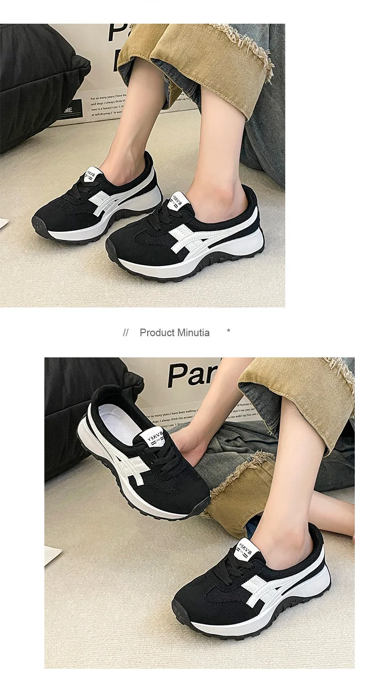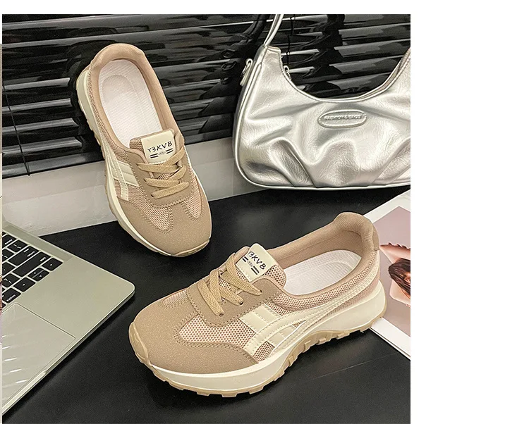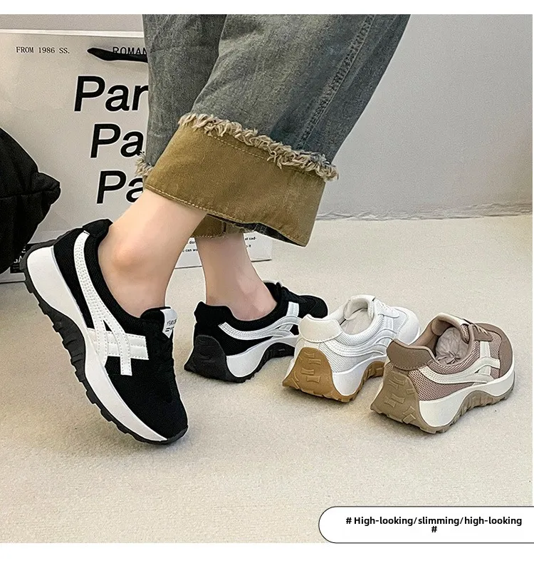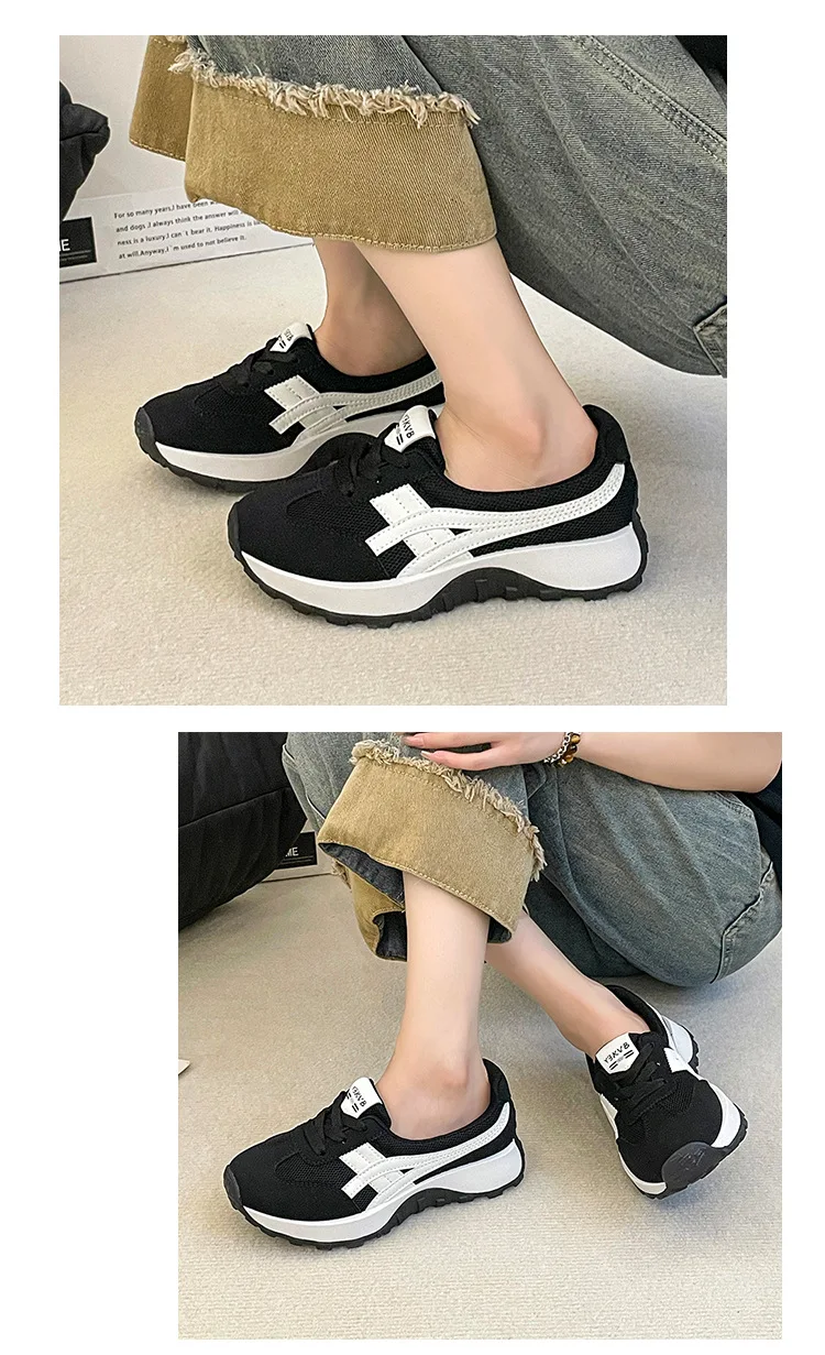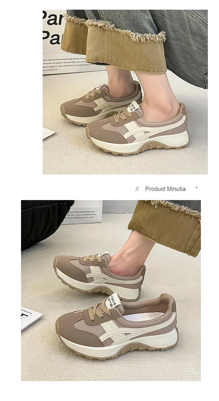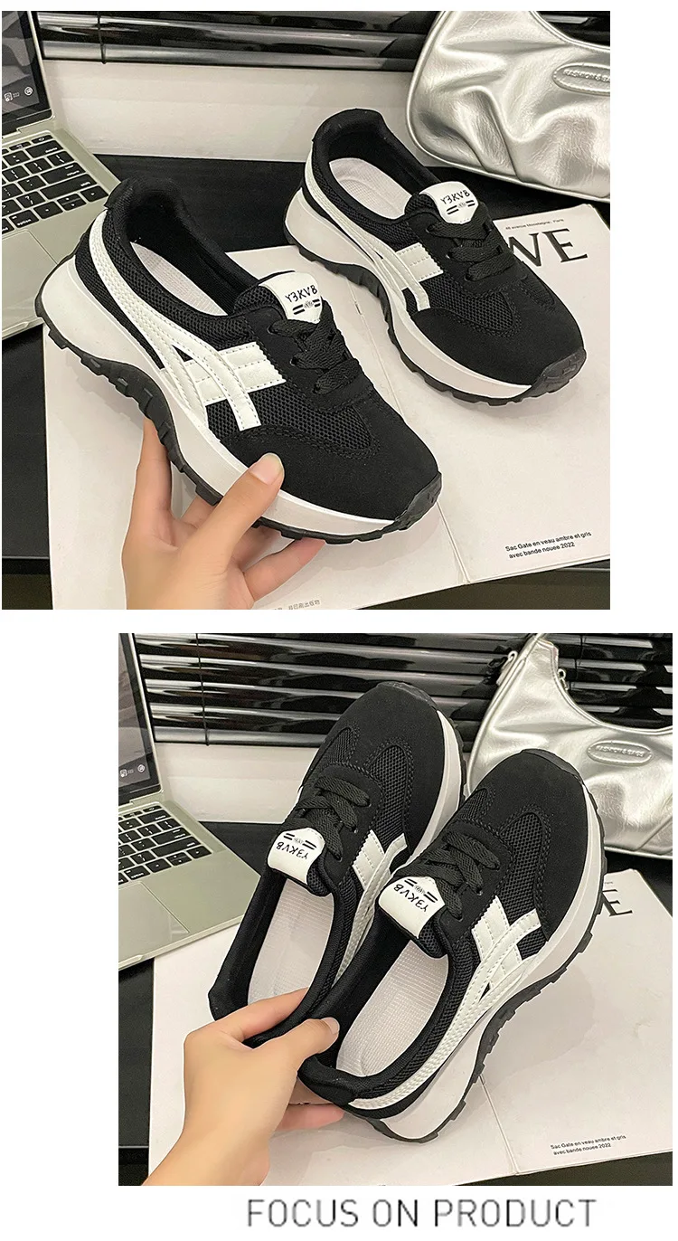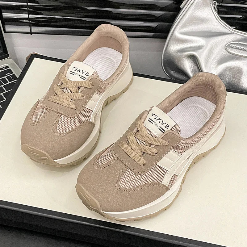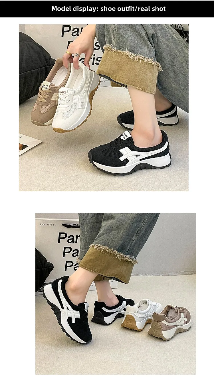 ADVBRIDGE - Tennis Shoes Women's Thick Soled Casual Sports Shoes Breathable Super Soft Cute Retro Crawling Shoes Fashionable Solid Color