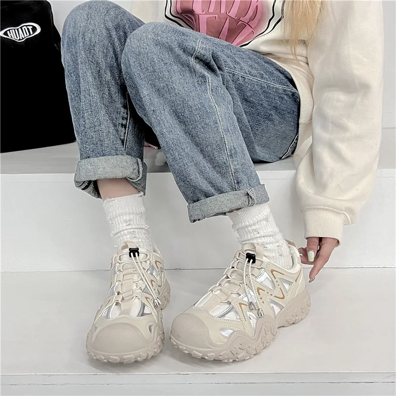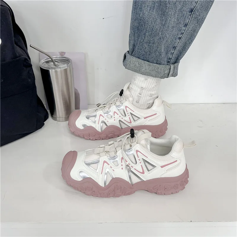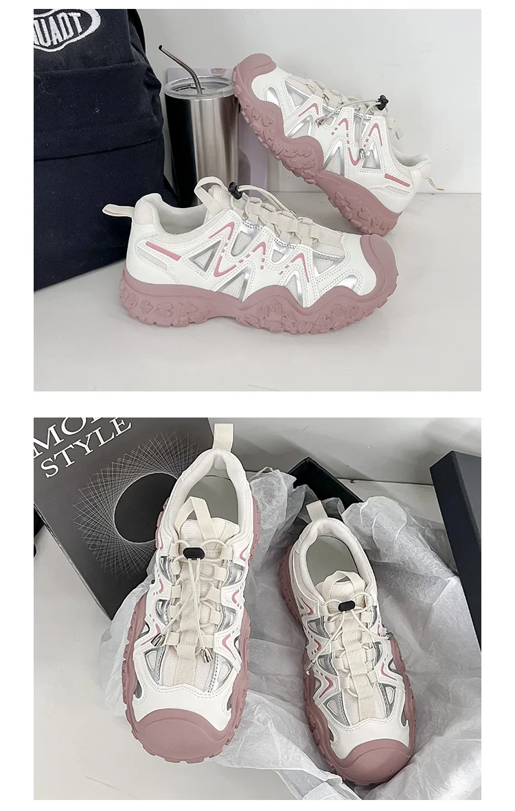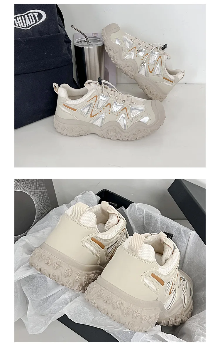 ADVBRIDGE - Women's Mesh Breathable Sports Shoes with Thick Soles Dad's Shoe Student Height Increasing Running Shoes Outdoor Hiking Shoe