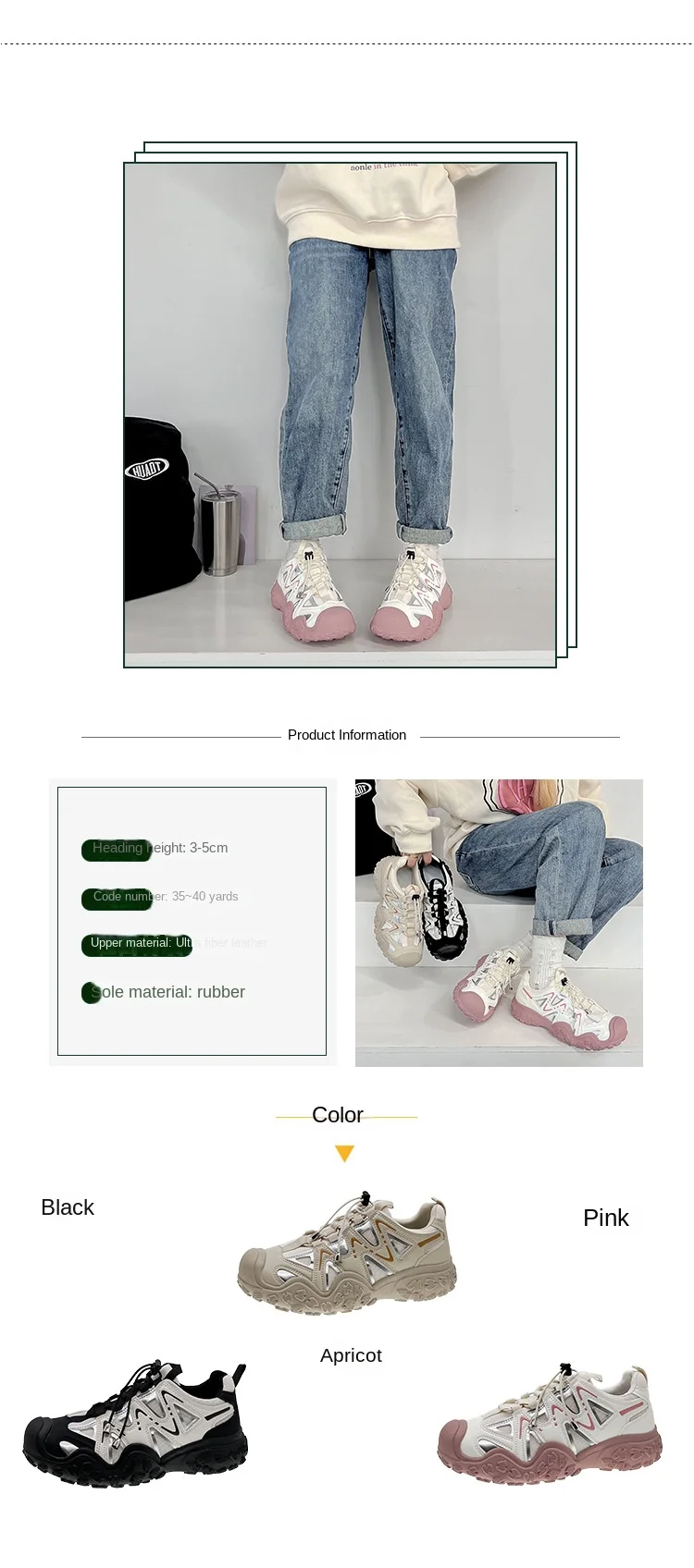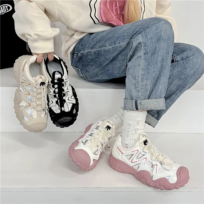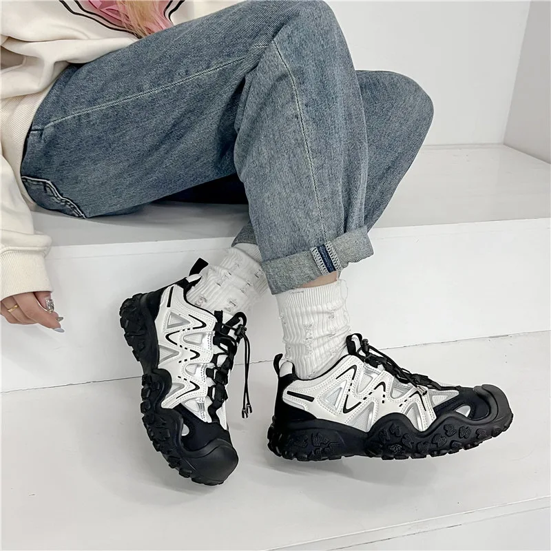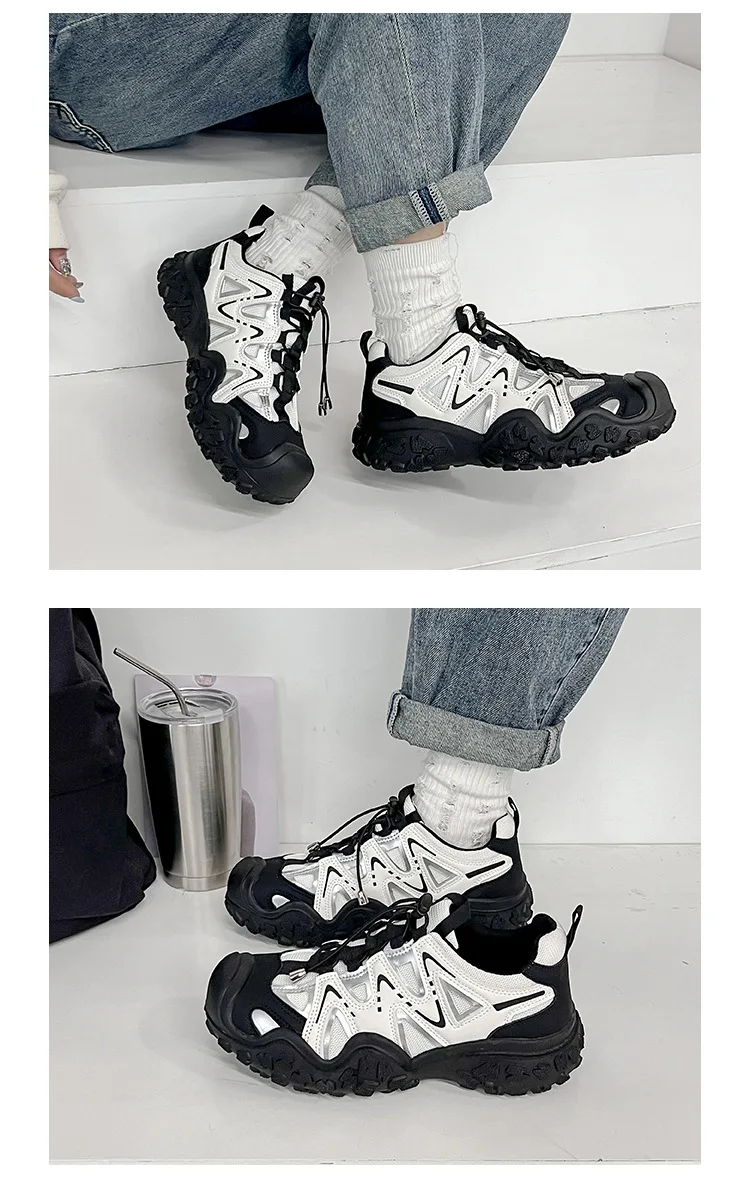 ADVBRIDGE - Women's Mesh Breathable Sports Shoes with Thick Soles Dad's Shoe Student Height Increasing Running Shoes Outdoor Hiking Shoe