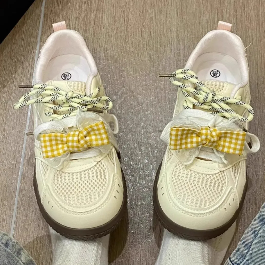 ADVBRIDGE  - Women's Mesh Casual Shoes Retro Plaid Soft Sole Anti-Slip German Training Shoes Fashion Increase Height Light Casual Shoes Women