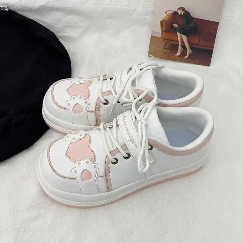 Advbridge Kawaii Shoes Women Sneakers White Round Head Platform Causal Sports Student Cute Pink Girl Lolita Fashion Flats Spring