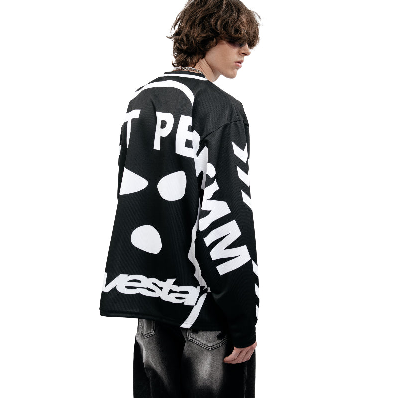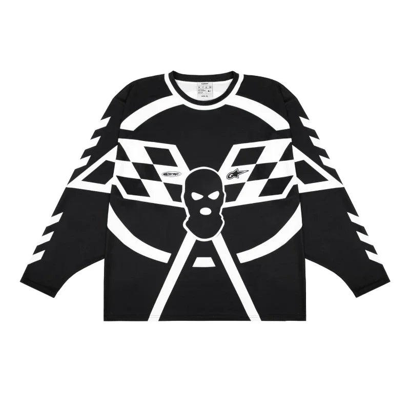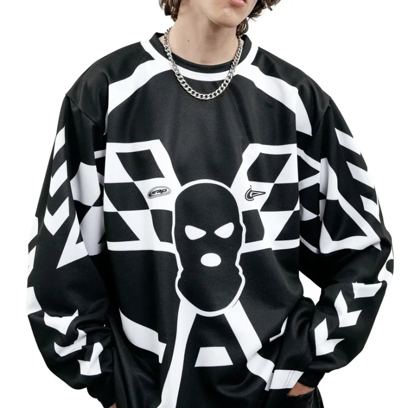Russian Style fashionable streetwear jersey knitted mesh oversized Motorcycle racer pullover Gothic men women vintage sweatshirt