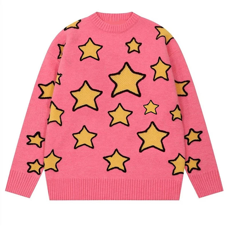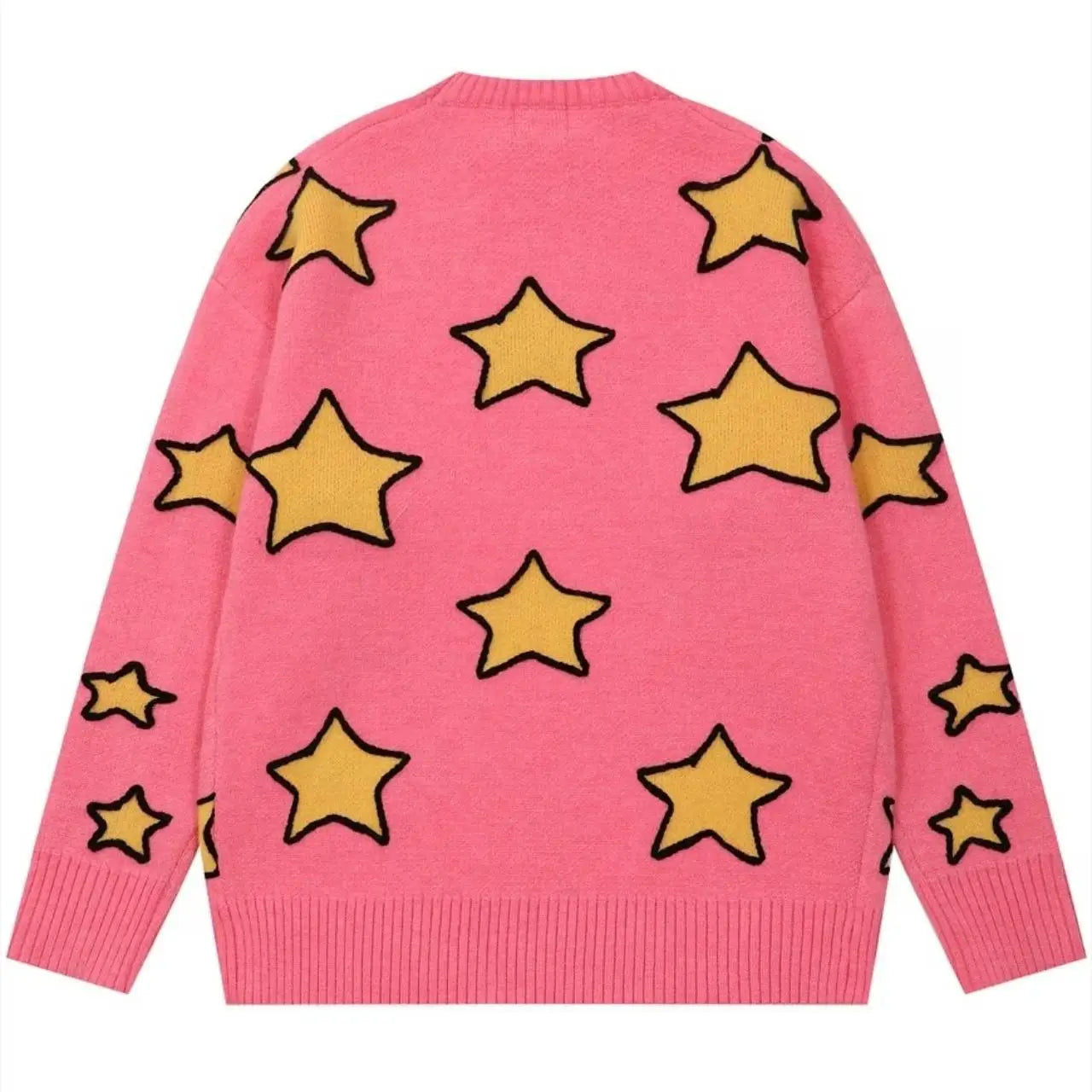 Advbridge winter commuter y2k retro oversize pink star long sleeve jumper hip hop punk back school outfit sweatshirt long sleeve pullover