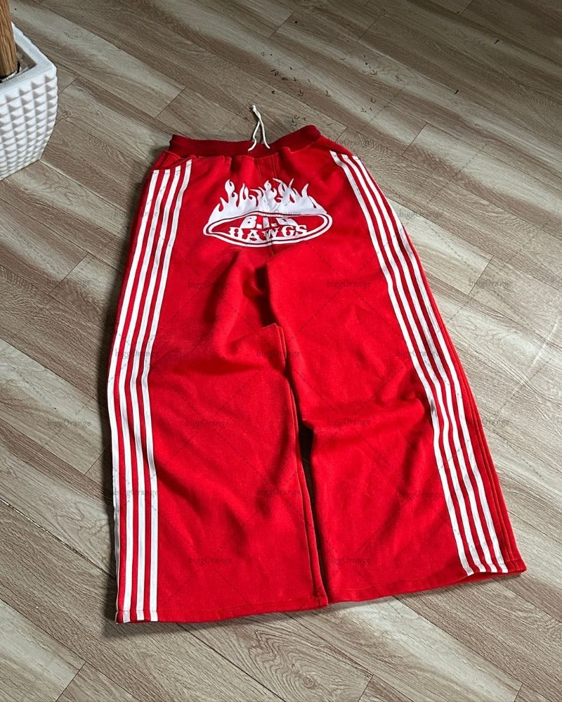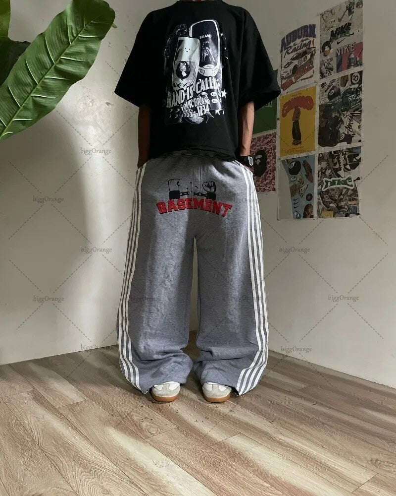 Advbridge Y2K Harajuku Streetwear American Hip-hop Retro Striped Sweatpants Punk Style Letters Anime Print Baggy Straight Wide Leg Pants