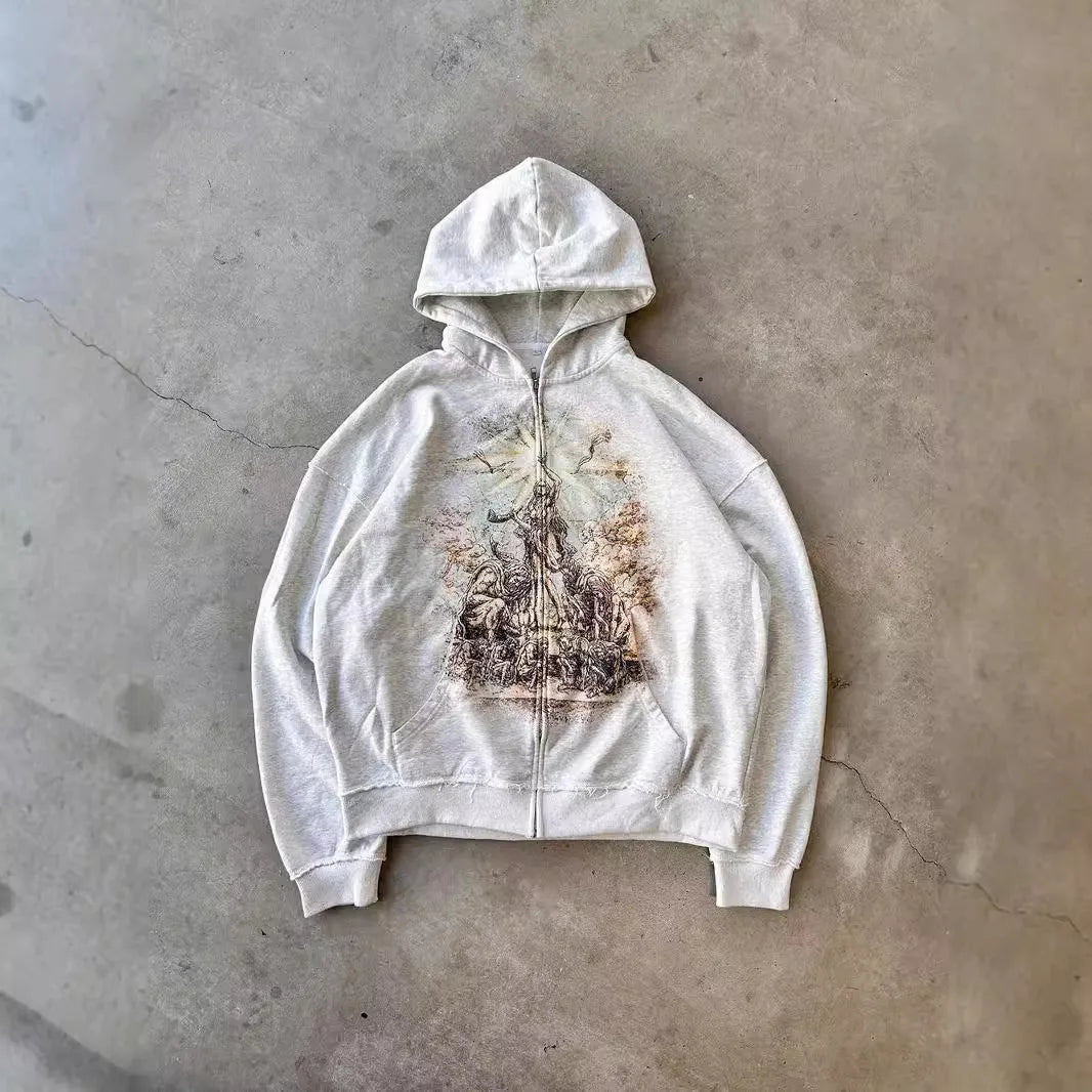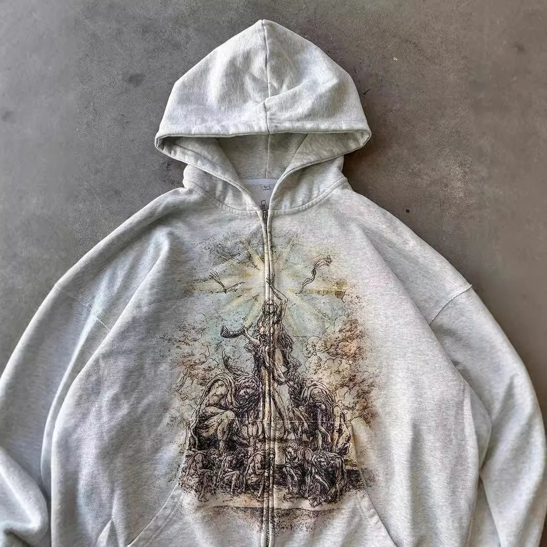 Advbridge Y2k Pullover Long Sleeved Sweatshirt Vintage Printed Pattern Streetwear Tops Vintage Clothes Dark Punk School Outfit Ootd Jacket