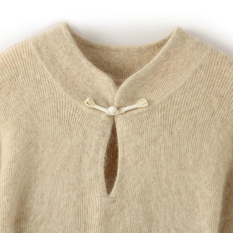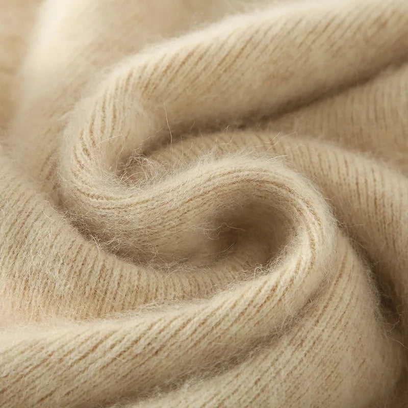 Advbridge 100% Mink Cashmere Dress Women's Stand up collar Pullover Long Skirt Slim Fit Fashion Long Warm Dress Autumn Winter Solid Color