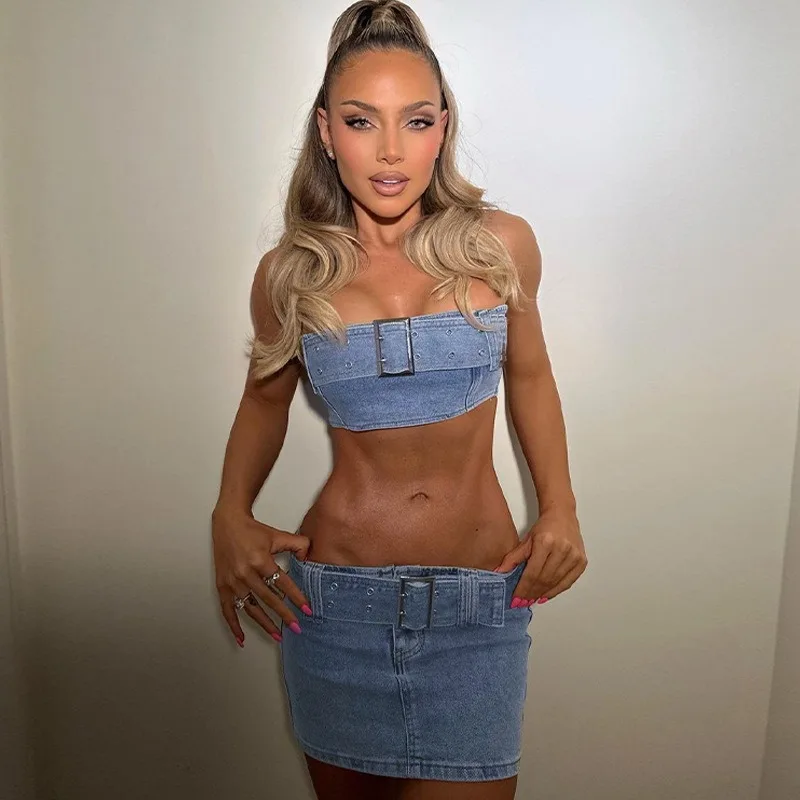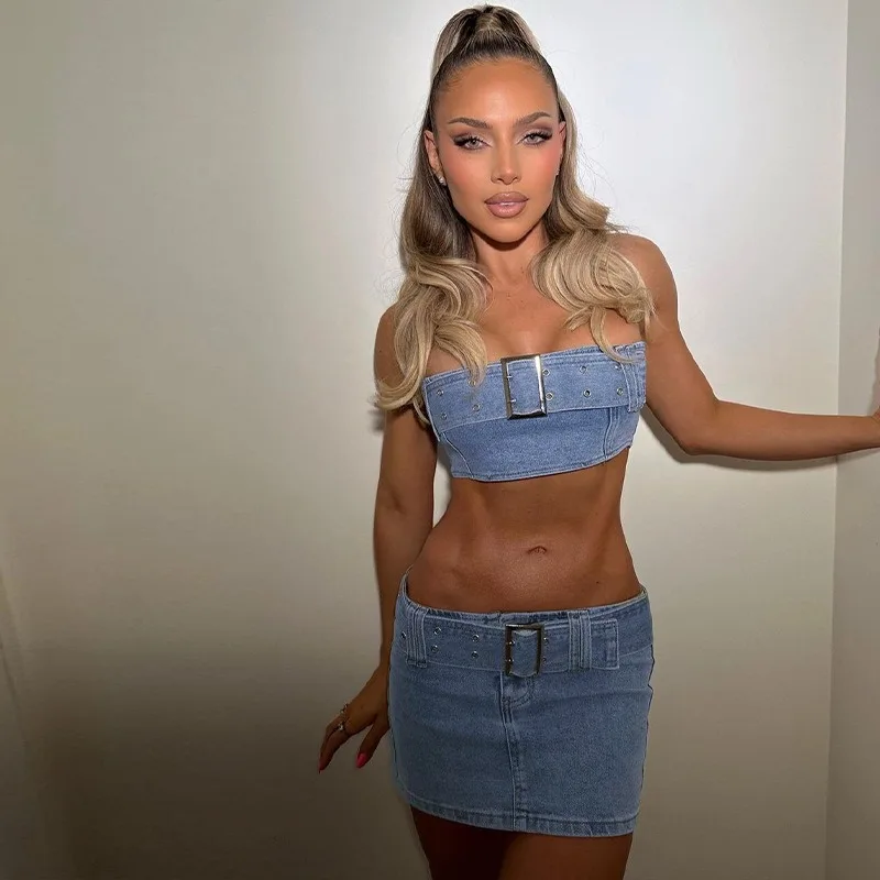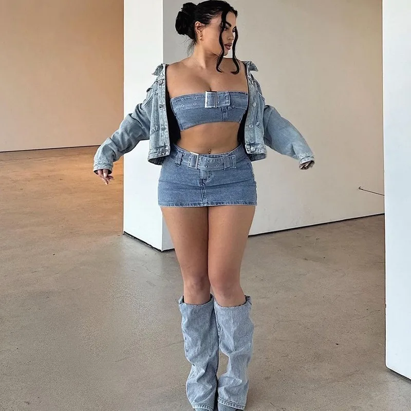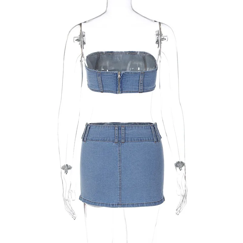 ADVBRIDGE 2 Piece Set Denim Skirt Sets Women Outfit Bodycon Sleeveless Crop Tops Ladies Sexy Slim Mini Dress Suit Streetwear for Woman