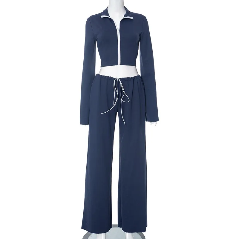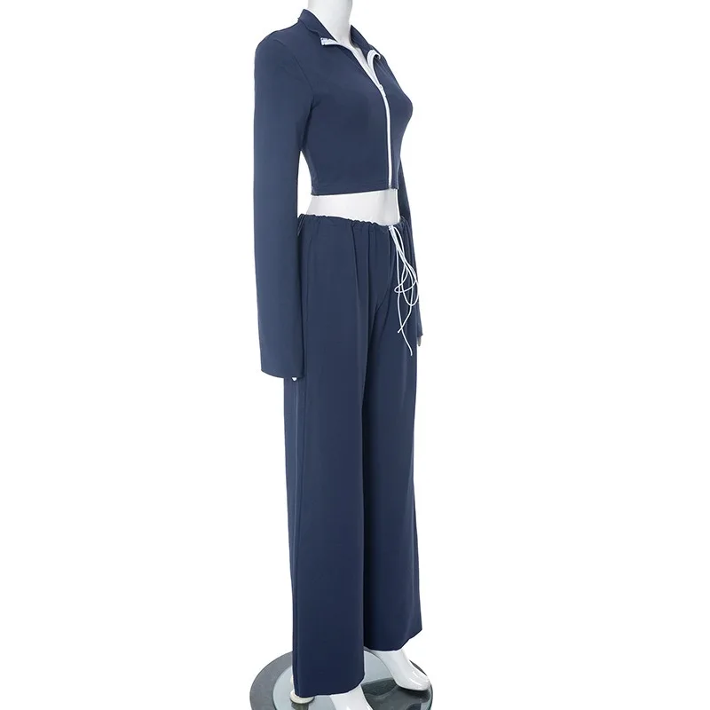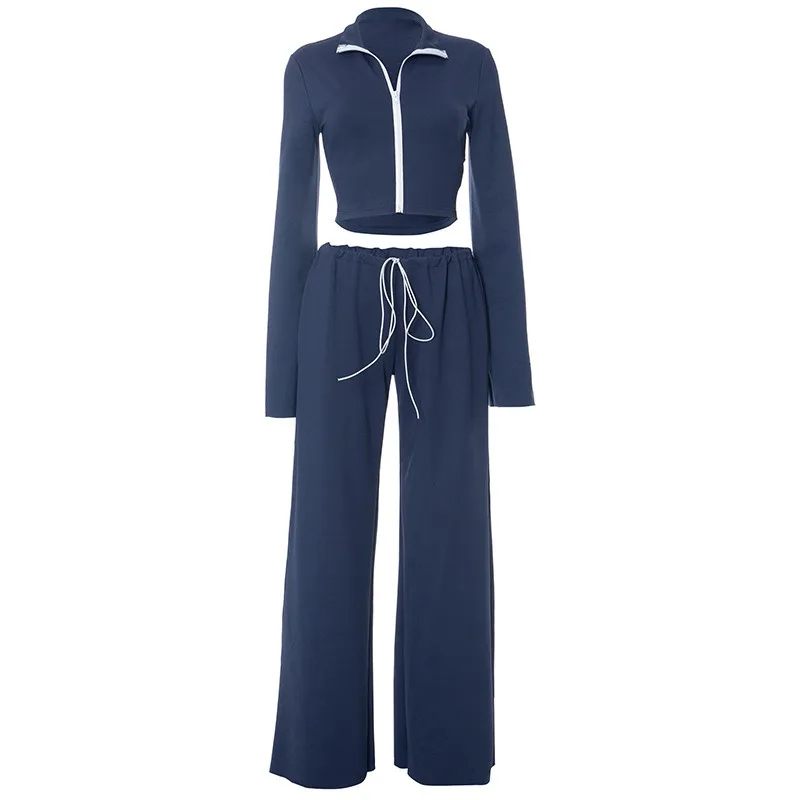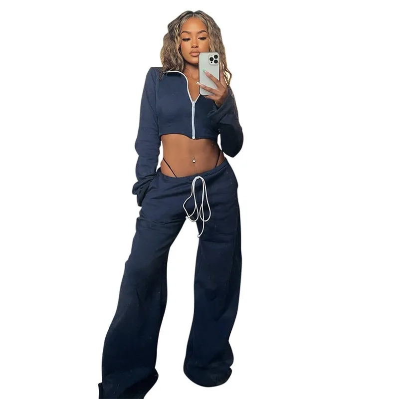 ADVBRIDGE 2 Pieces Set Long Sleeve Zipper Hoodies Crop Top And Loose Pants Set Women Fashion Sporty Night Clubwear Autumn Winter Outfits