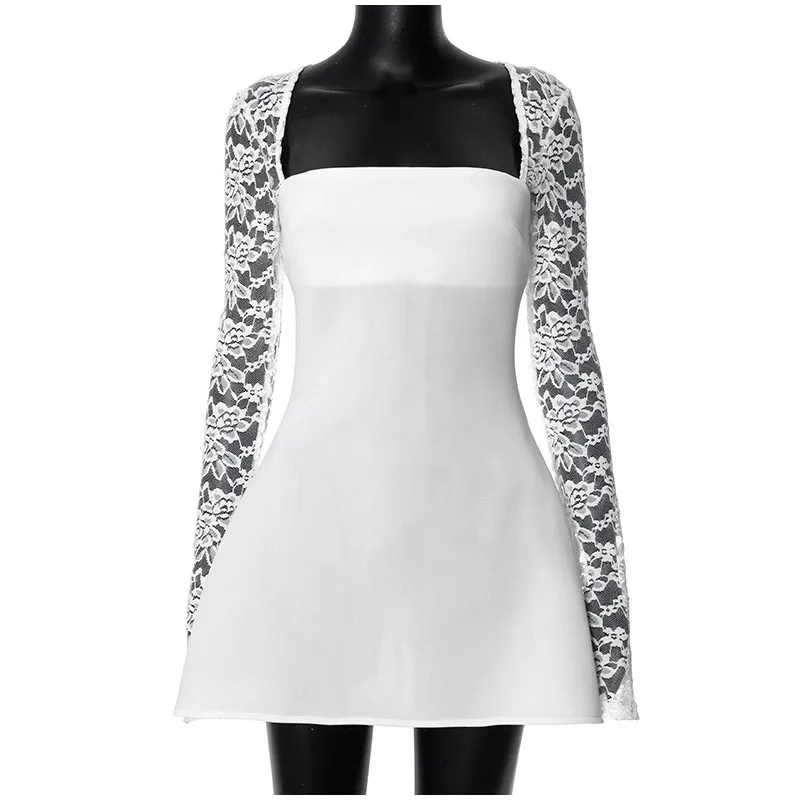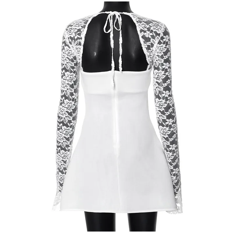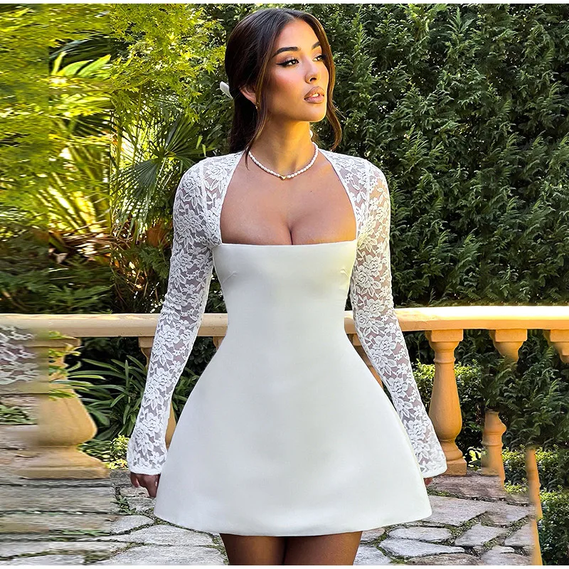 Advbridge 2024 Elegant Floral Lace Patchwork Women's Mini Dress Chic Square Collar Long Sleeve A-line Dresses Female Trendy Party Robe