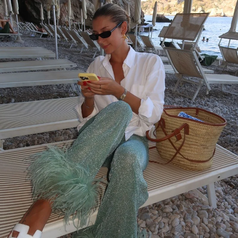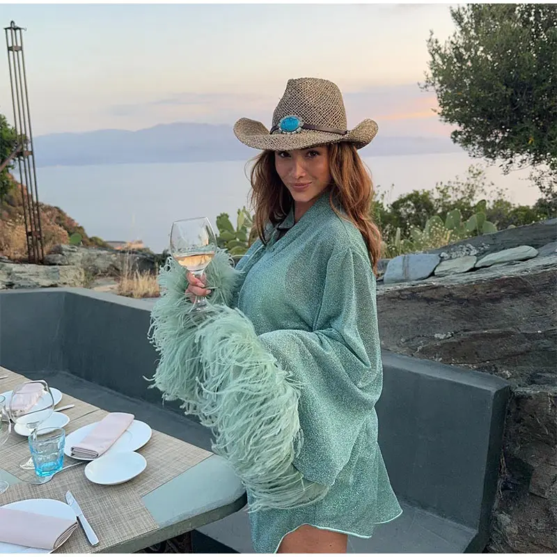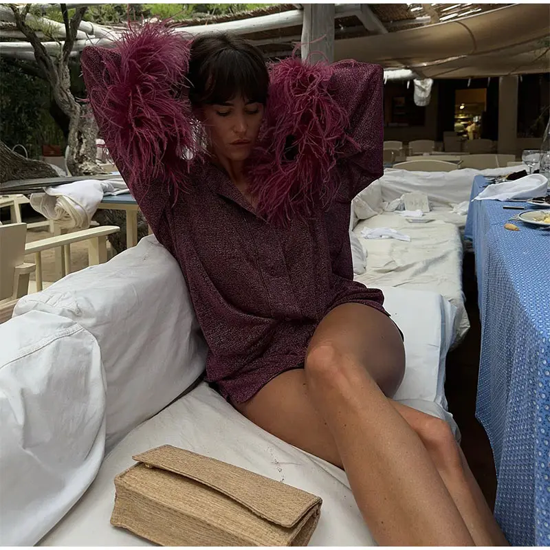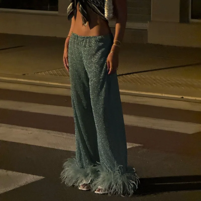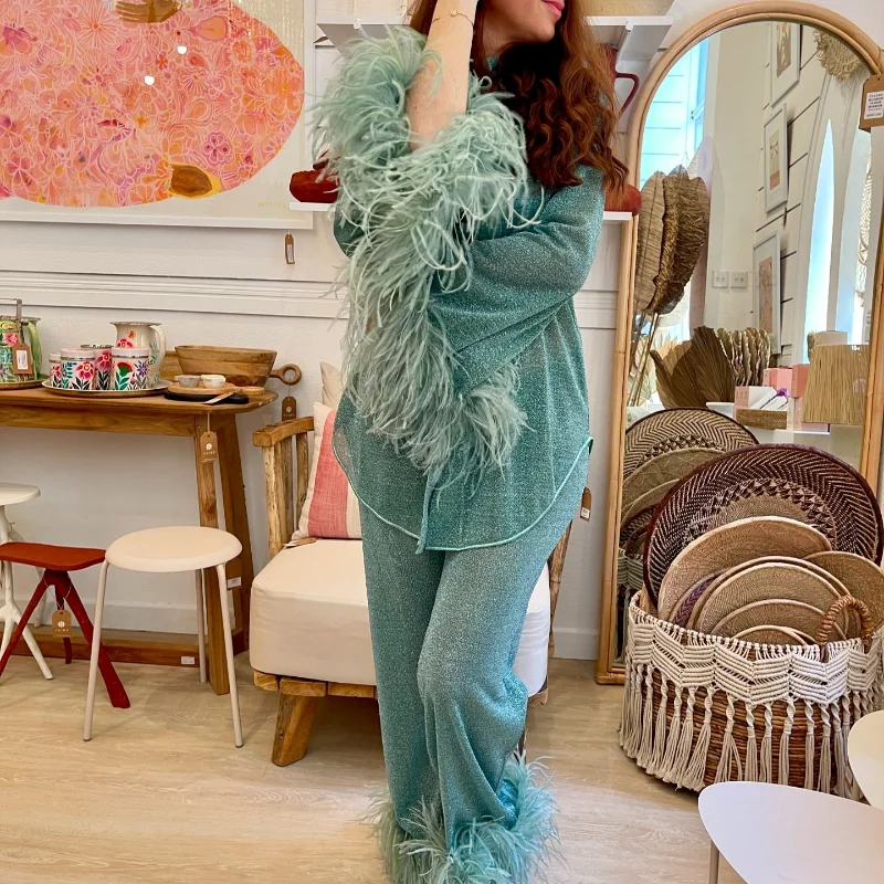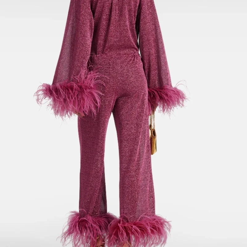 Advbridge 2024 New Chic Shiny Spliced Feather Cuffs Loose Shirt Women Fashion Stand Collar Single-breasted Blouses Female Vacation Tops