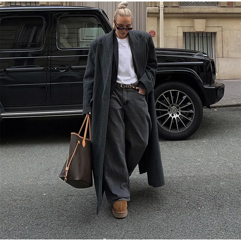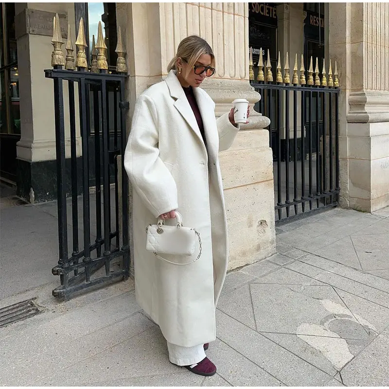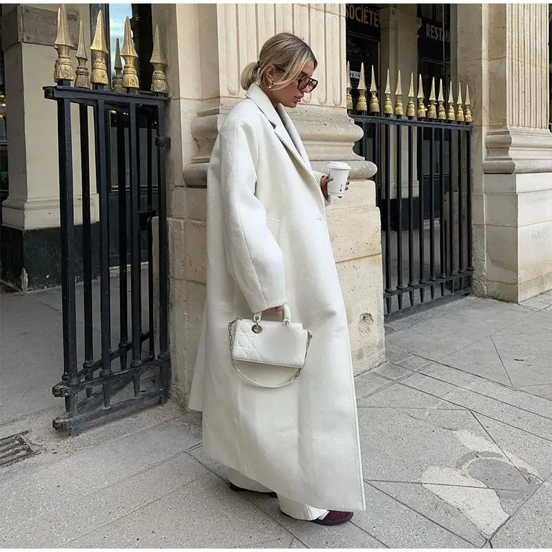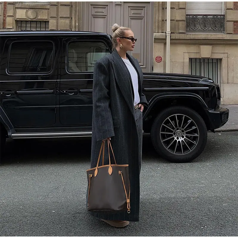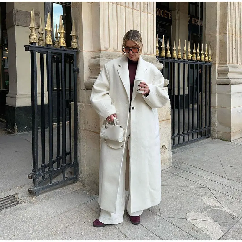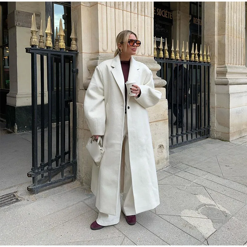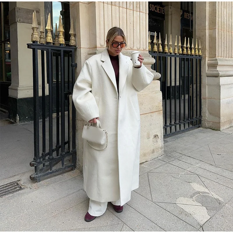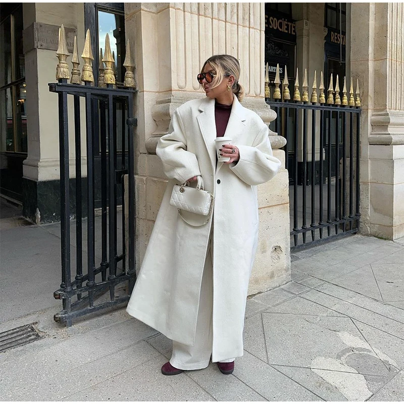 Advbridge 2024 Retro Gray Women's Striped Woolen Long Coats Fashion Cropped Lapel Pockets Overcoat Autumn Winter Lady Commute Suit Jackets