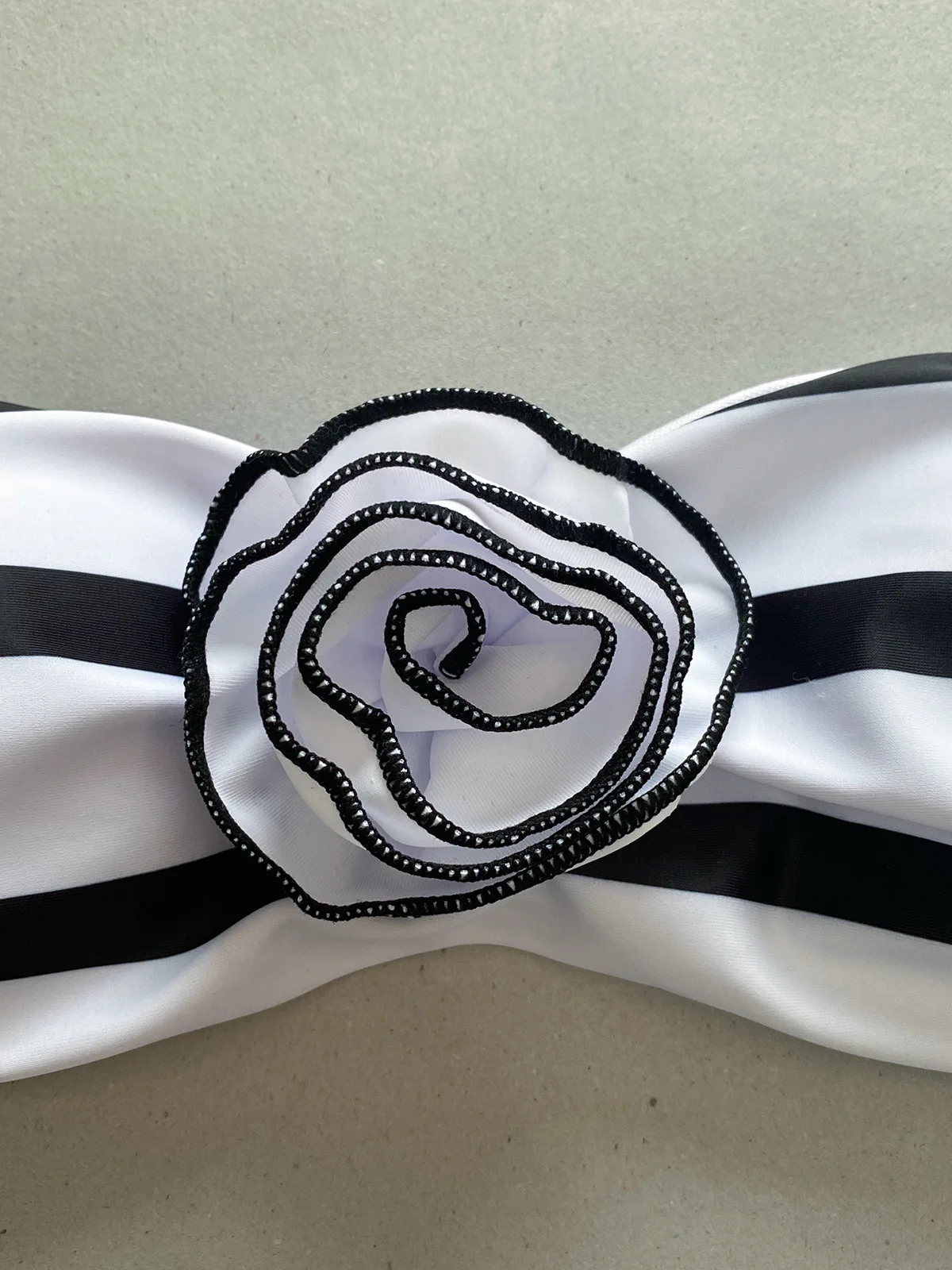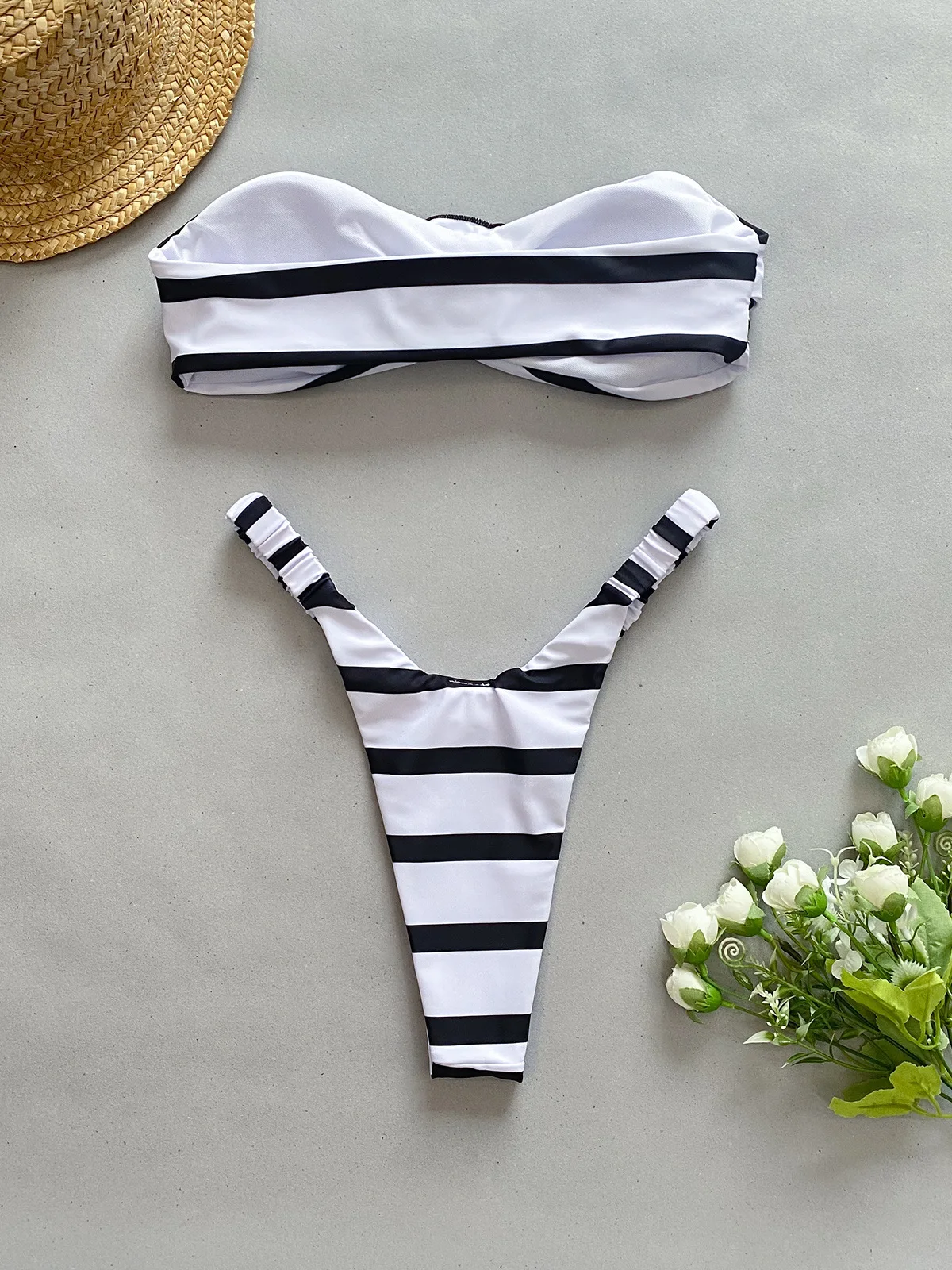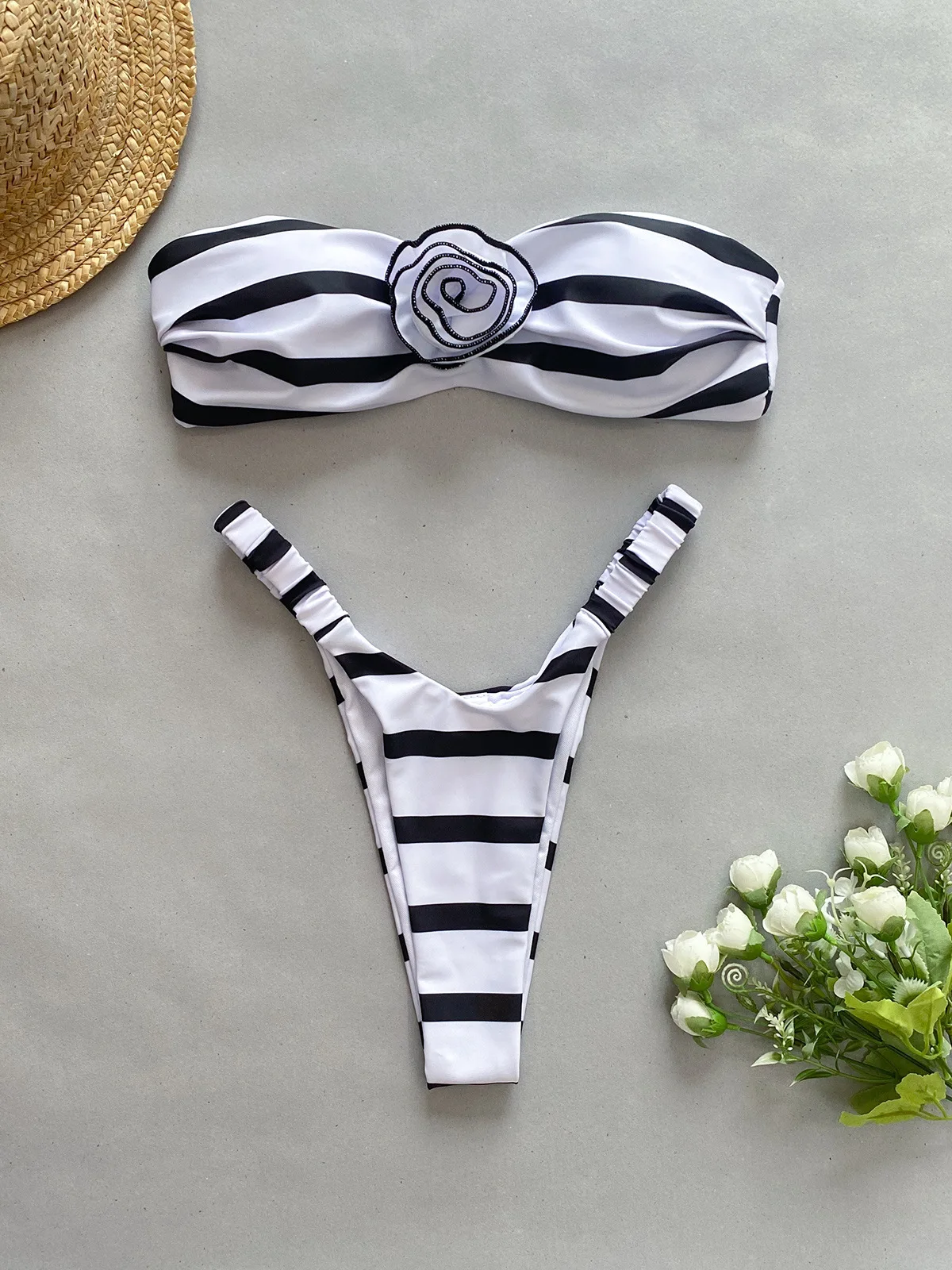 Advbridge 2024 Summer Striped Bikinis Set for Women Sexy Appliques High Waist Swimsuit Swimming Wear Bathing Suits Brazilian Beachwear
