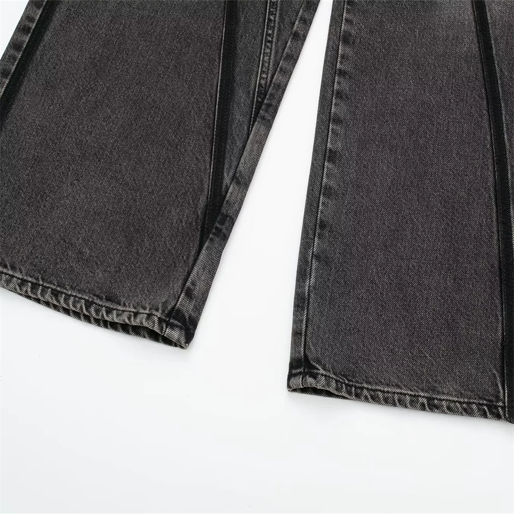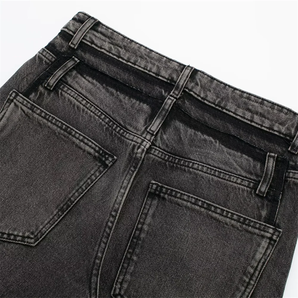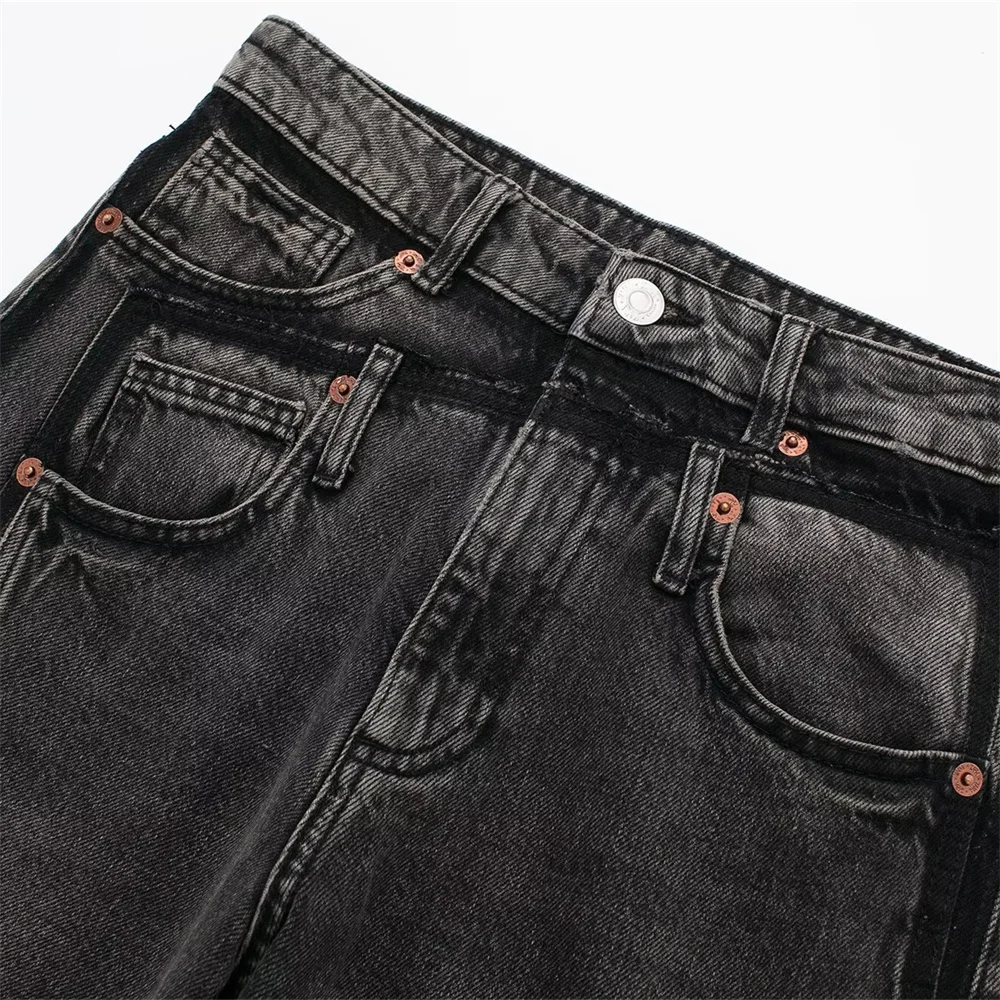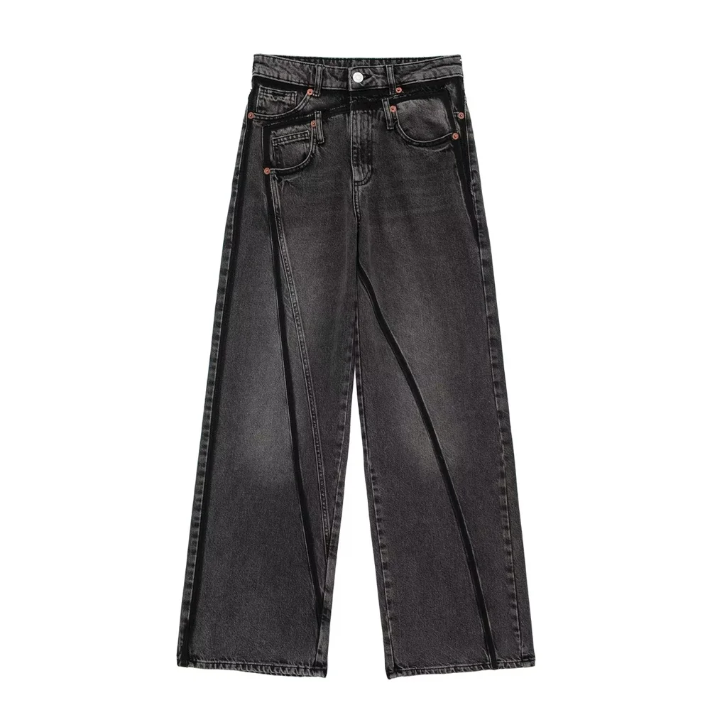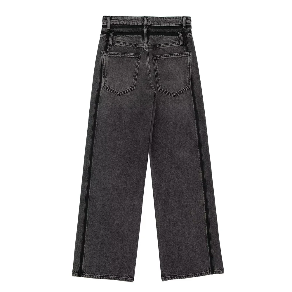 Advbridge 2024 Women's Fashion New Double layered Waist Mid Waist Wide Leg Jeans