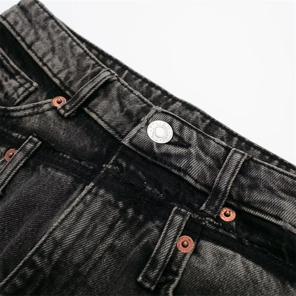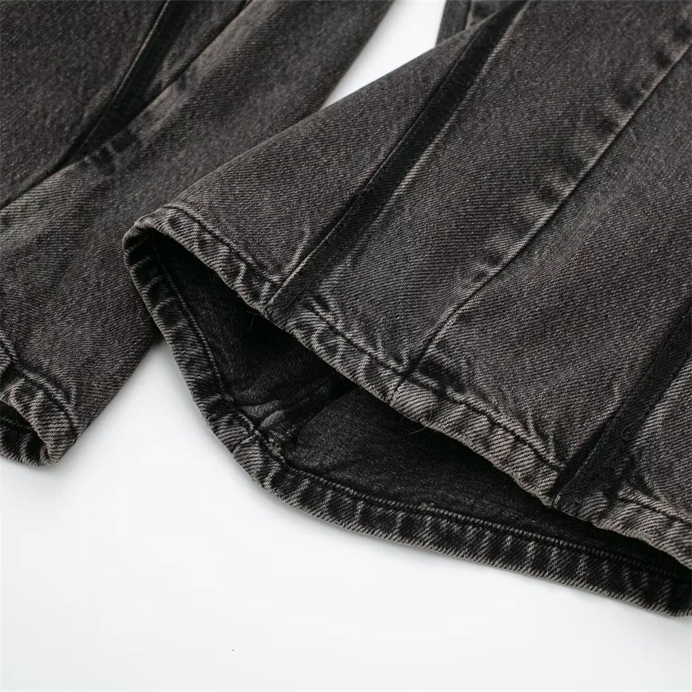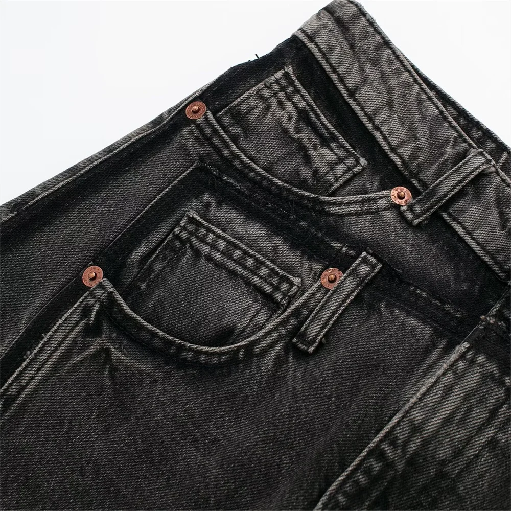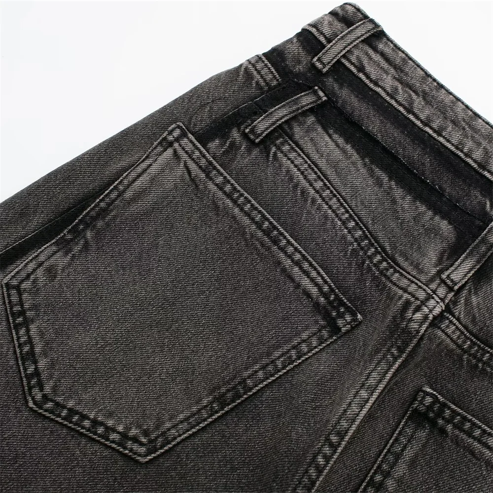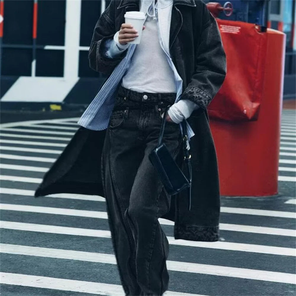 Advbridge 2024 Women's Fashion New Double layered Waist Mid Waist Wide Leg Jeans
