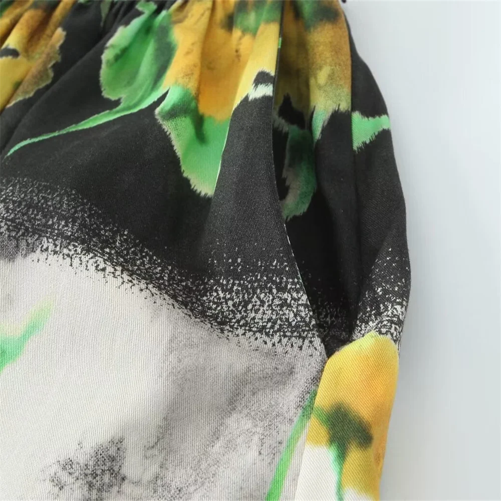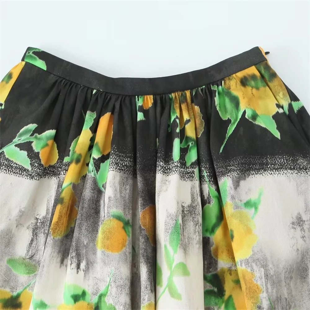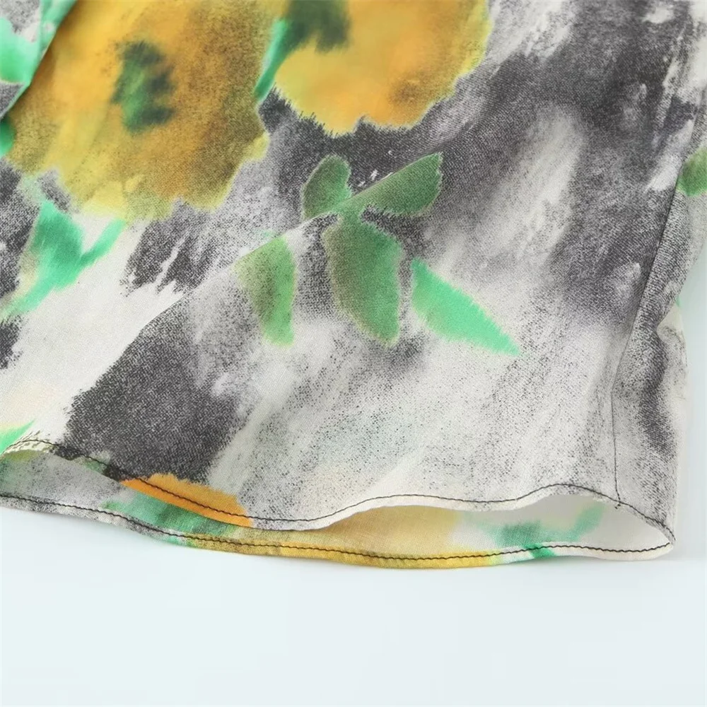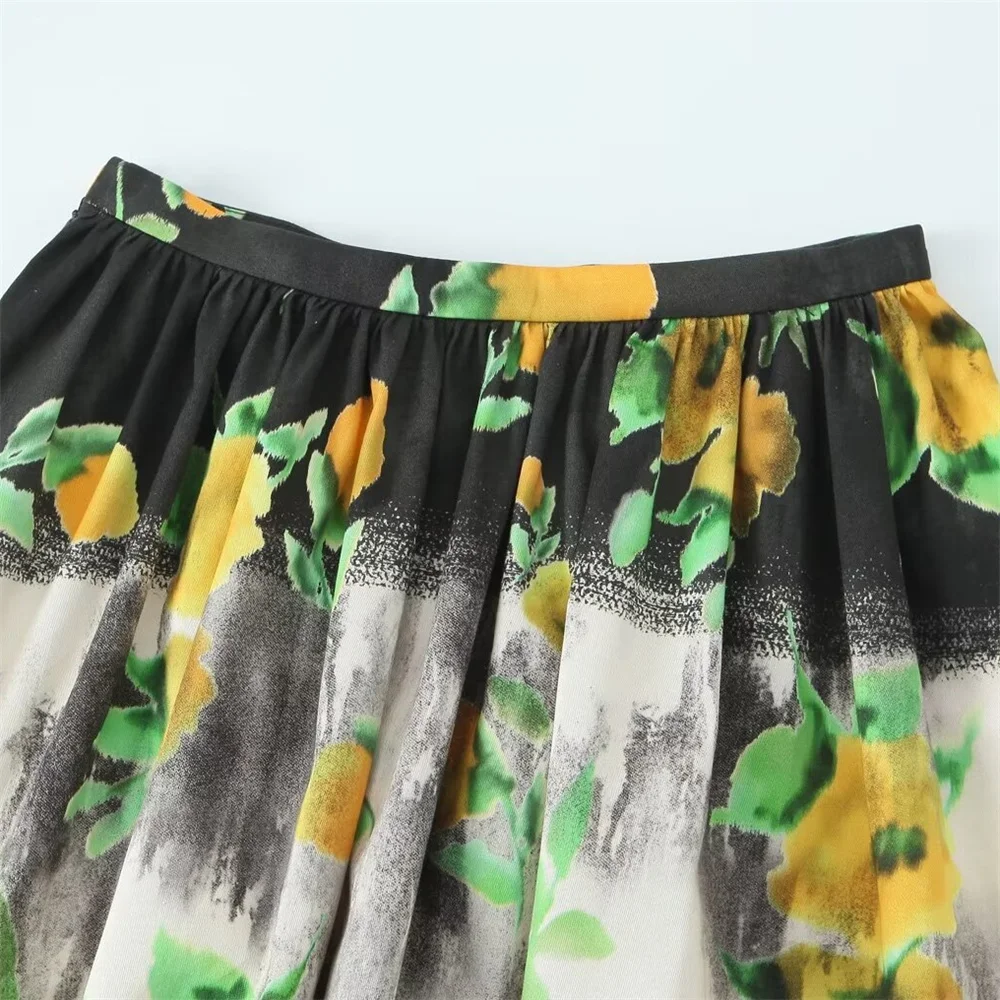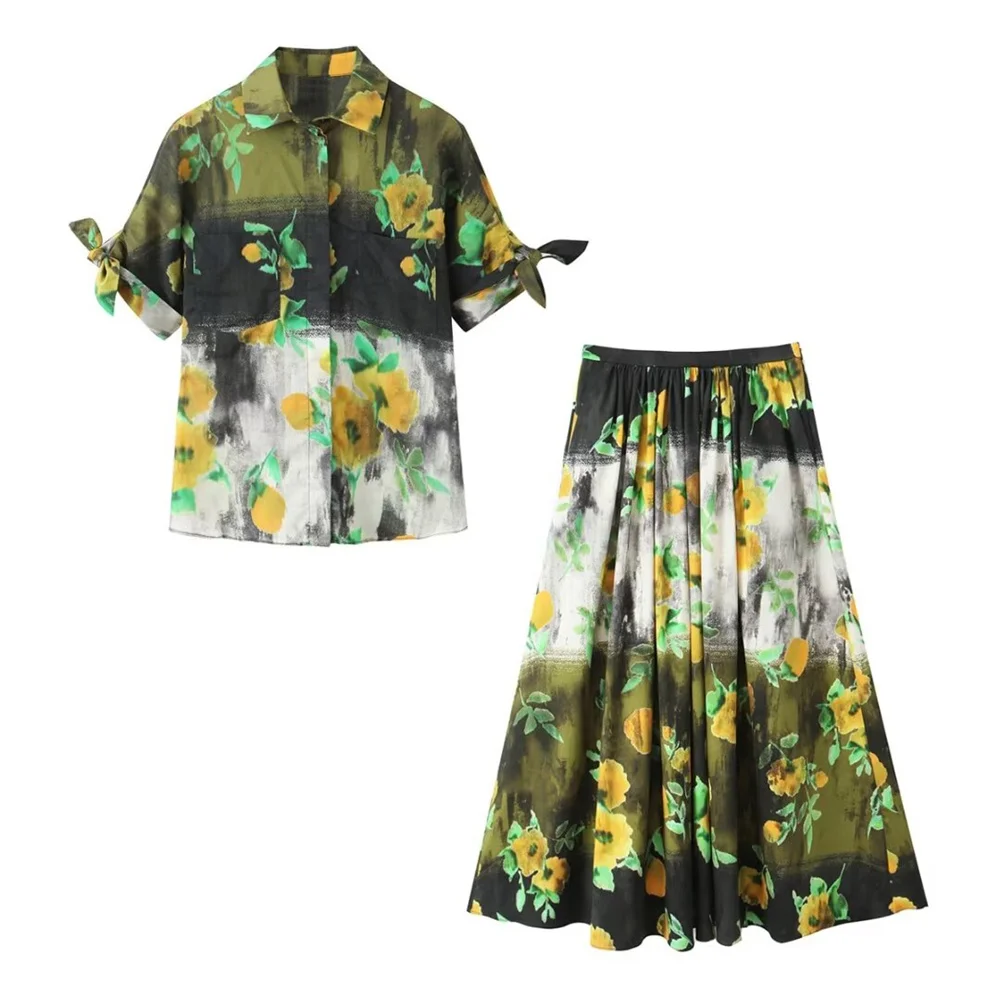 Advbridge 2024 Women's Fashion New Printed Shirt&Folded Skirt Set