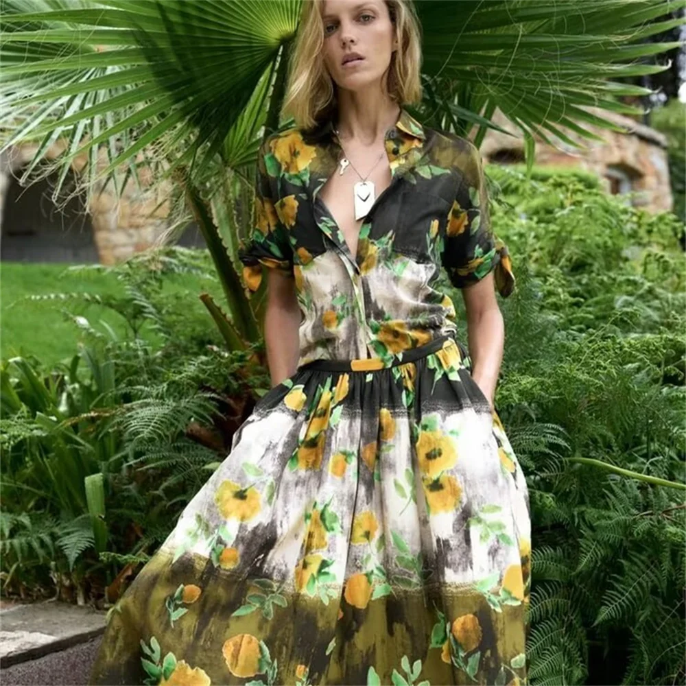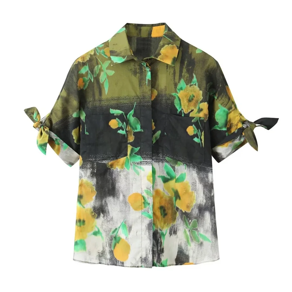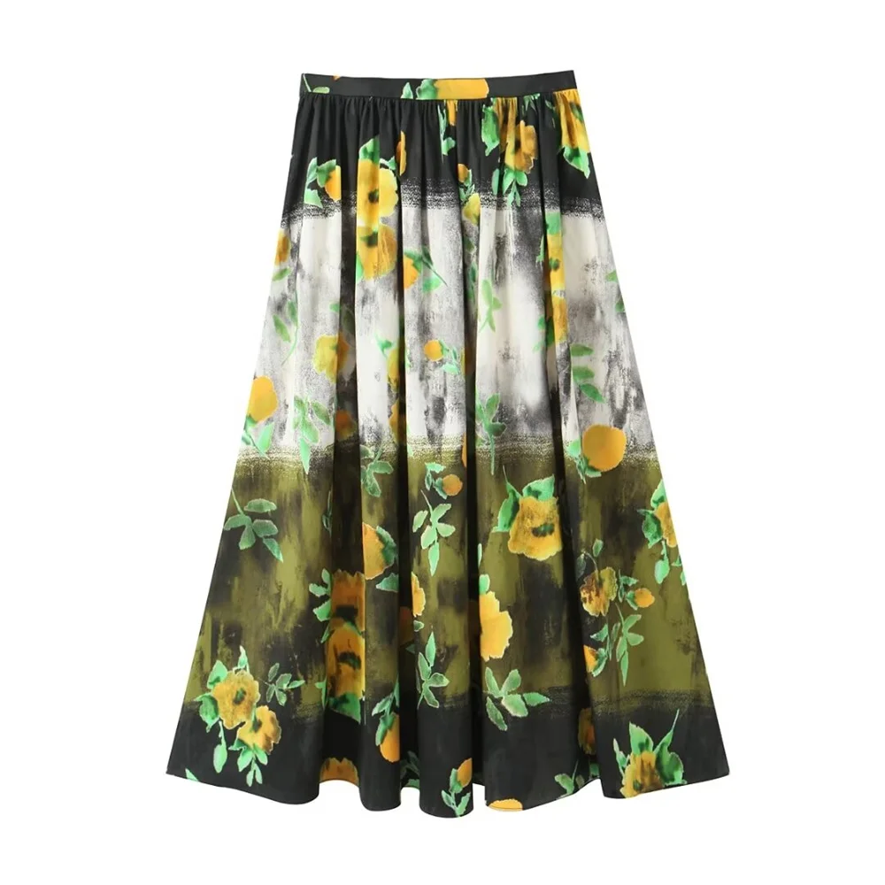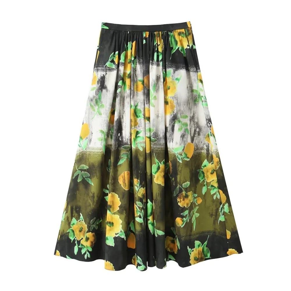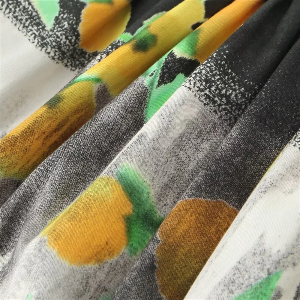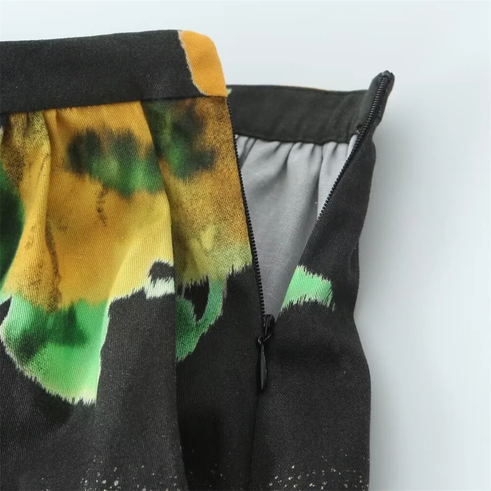 Advbridge 2024 Women's Fashion New Printed Shirt&Folded Skirt Set