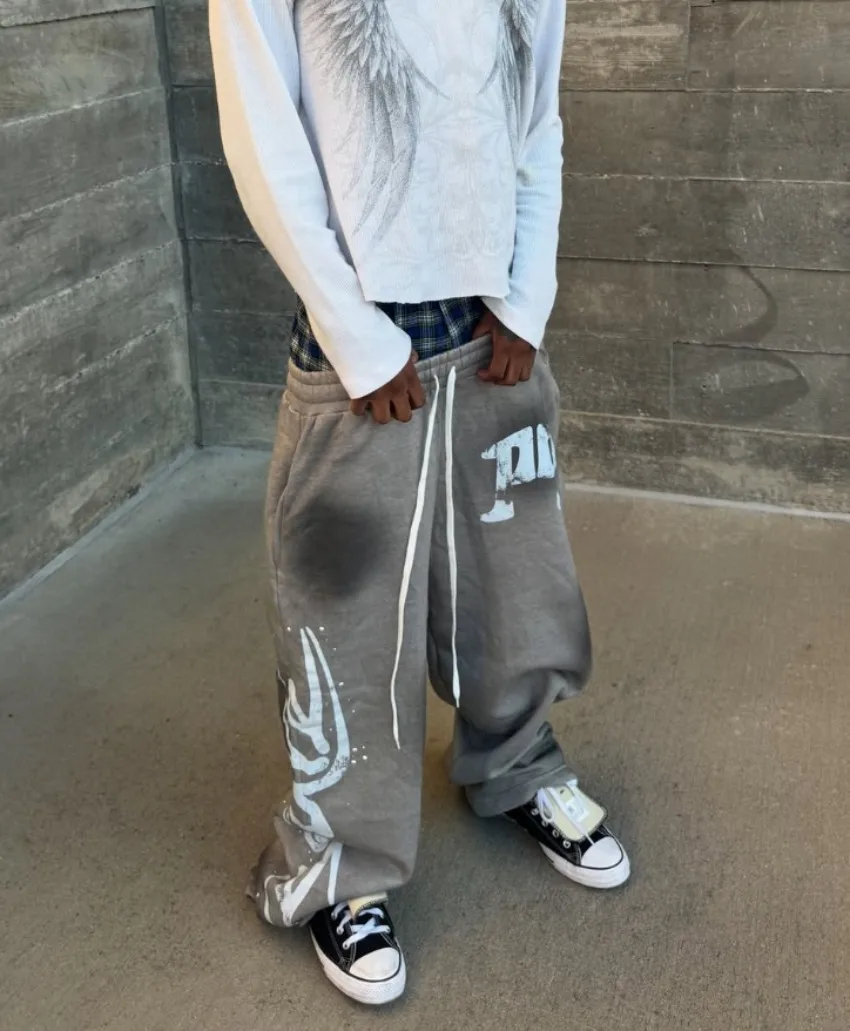Advbridge 2025 American Street Hip-hop Pants Y2K Letter Printed Drawstring Pants for Men and Women Couples Straight Casual Loose Pants