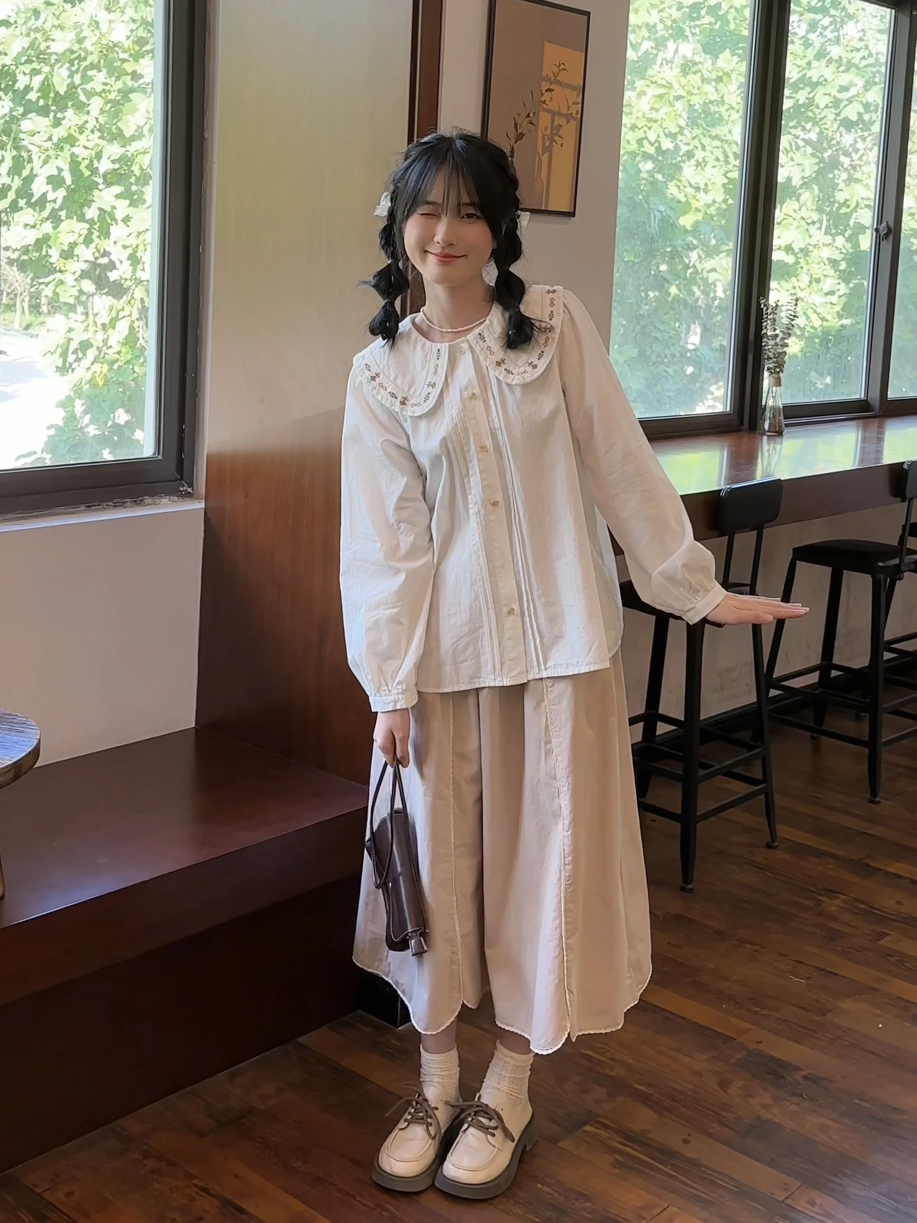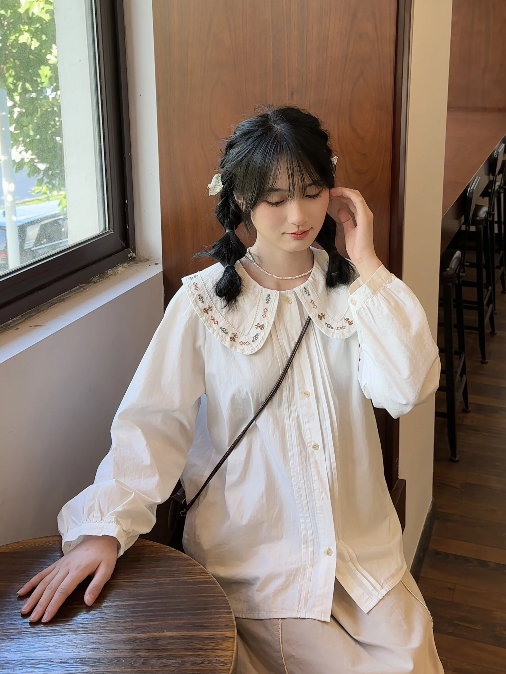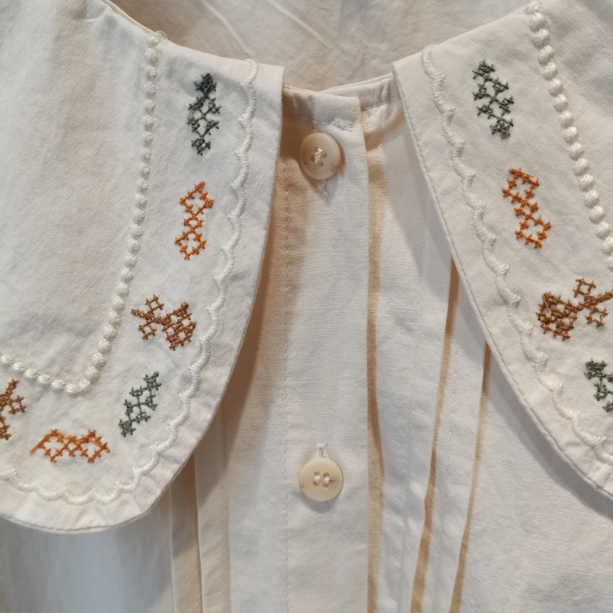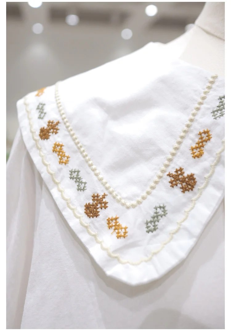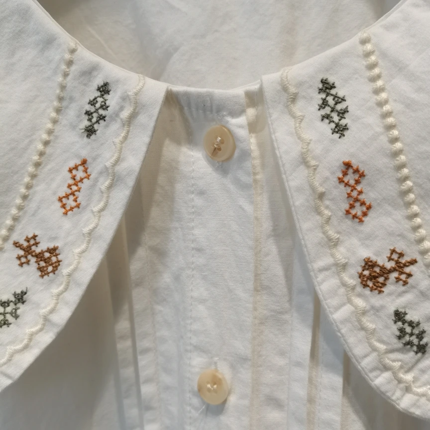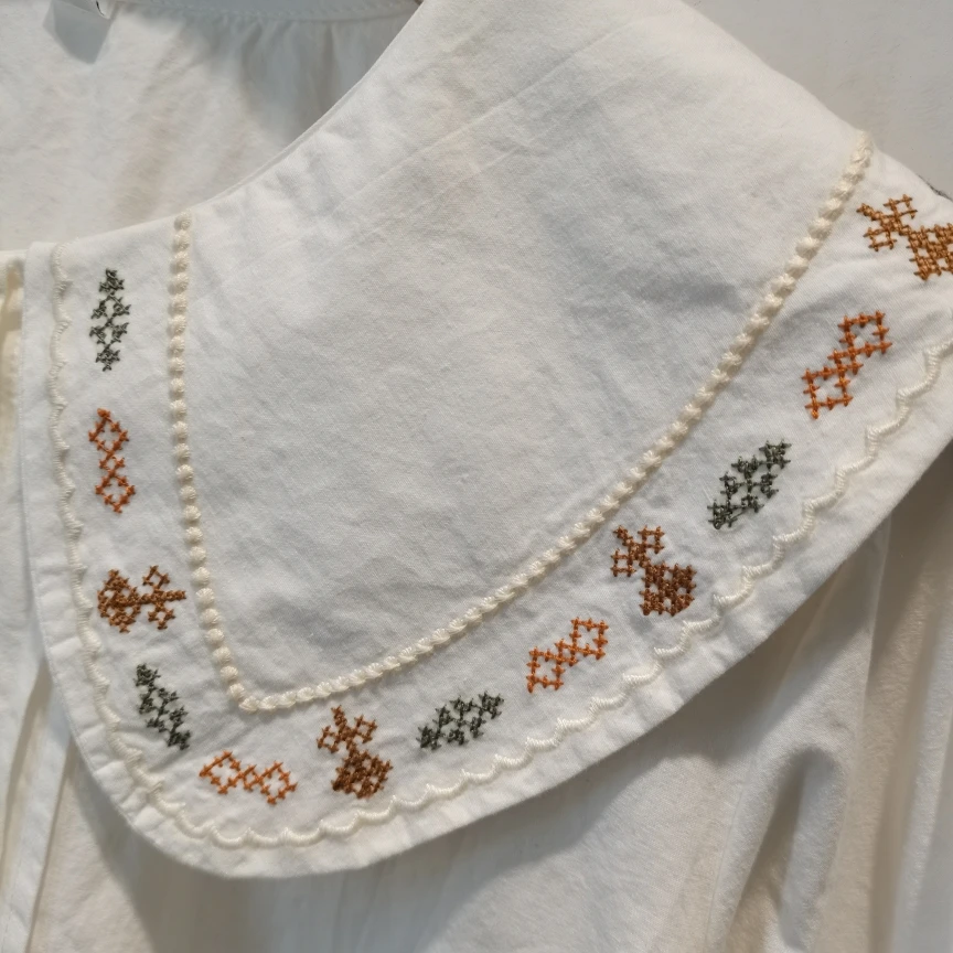 Advbridge 2025 Spring Summer New Long Sleeve Women's Cotton Shirt Loose Sweet Big Collar Flower Embroidered Basic White Casual Preppy Top
