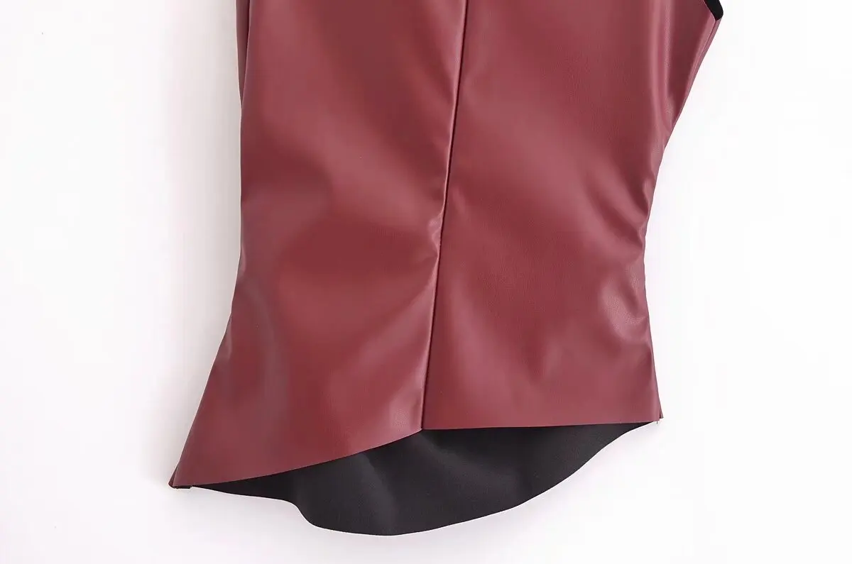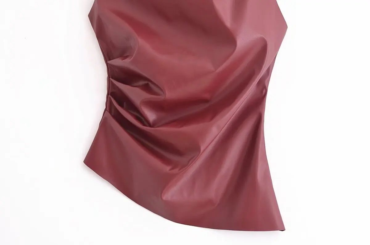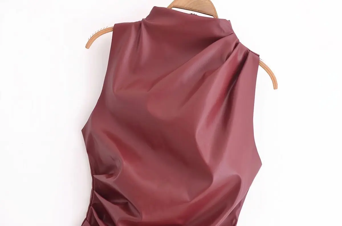 Advbridge 2025 Women's Stacked Collar Waisted Imitation Leather Sleeveless Top Y2k Clothes Woman Clothing Store Stitch Tops