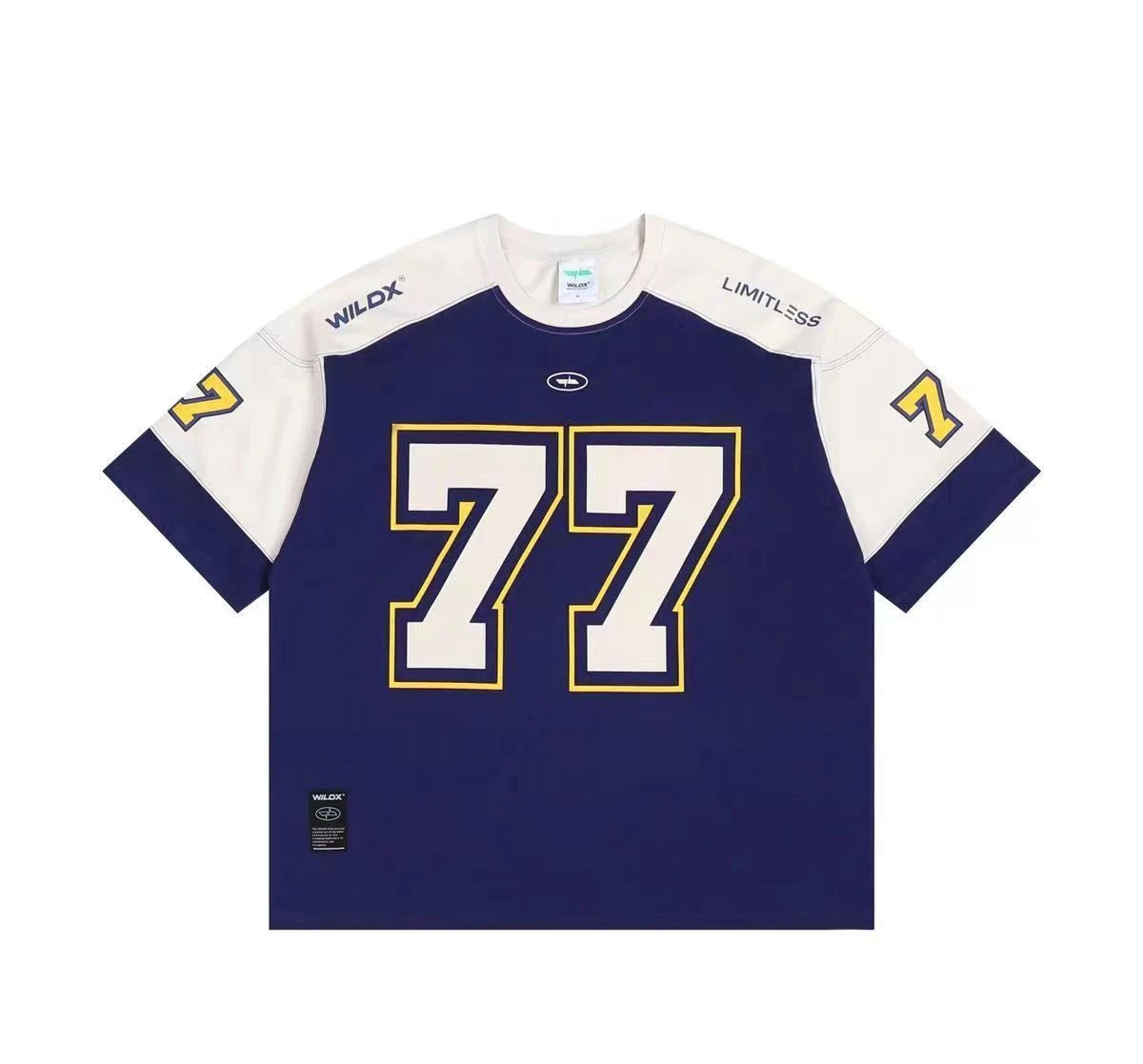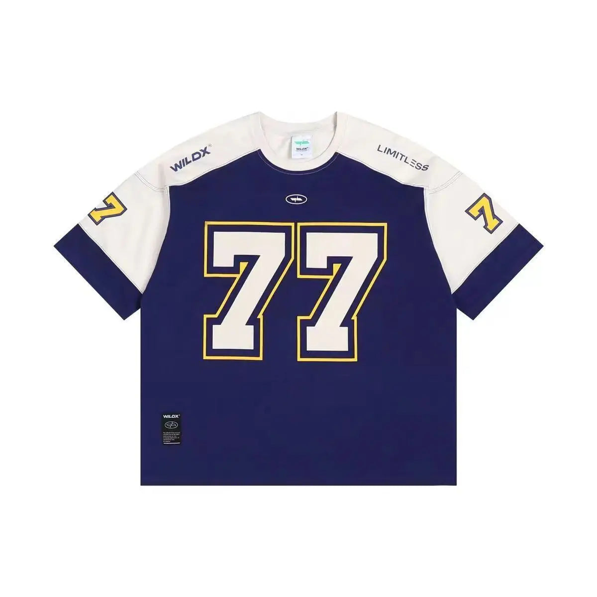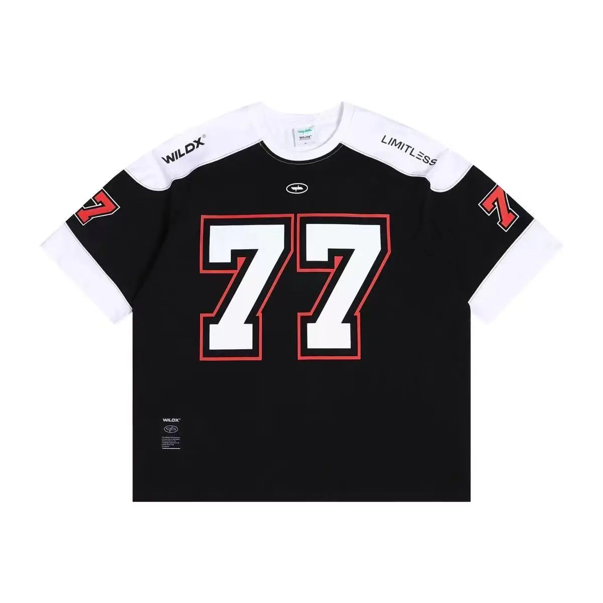Advbridge American Casual Sports T Shirt 77 Printed Ice Hockey Round Neck Short Sleeved Hip Hop Campus Sports T Shirt for Men and Women