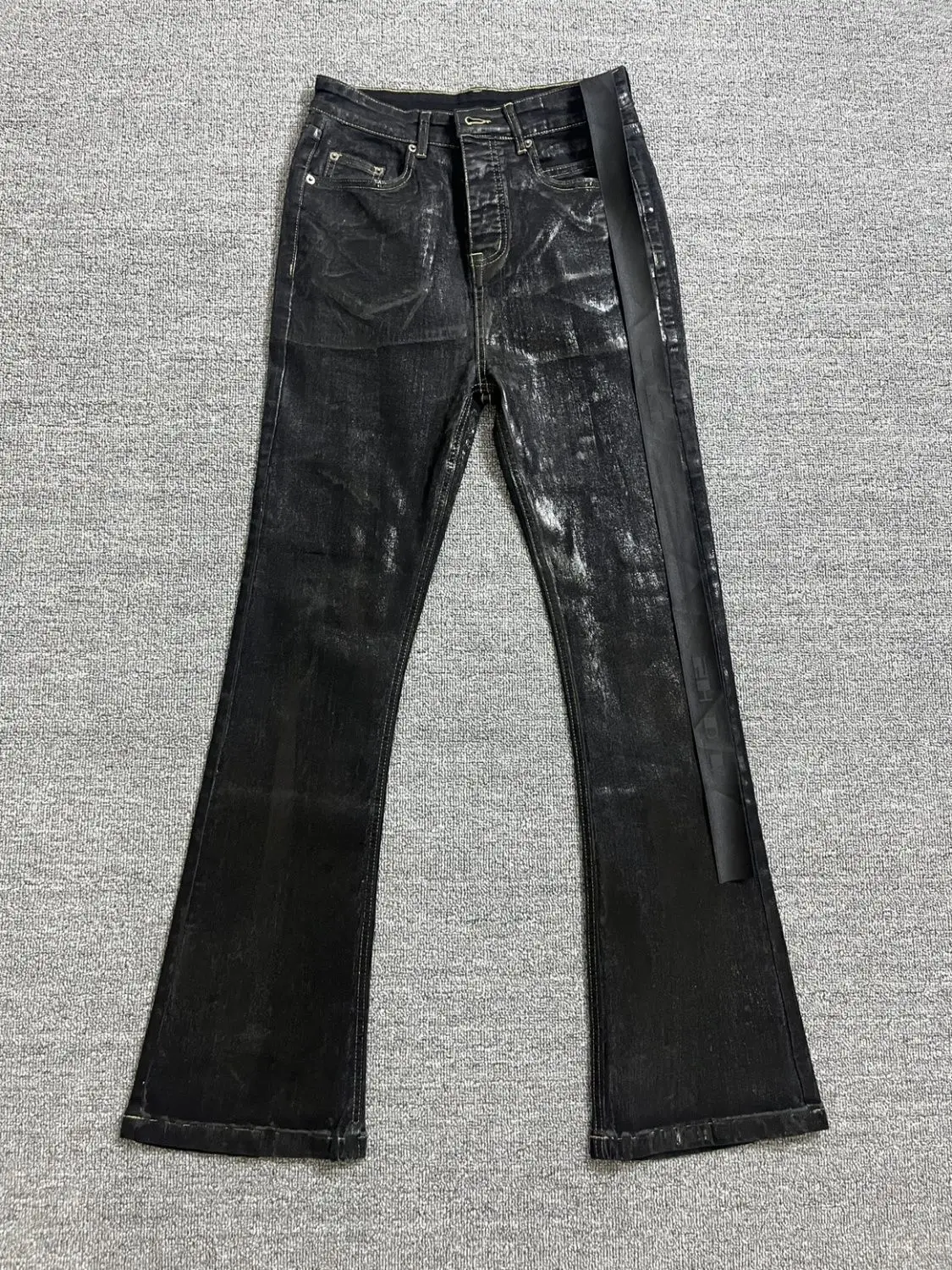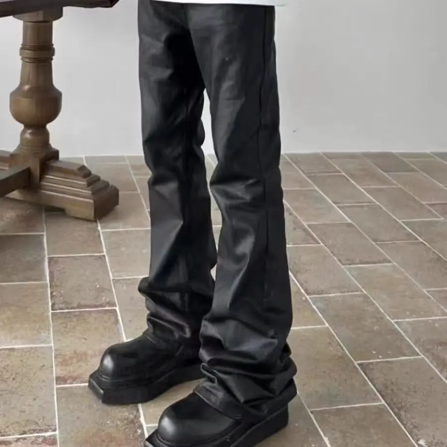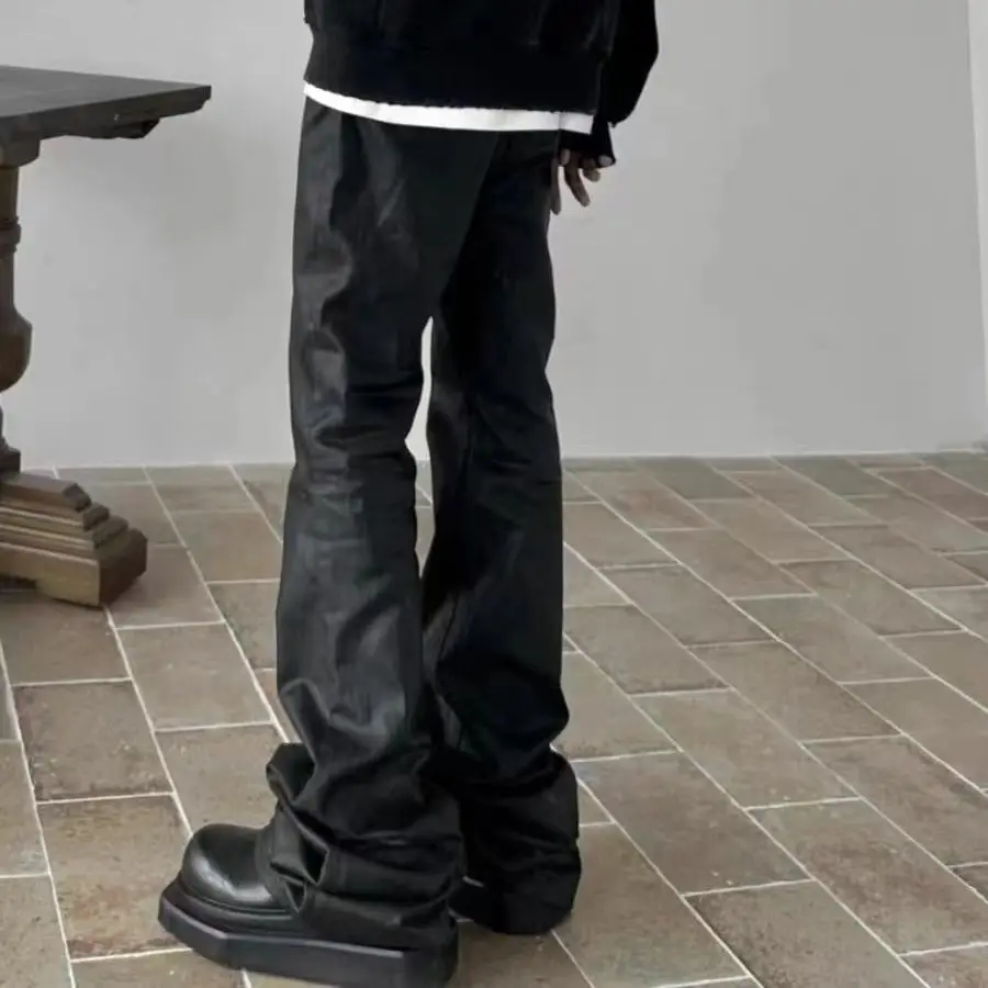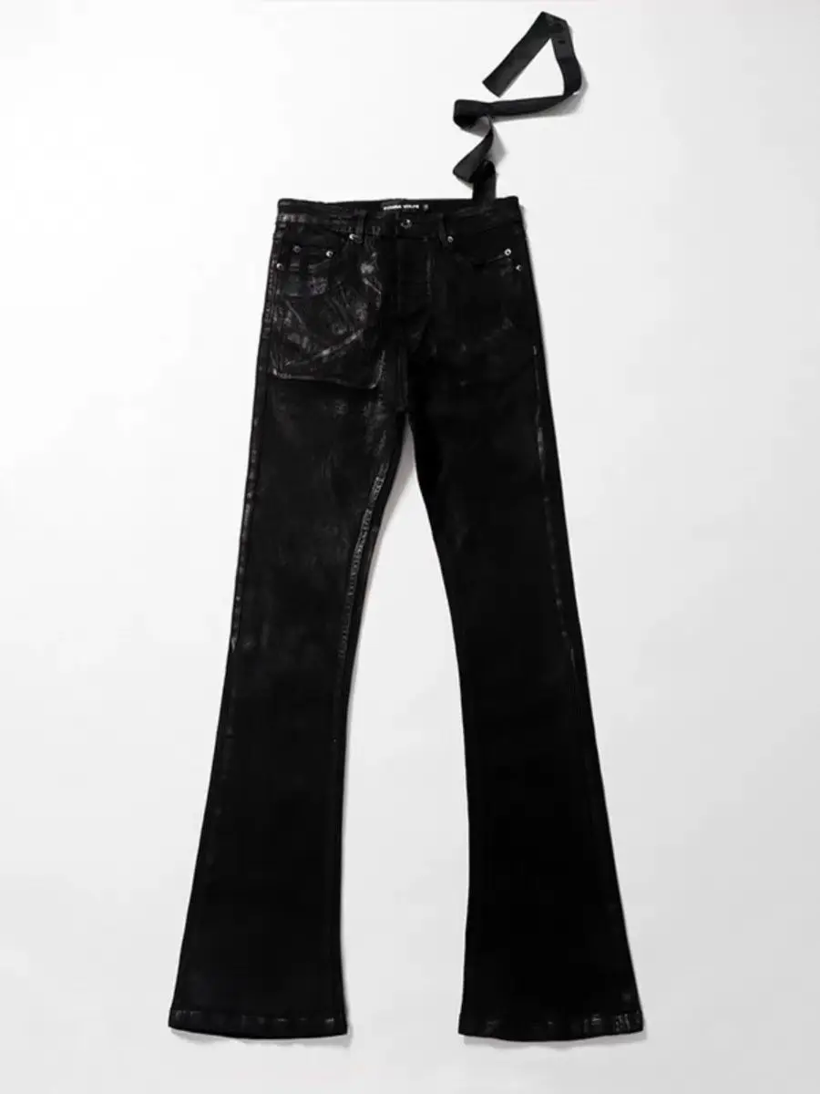 Advbridge American high street slim fit high elastic women micro-flared trousers for men and women dark trend brand waxed style trousers