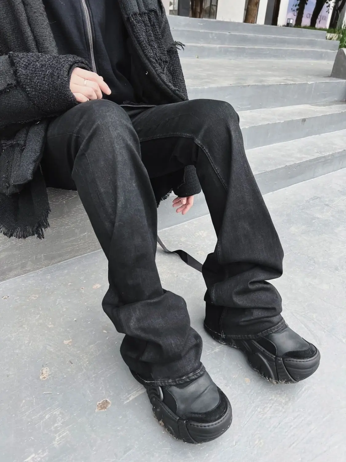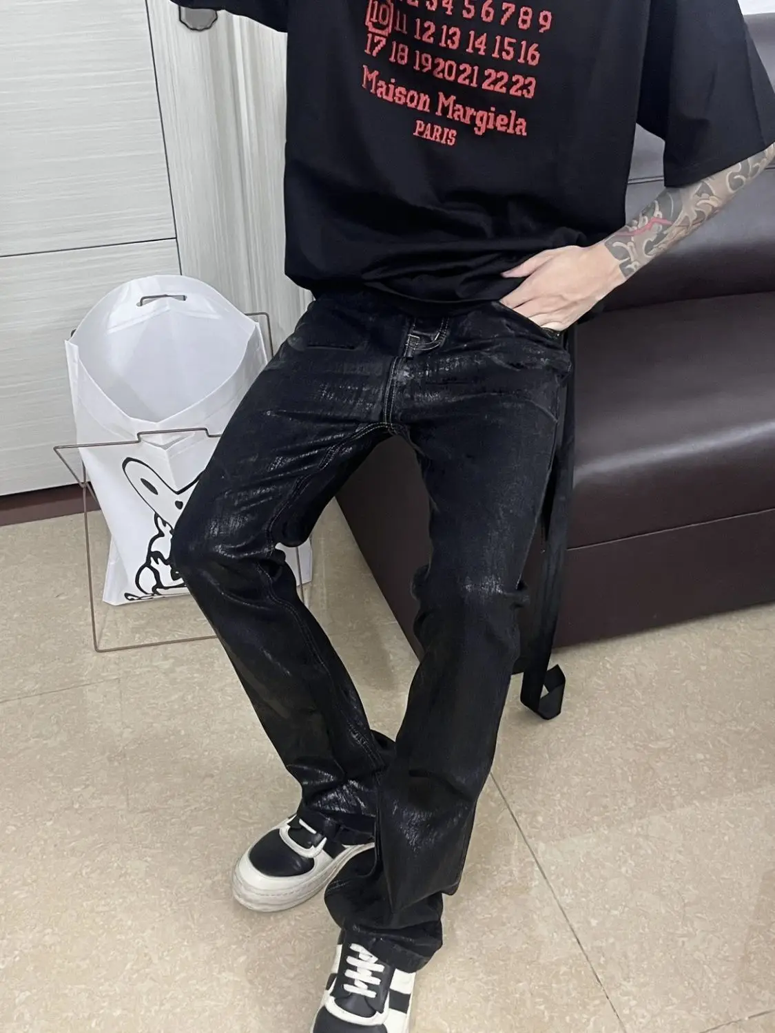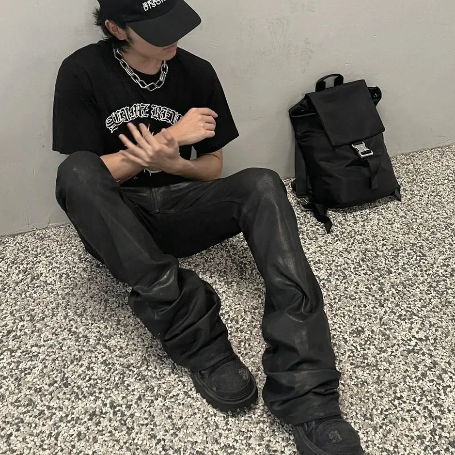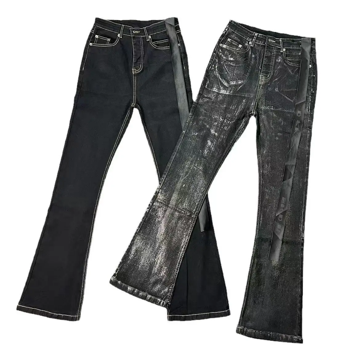 Advbridge American high street slim fit high elastic women micro-flared trousers for men and women dark trend brand waxed style trousers