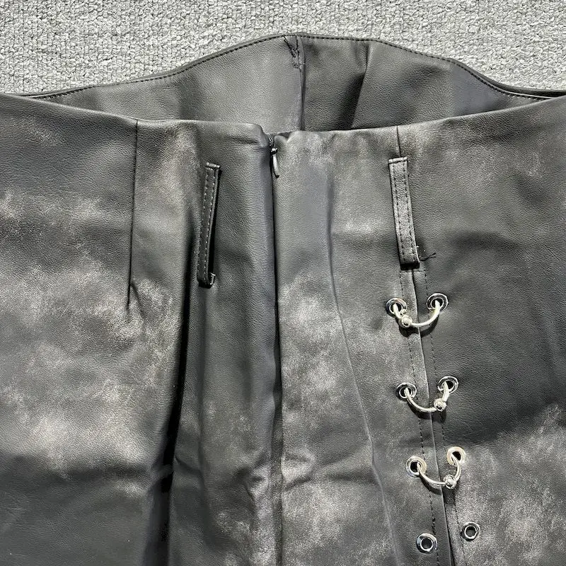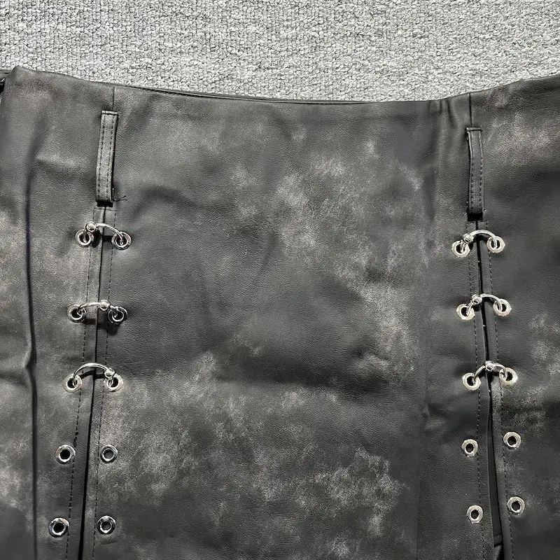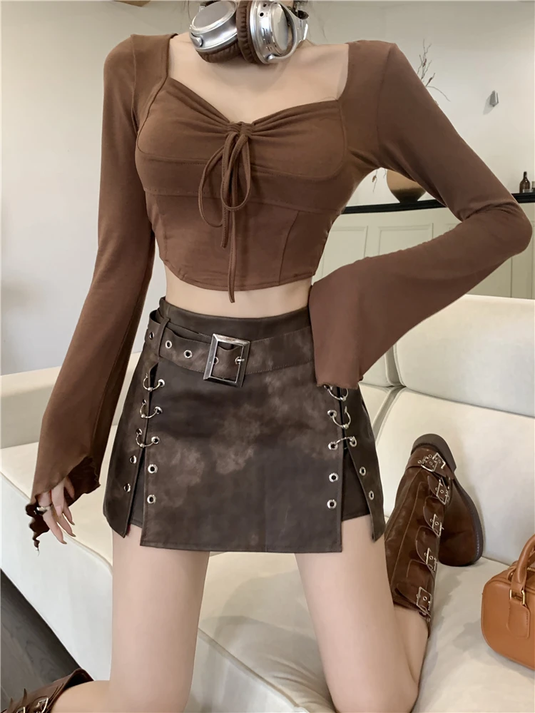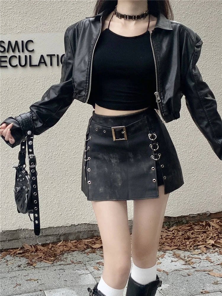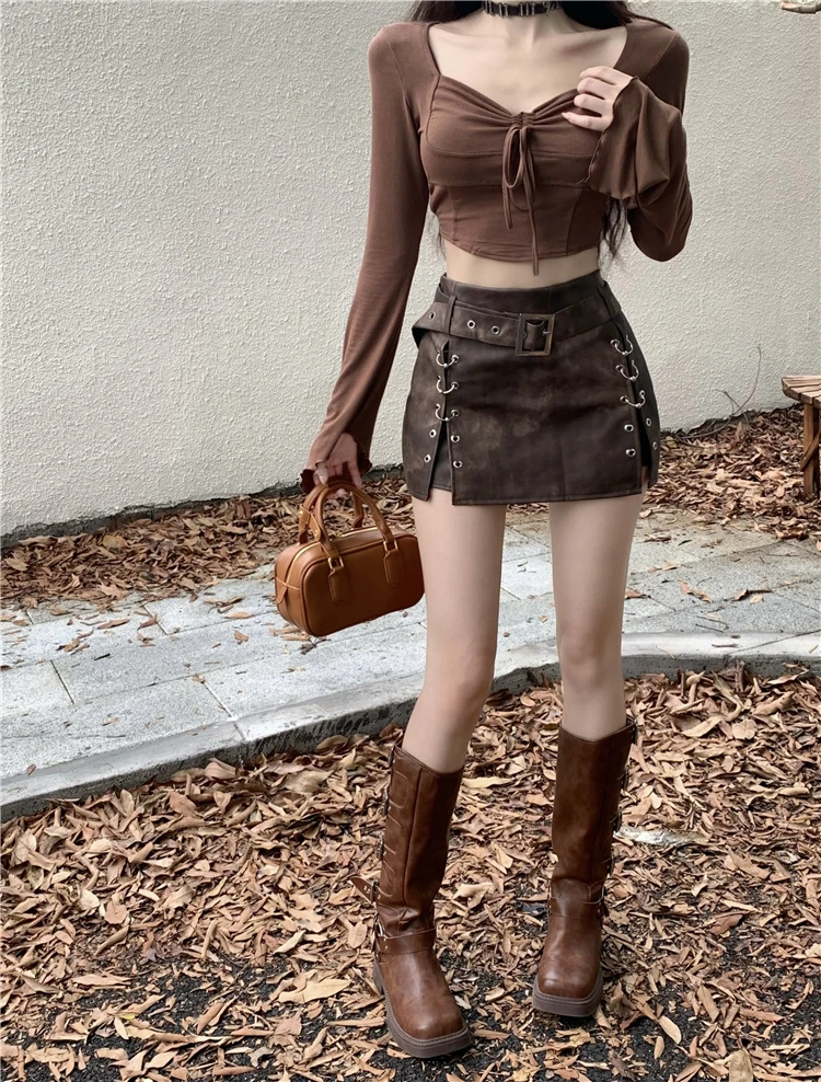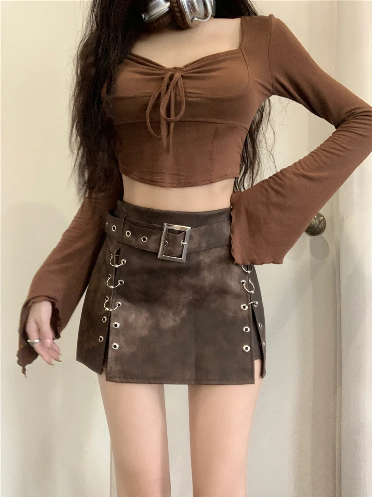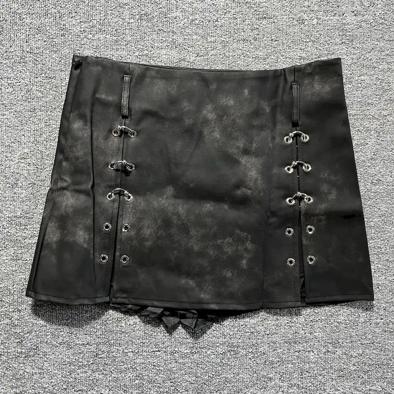 Advbridge - American Retro Hot Girl Skirt Women's Autumn Wrap Hip Leather Skirt Ink Painted Belt A-line Mini Skirt Fashion Female Clothes