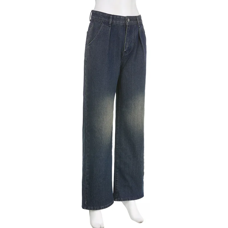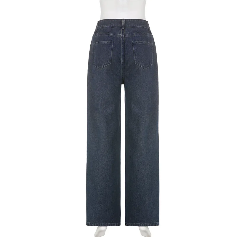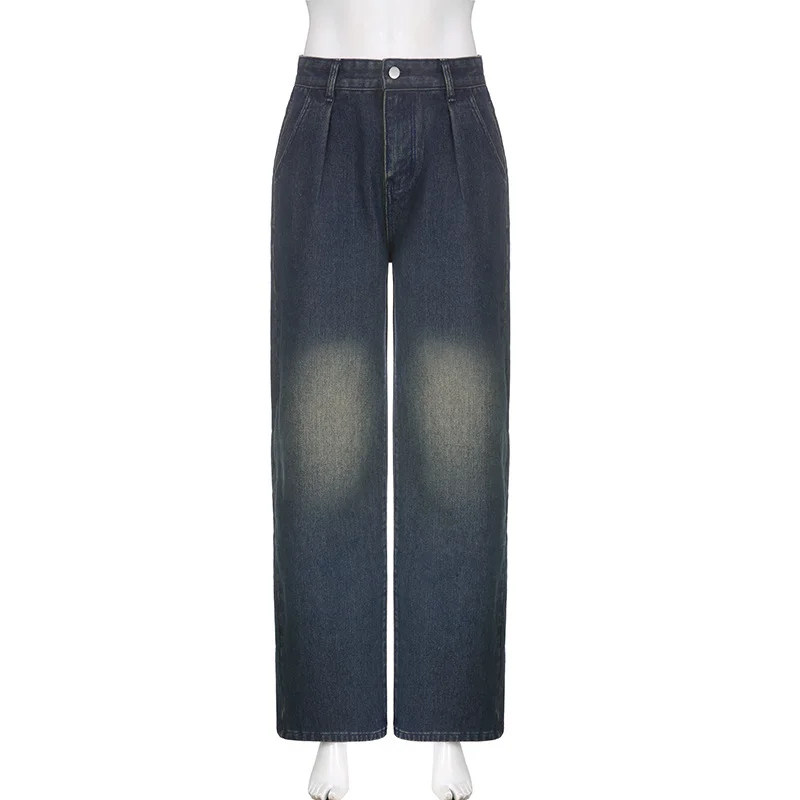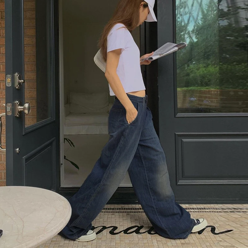 Advbridge - American Vintage Cargo Jeans Women Streetwear Straight Wide Leg Denim Pants Woman Chic Ins Low Waist Baggy Trousers