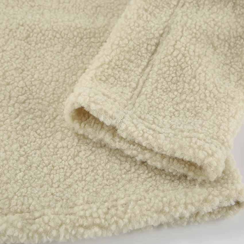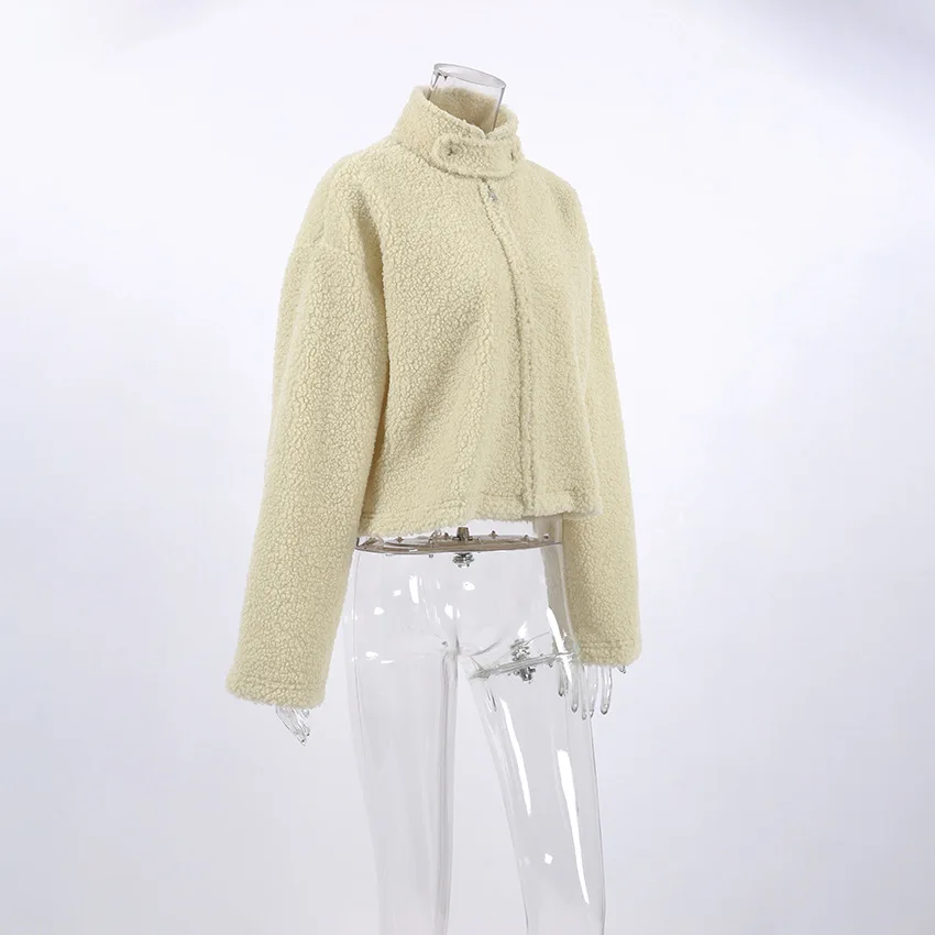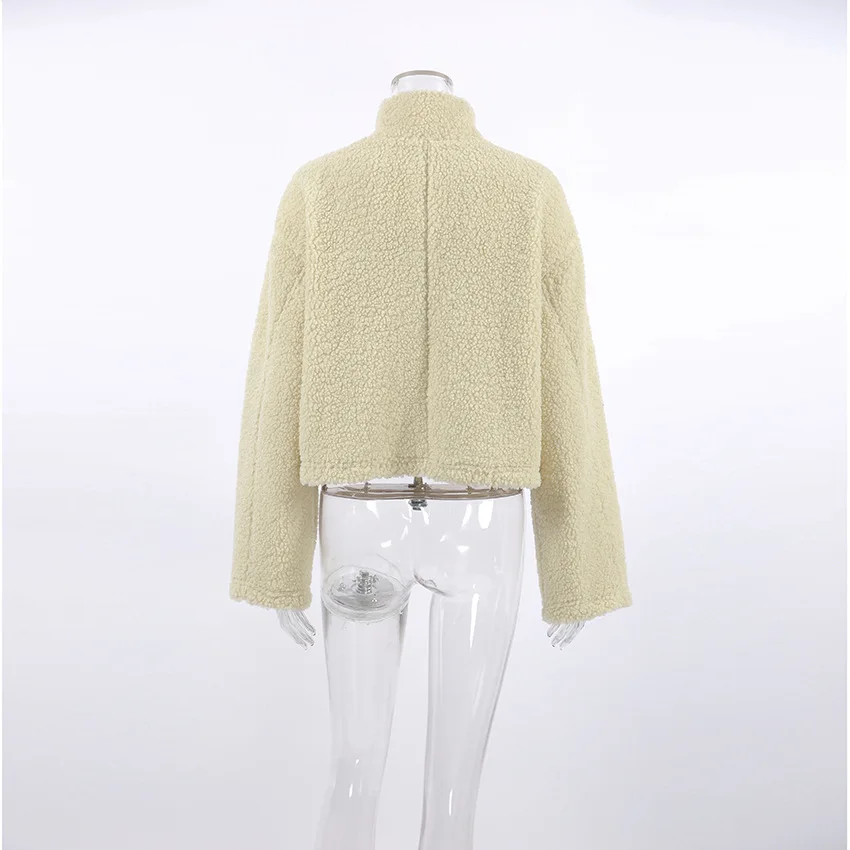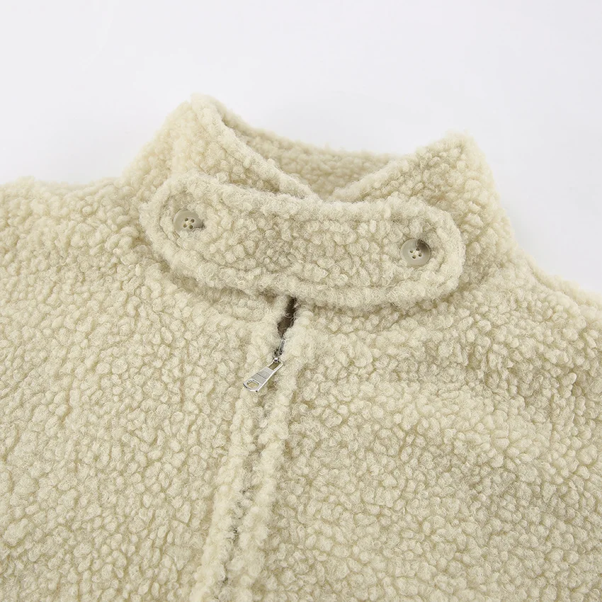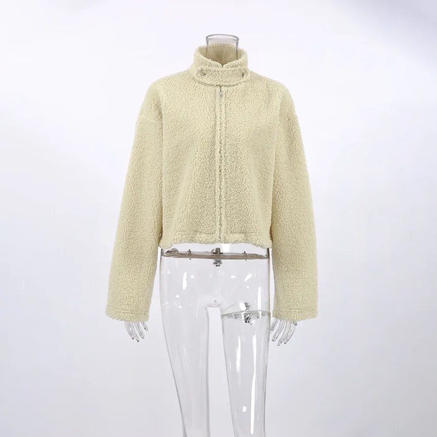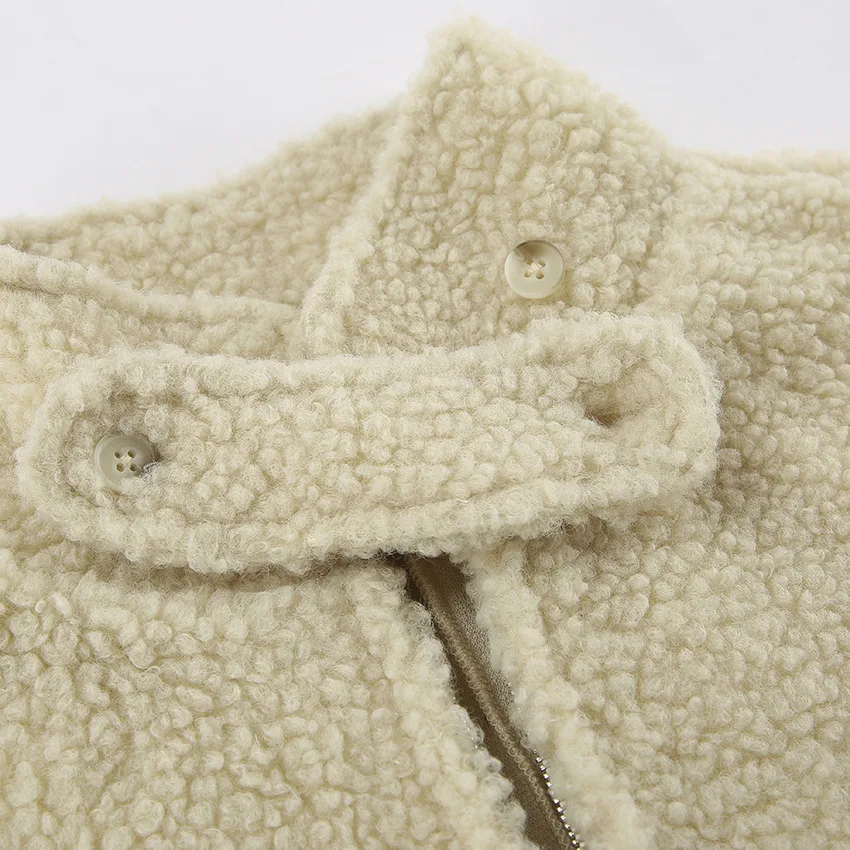 Advbridge Autumn and Winter Sherpa Wool & Blends Khaki Fashion Short Small Stand Collar Casual Loose and Versatile Trench Coat for Women