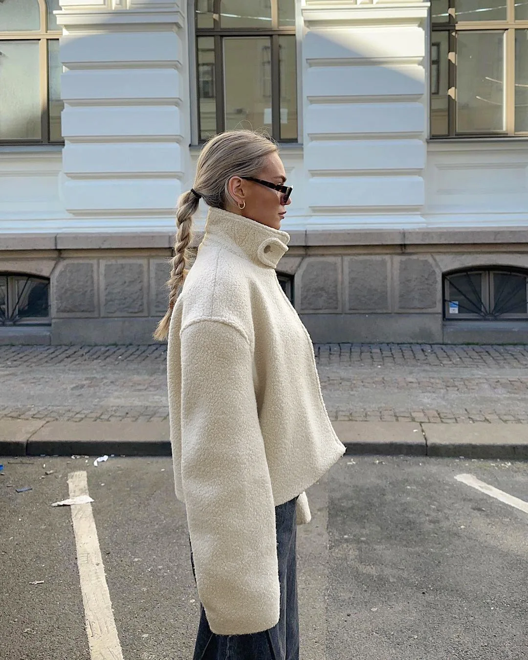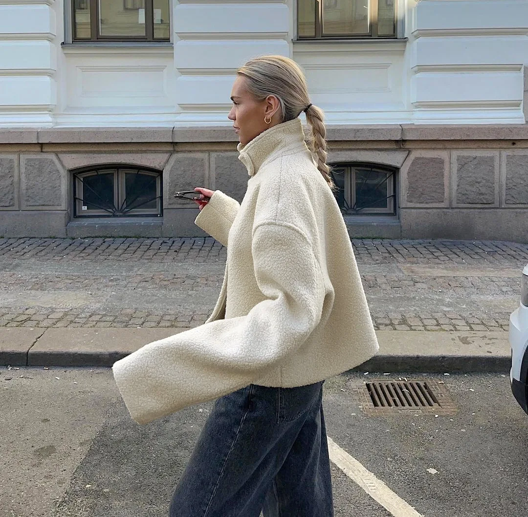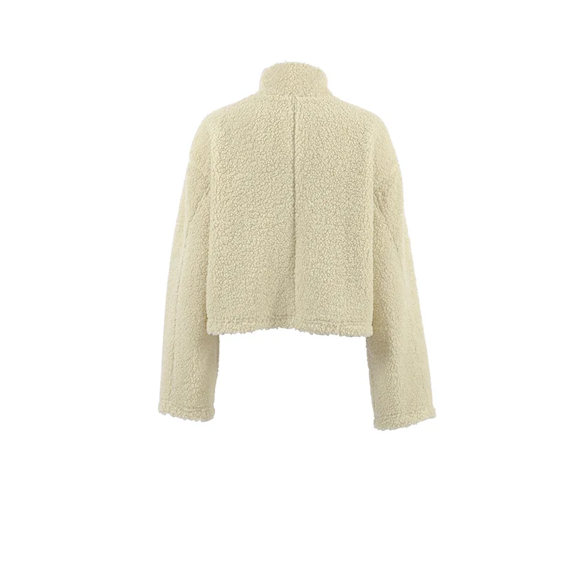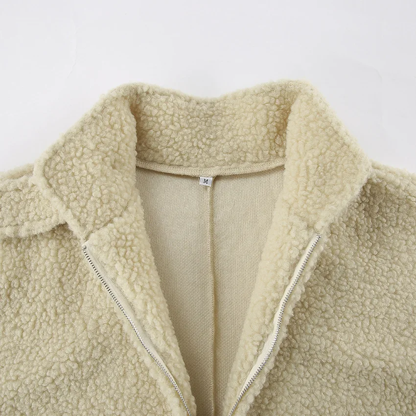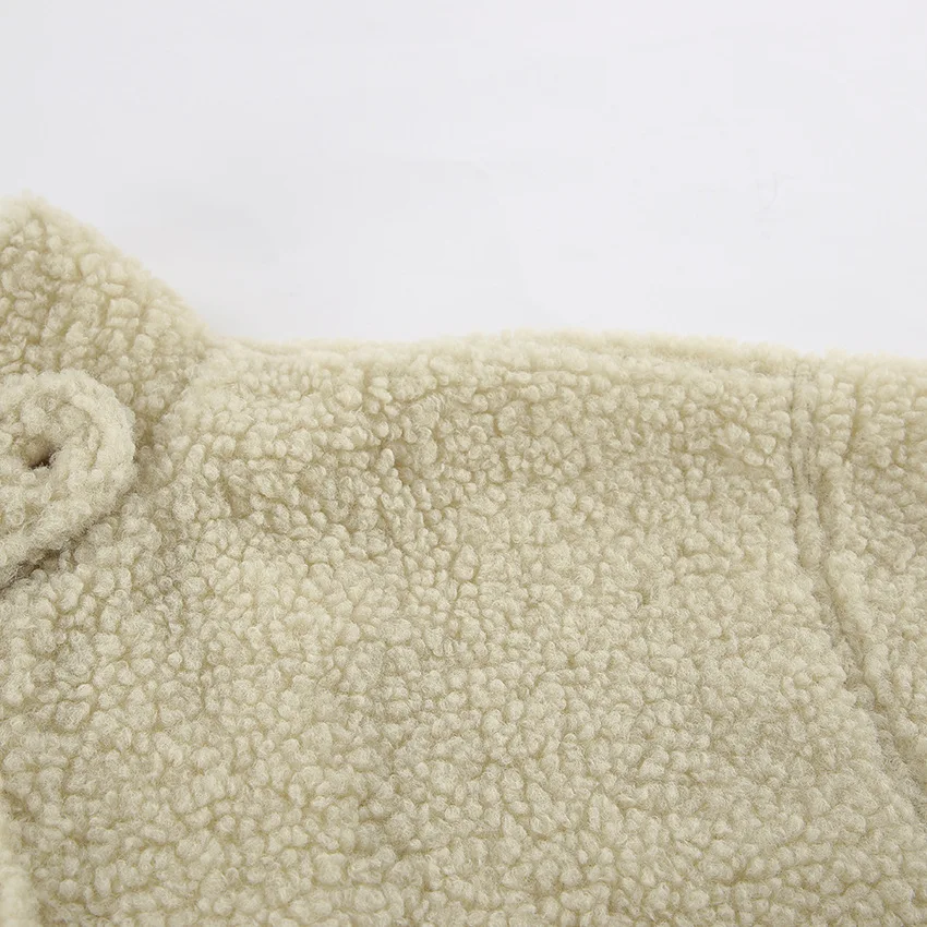 Advbridge Autumn and Winter Sherpa Wool & Blends Khaki Fashion Short Small Stand Collar Casual Loose and Versatile Trench Coat for Women