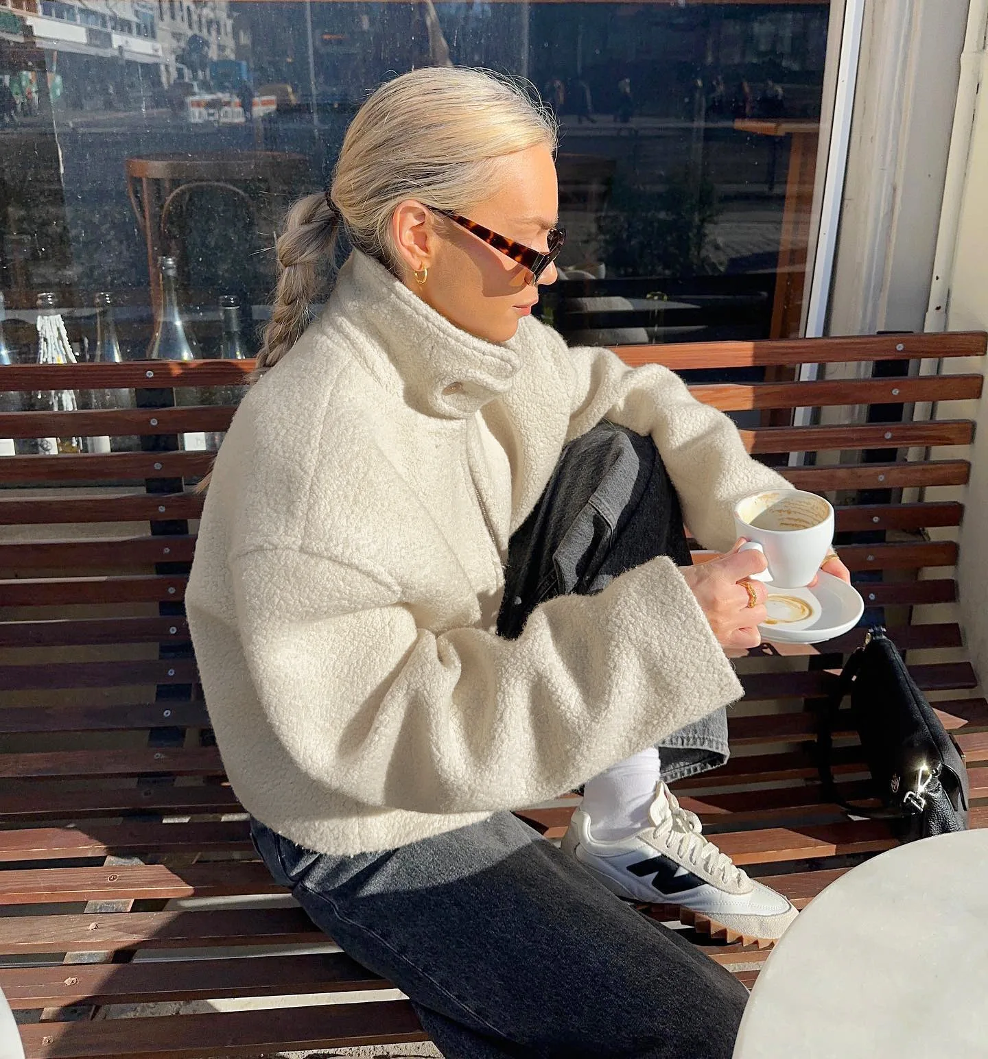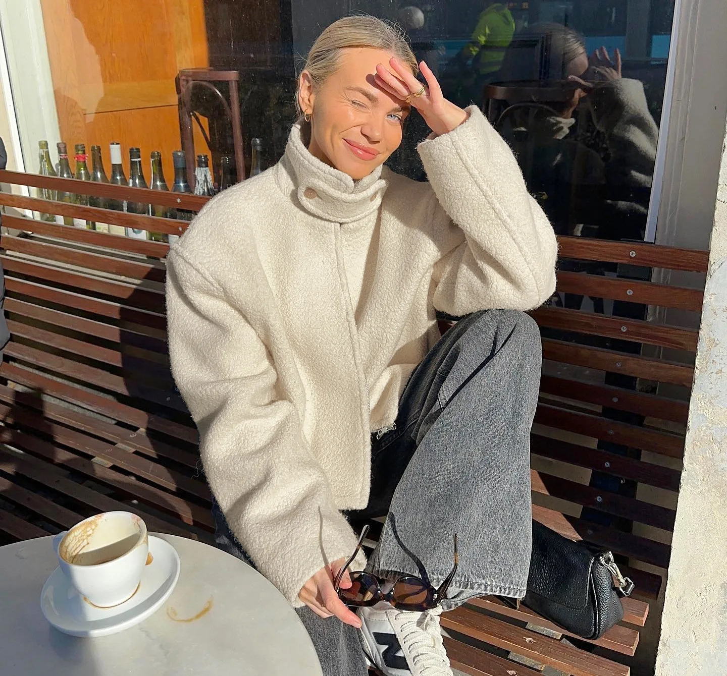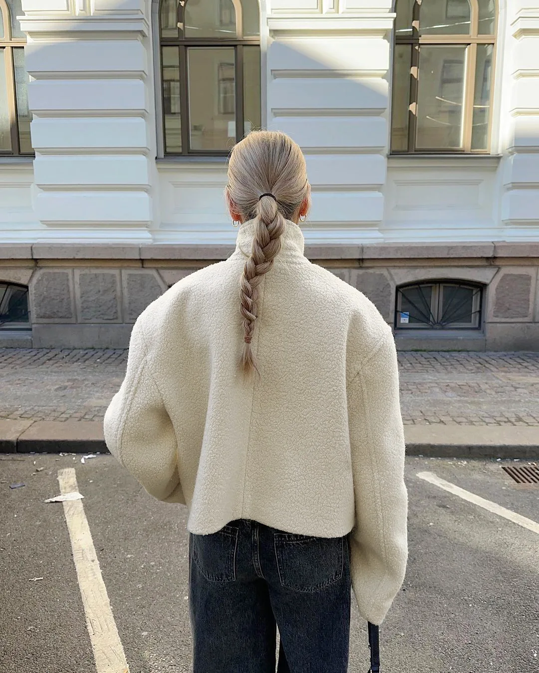 Advbridge Autumn and Winter Sherpa Wool & Blends Khaki Fashion Short Small Stand Collar Casual Loose and Versatile Trench Coat for Women