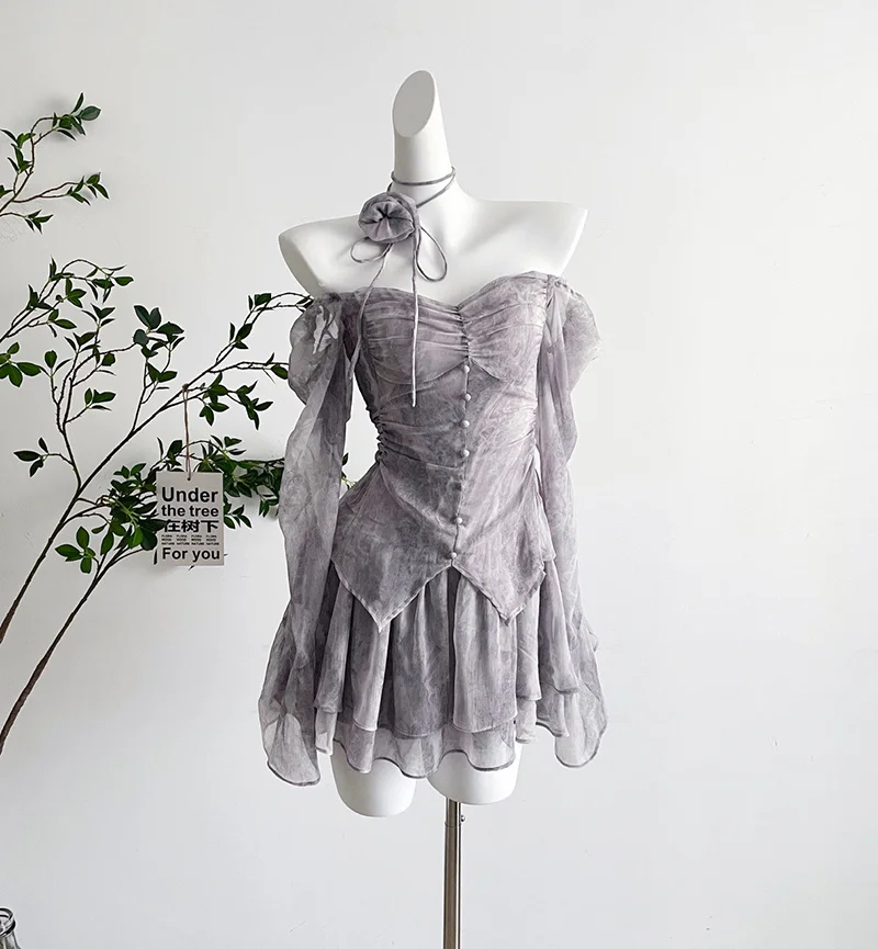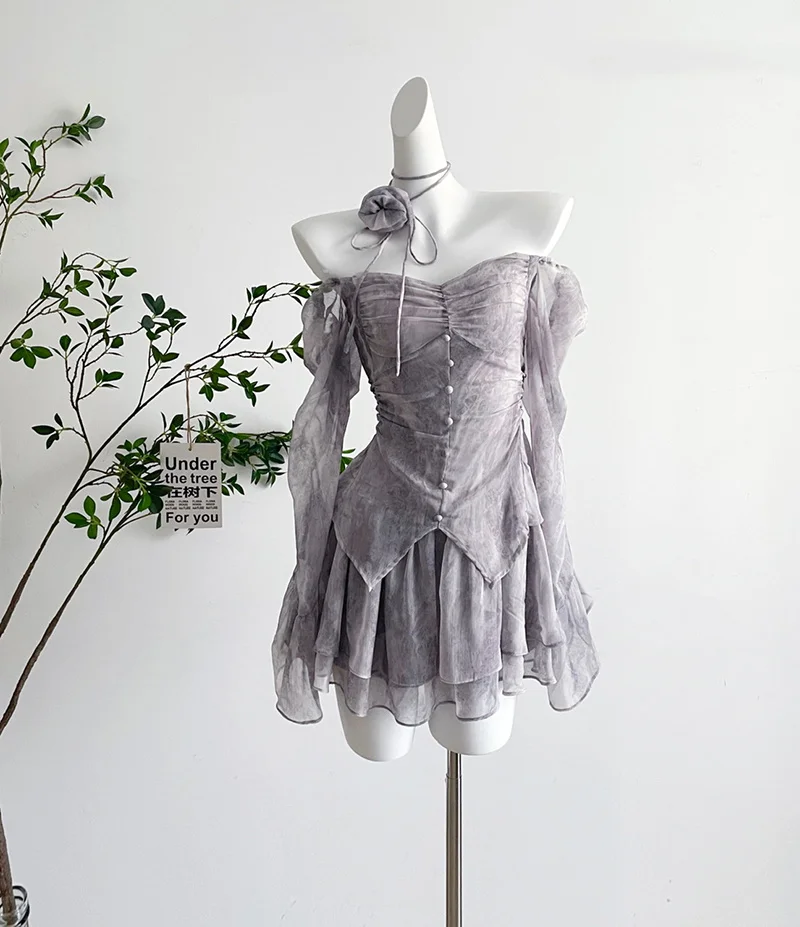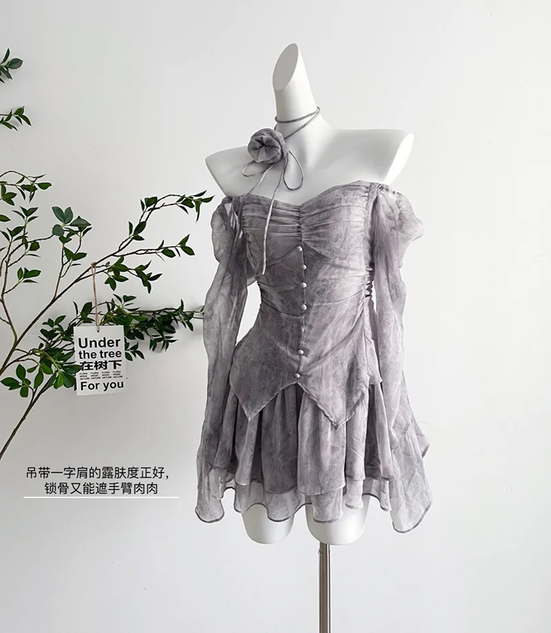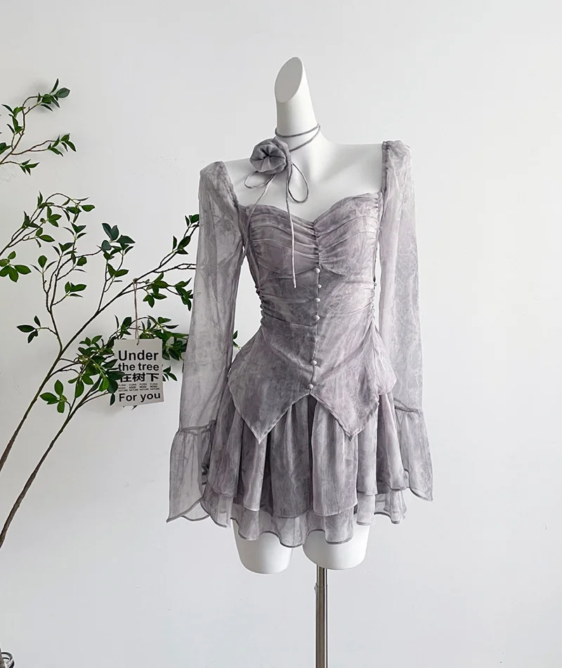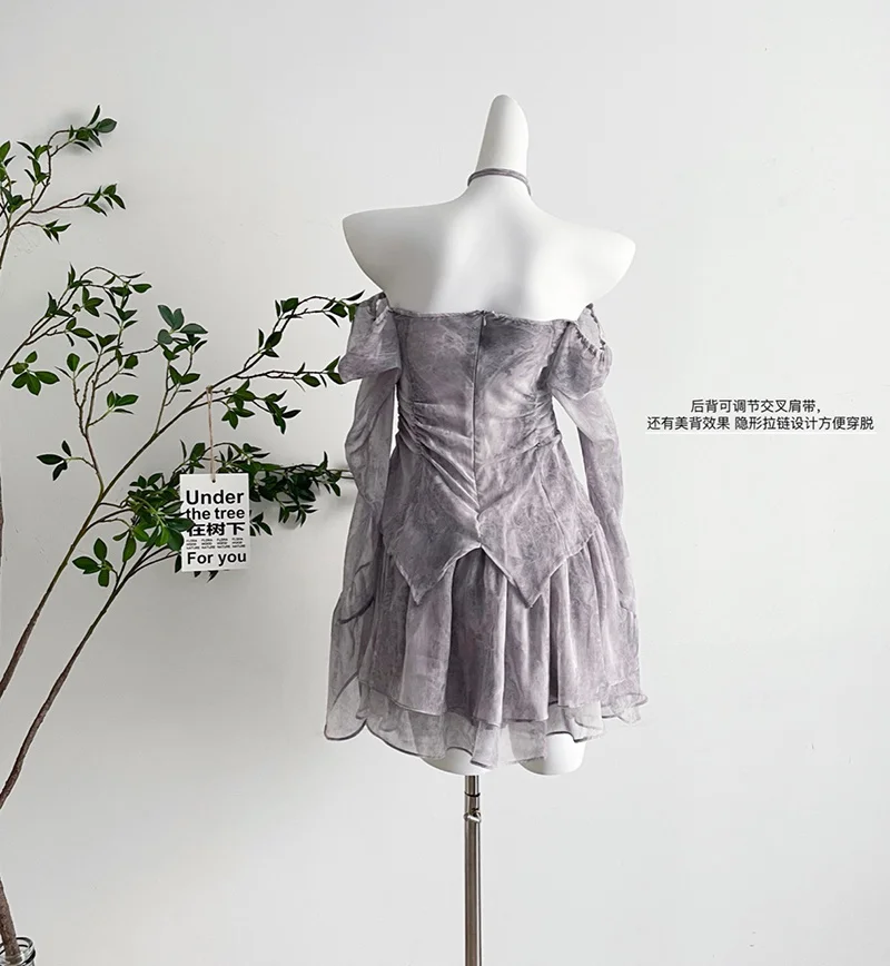 ADVBRIDGE Autumn Backless Square Collar Long Sleeve Fairy Dress For Women Mini Frocks Evening Prom Gown Aesthetic Elegant Sexy Gyaru