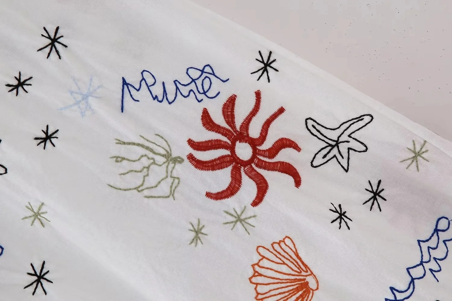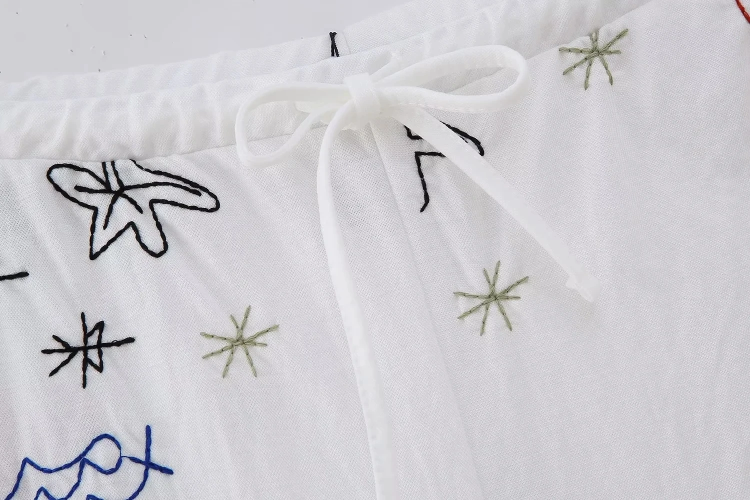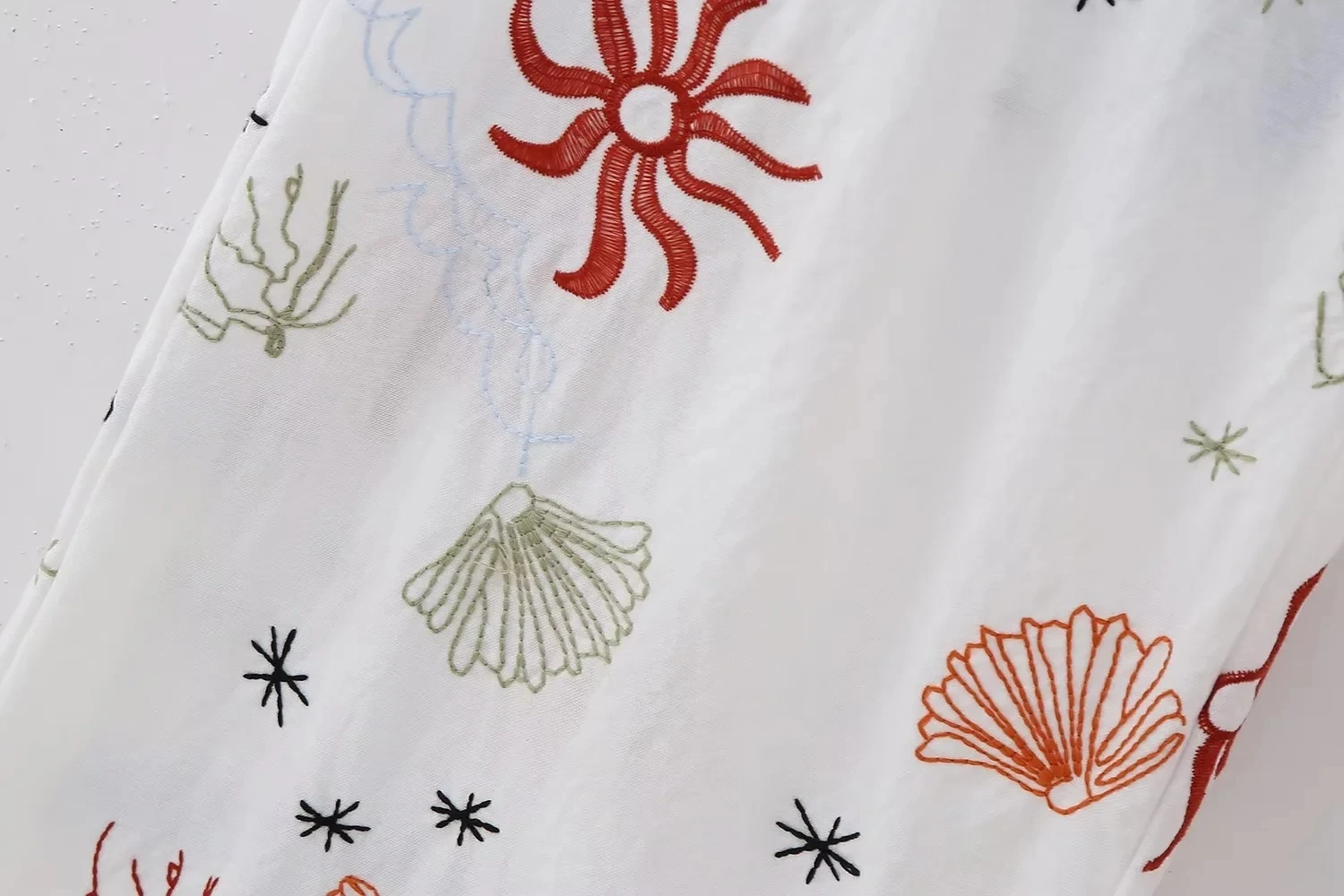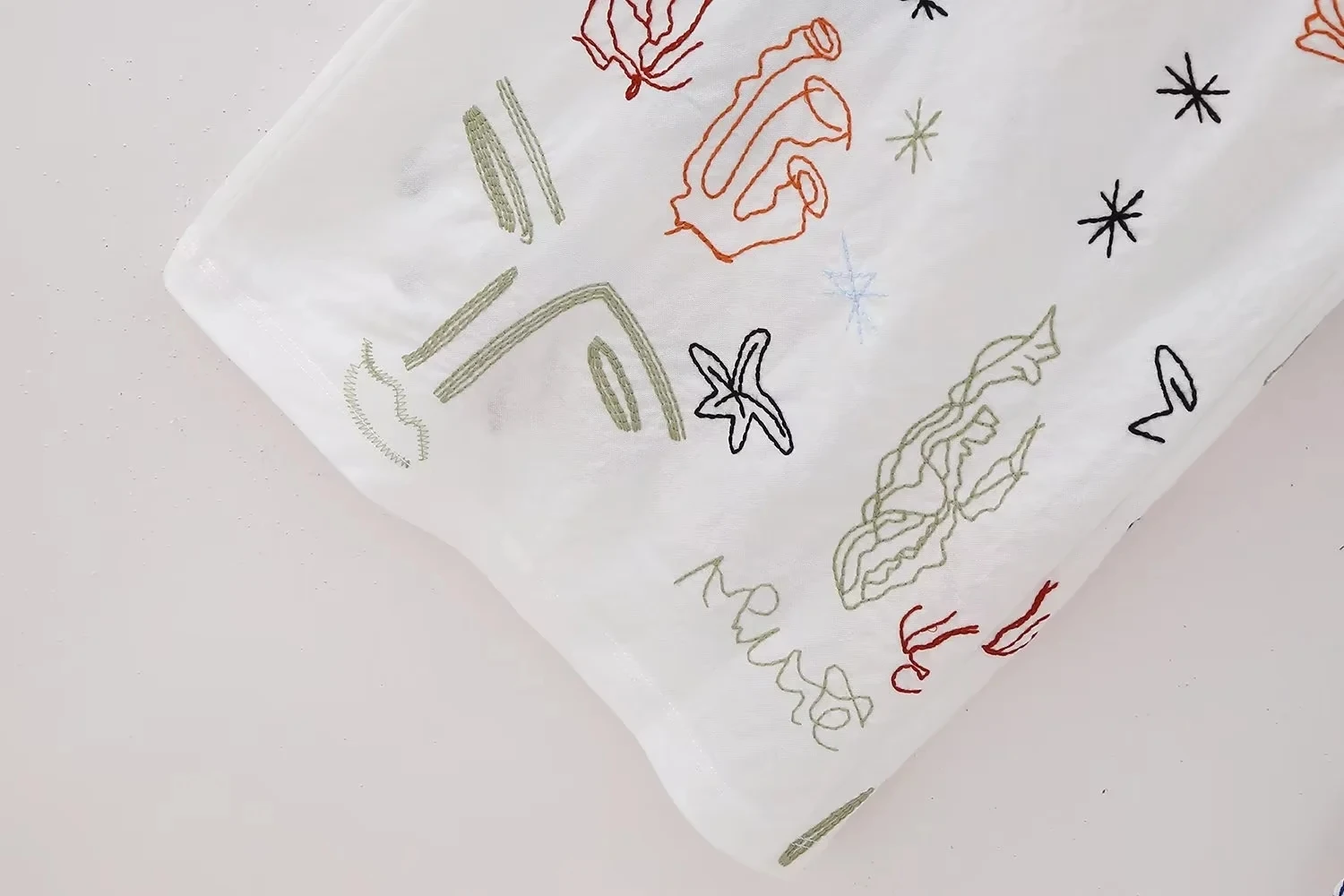 Advbridge Autumn Embroidery Women Cotton Long Pants Drawstring Casual Wide Leg White Trousers 2024 Boho Marine Organism Pants