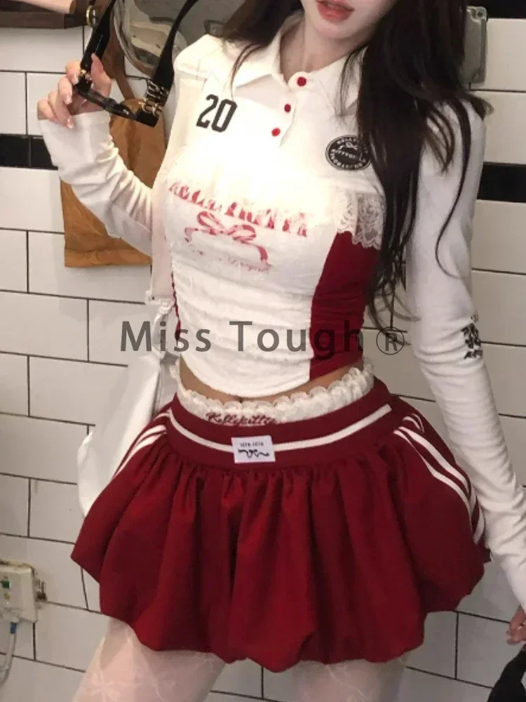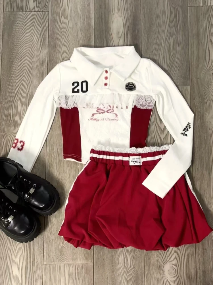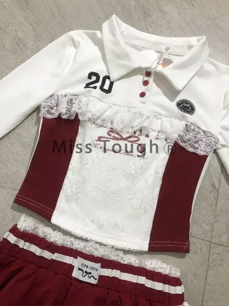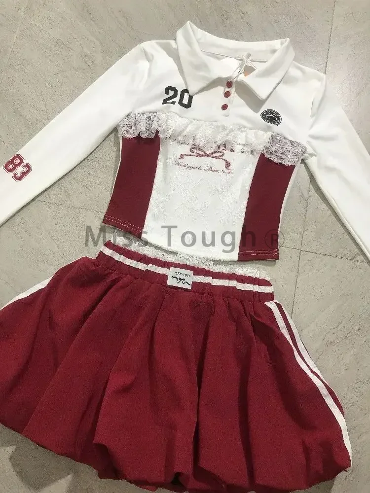 Advbridge Autumn Pretty Style Slim 2 Piece Set Women Design Hot Chick Long Sleeve Lapel Thin Tops Female + Lace Patchwork Short Skirt New