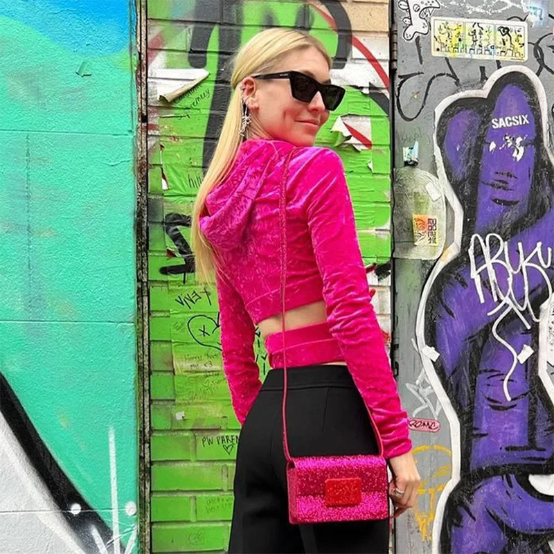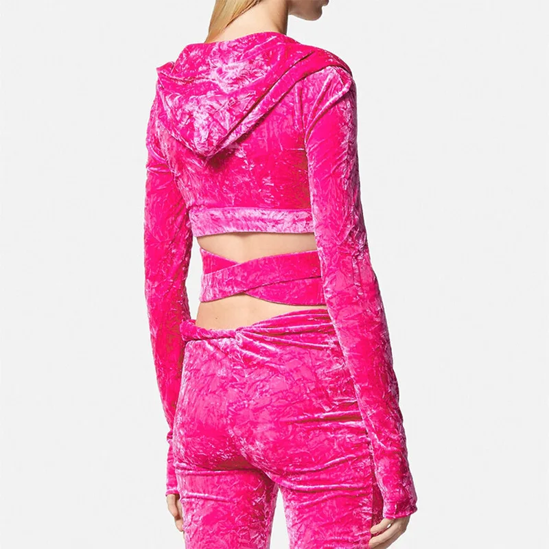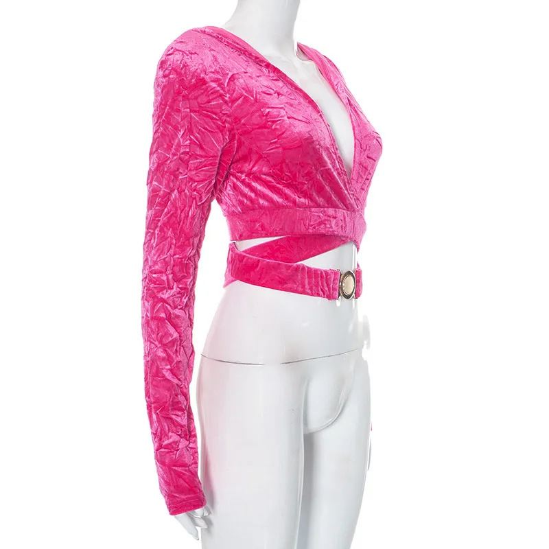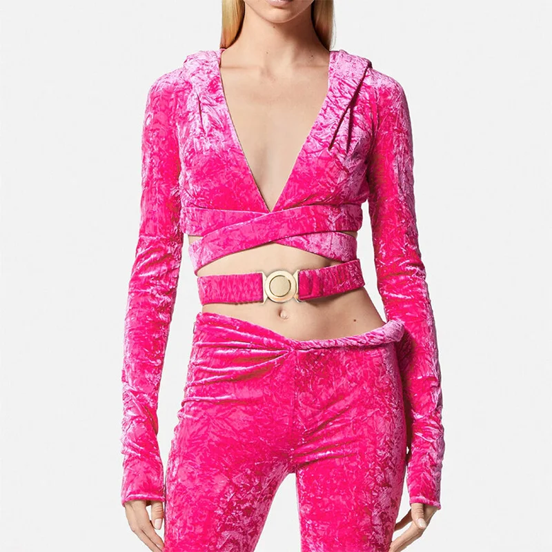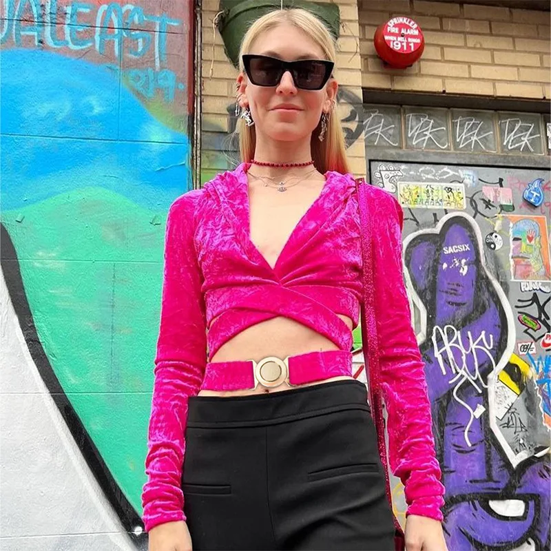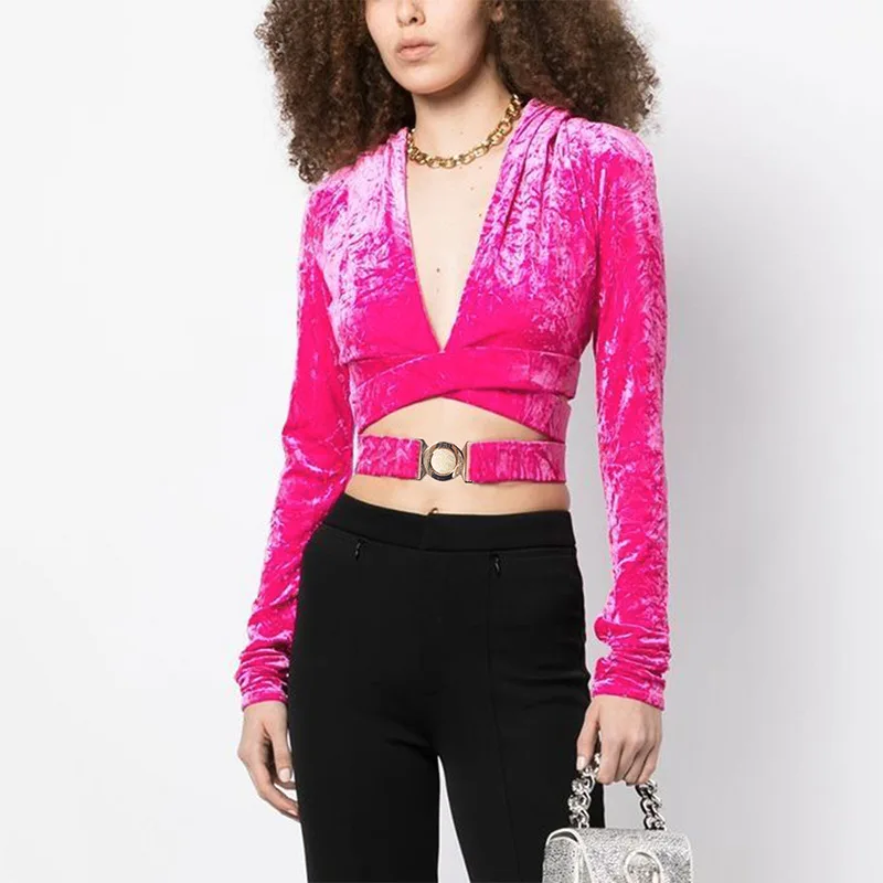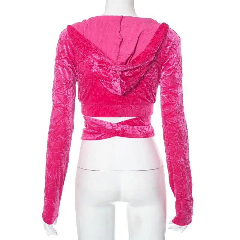 Advbridge Autumn Velvet Hooded Crop Tops Women Sexy Deep V Neck Full Sleeve Cross Buckle Slim T-Shirts Fashion Casual Sweatshirts