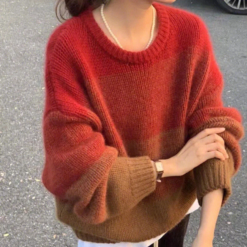Advbridge Autumn Winter Women's Fashion Contrast Color Gradient Sweaters Korean Round Neck Loose Fit Spliced Knitted Tops Female Clothing