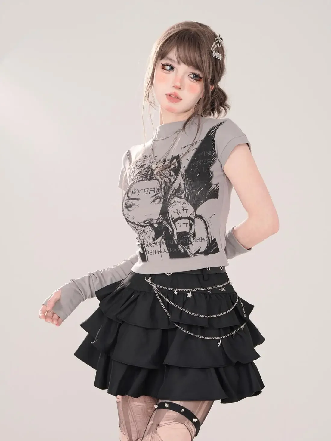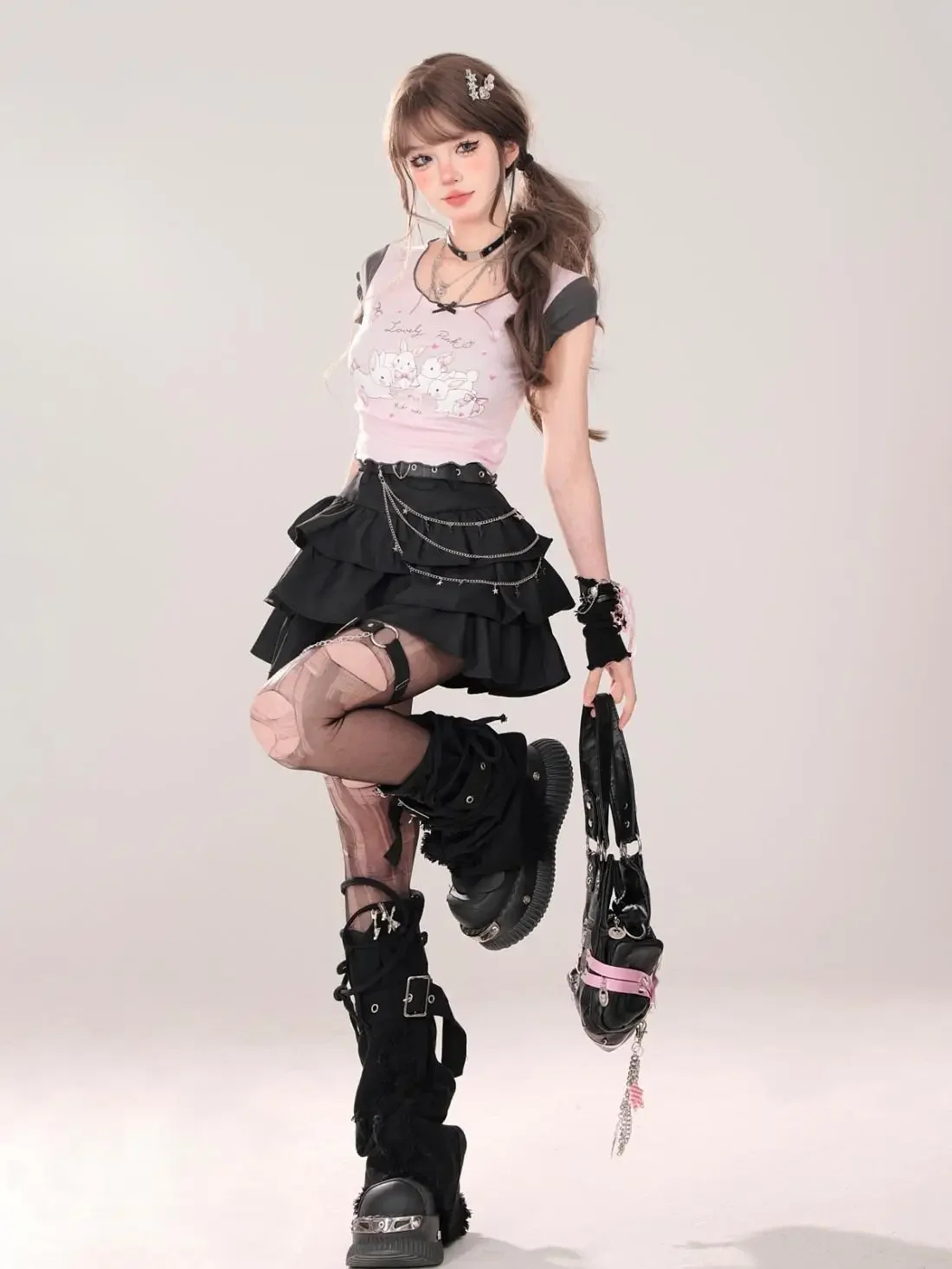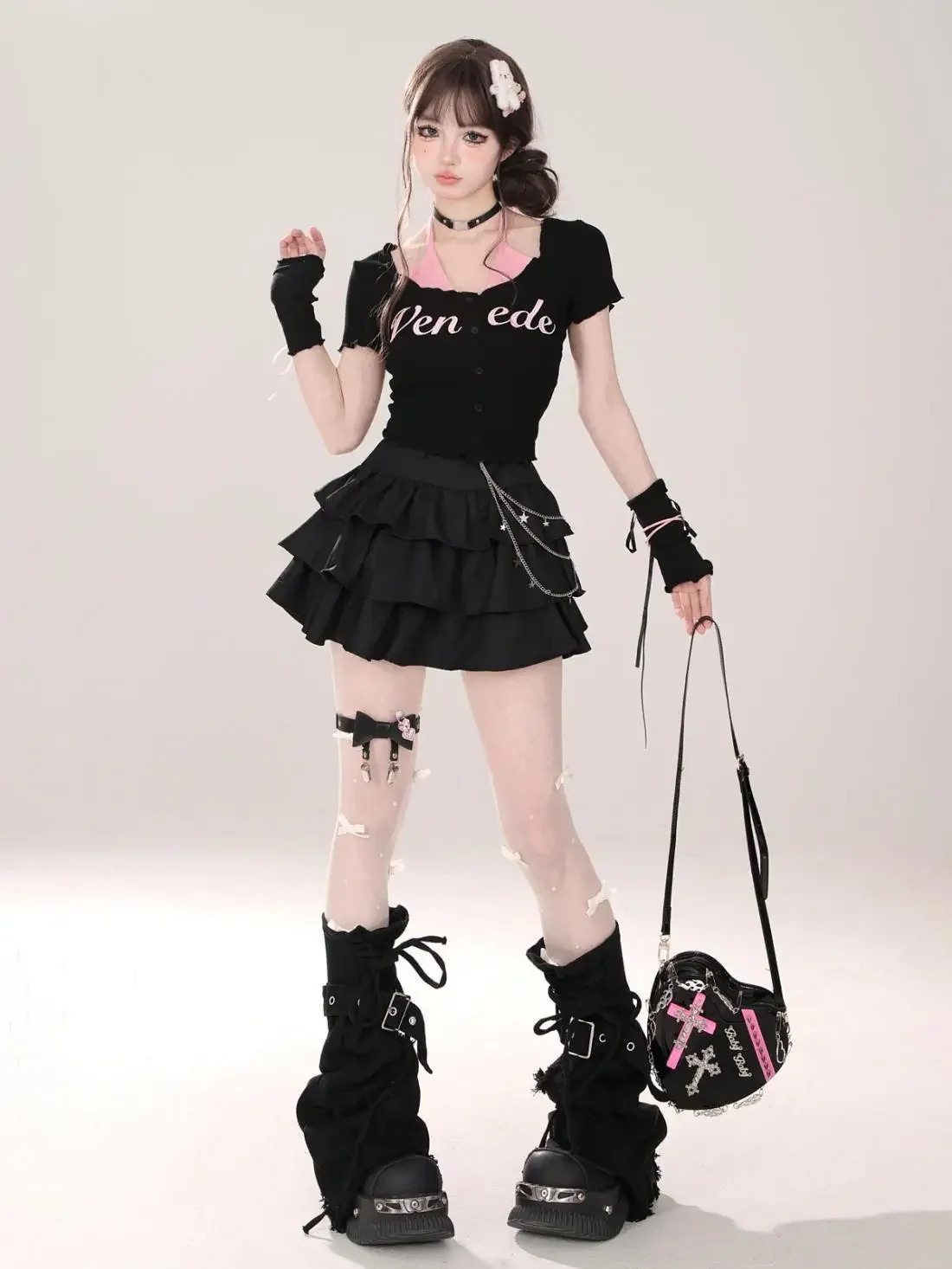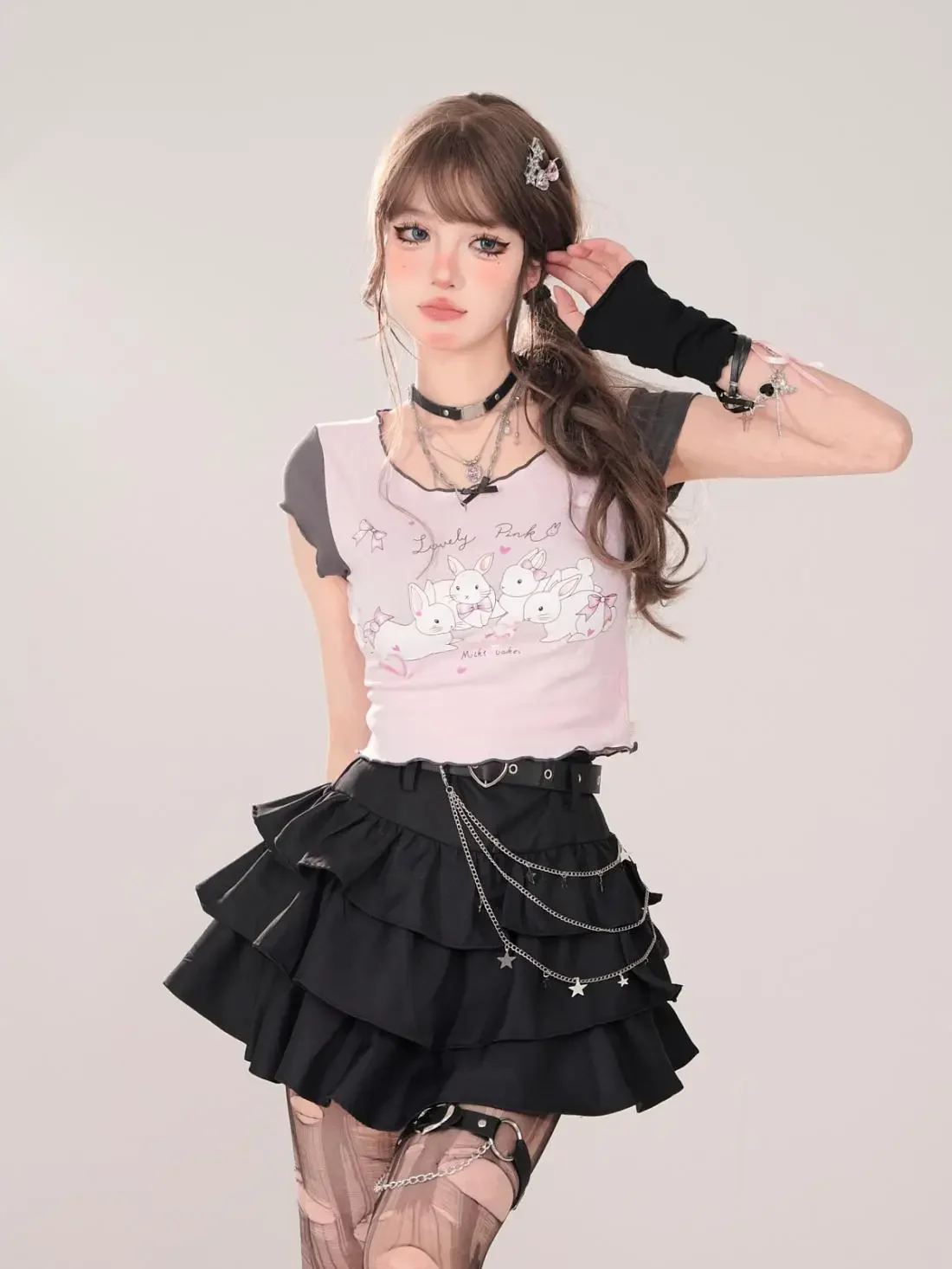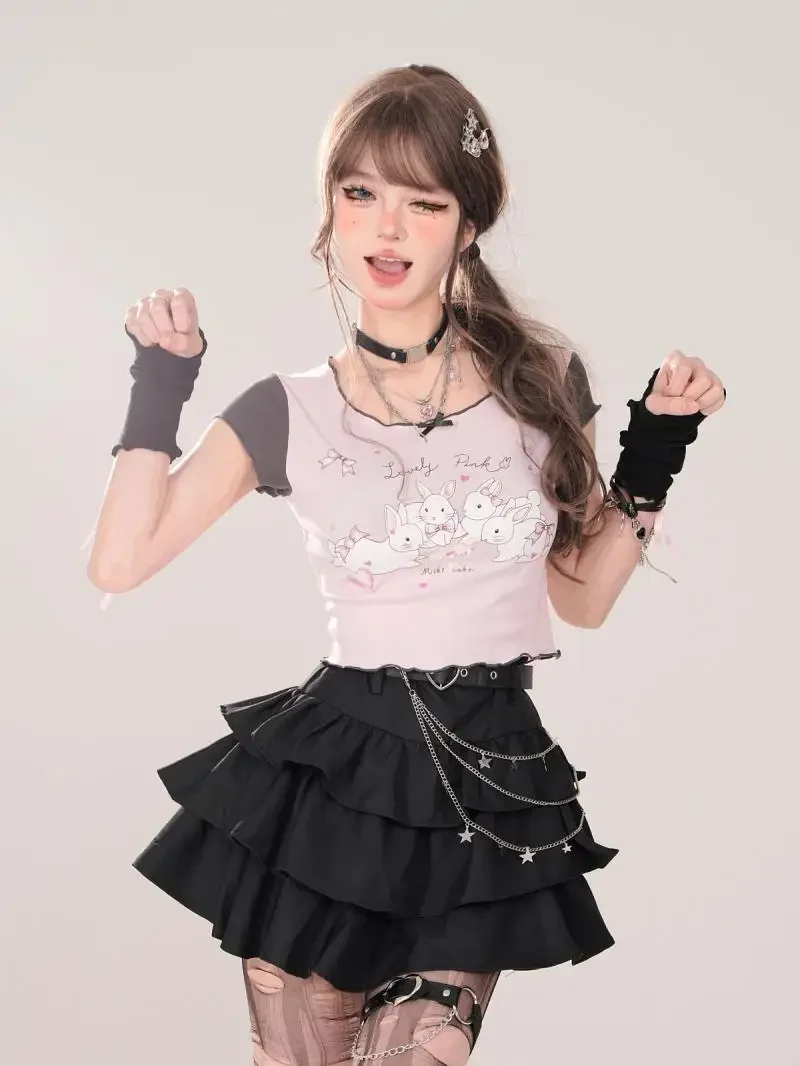 Advbridge Black Gothic Mini Skirts Women Punk Y2k Grunge Short Skirt Korean Harajuku Kawaii 2000s A-line Cake Skirts Aesthetic